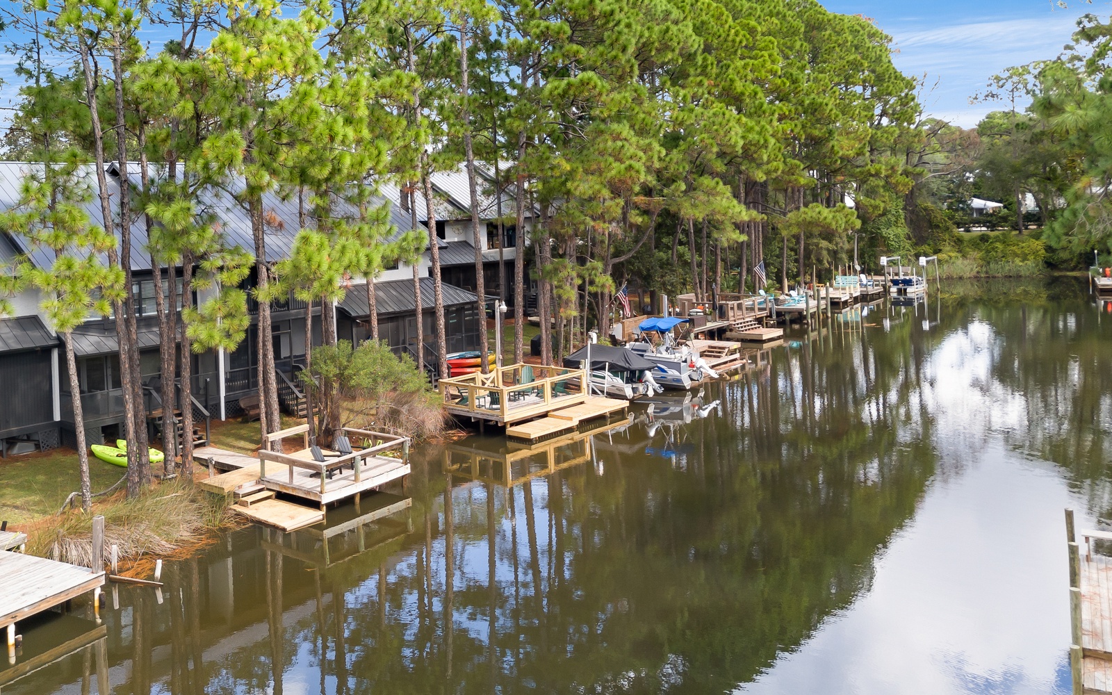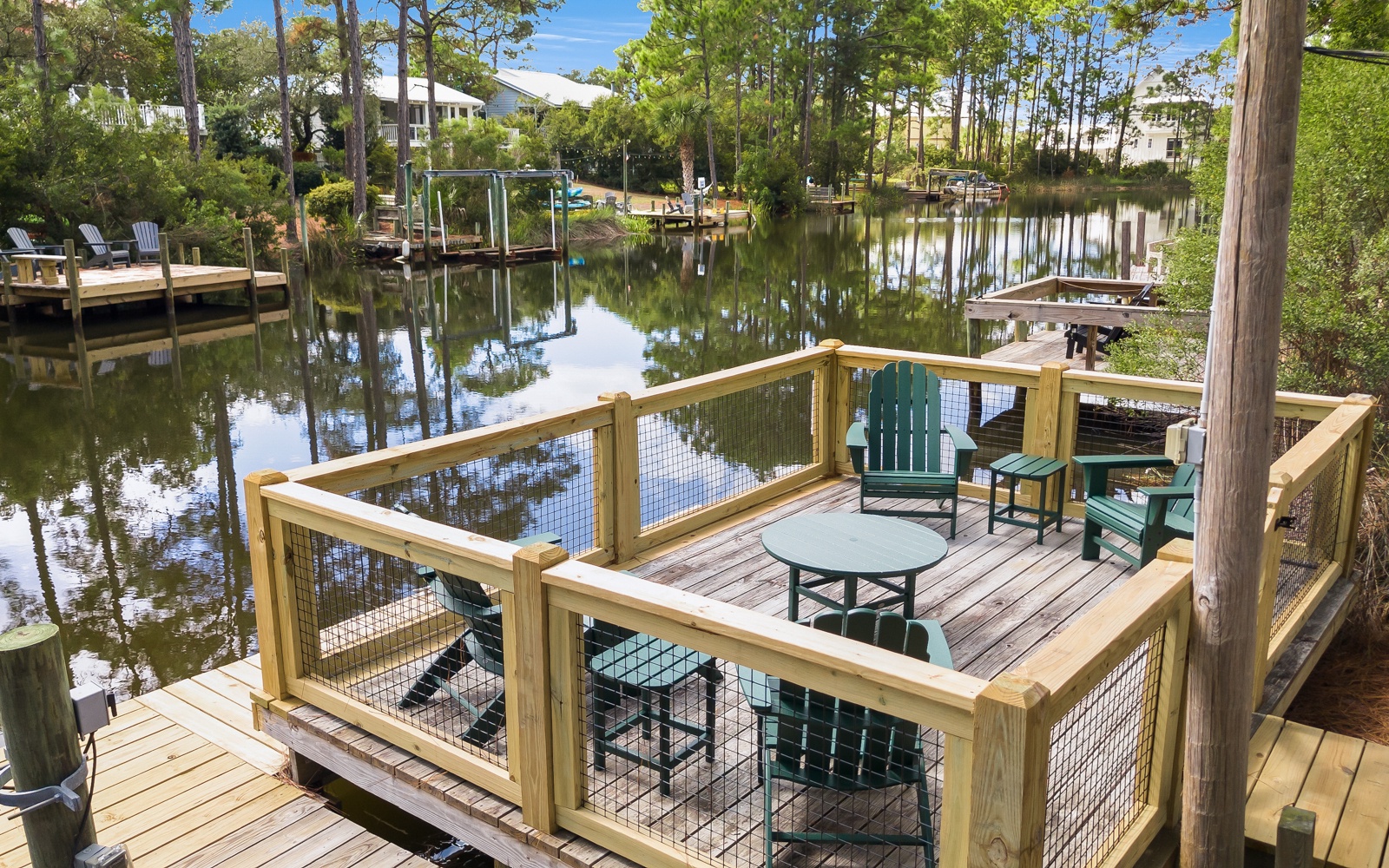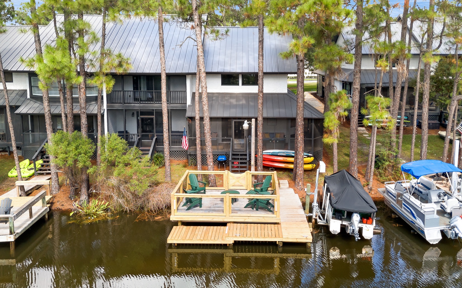 Begin your day with coffee on the screened-in porch or your private dock, surrounded by birdsong and gentle breezes.