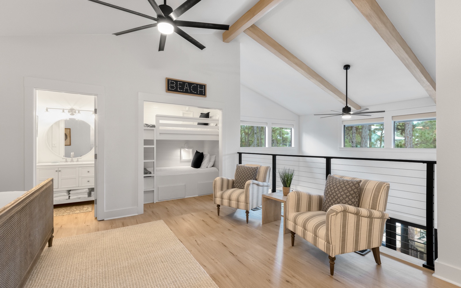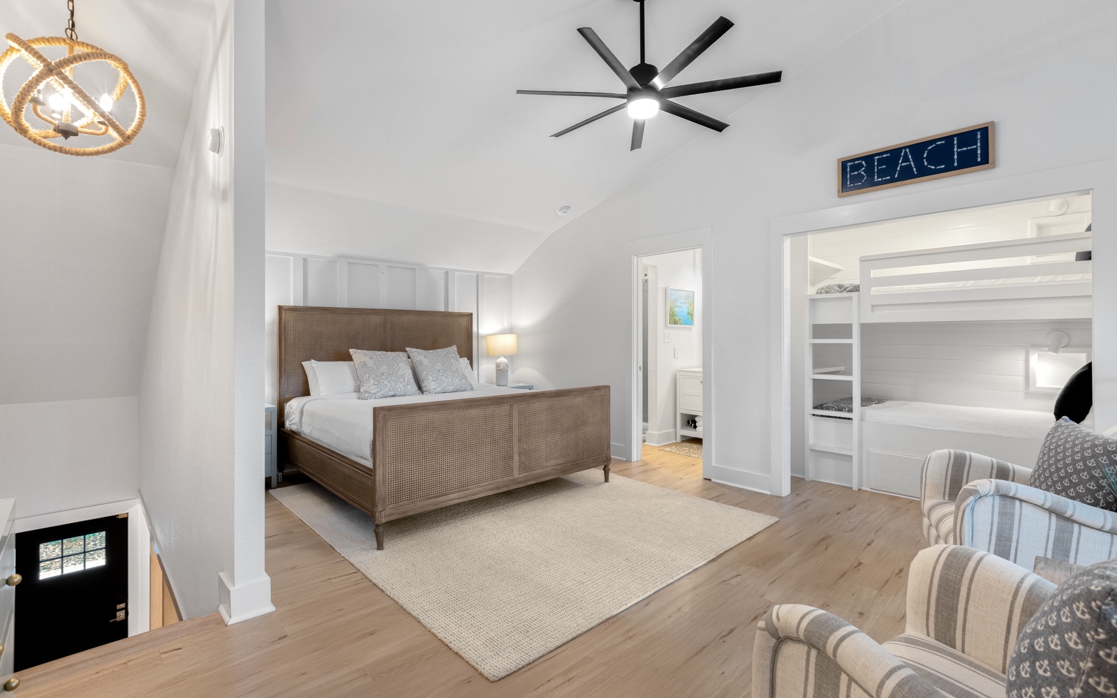 - Primary Bedroom: A loft-style king bedroom with bunk beds, en-suite bath