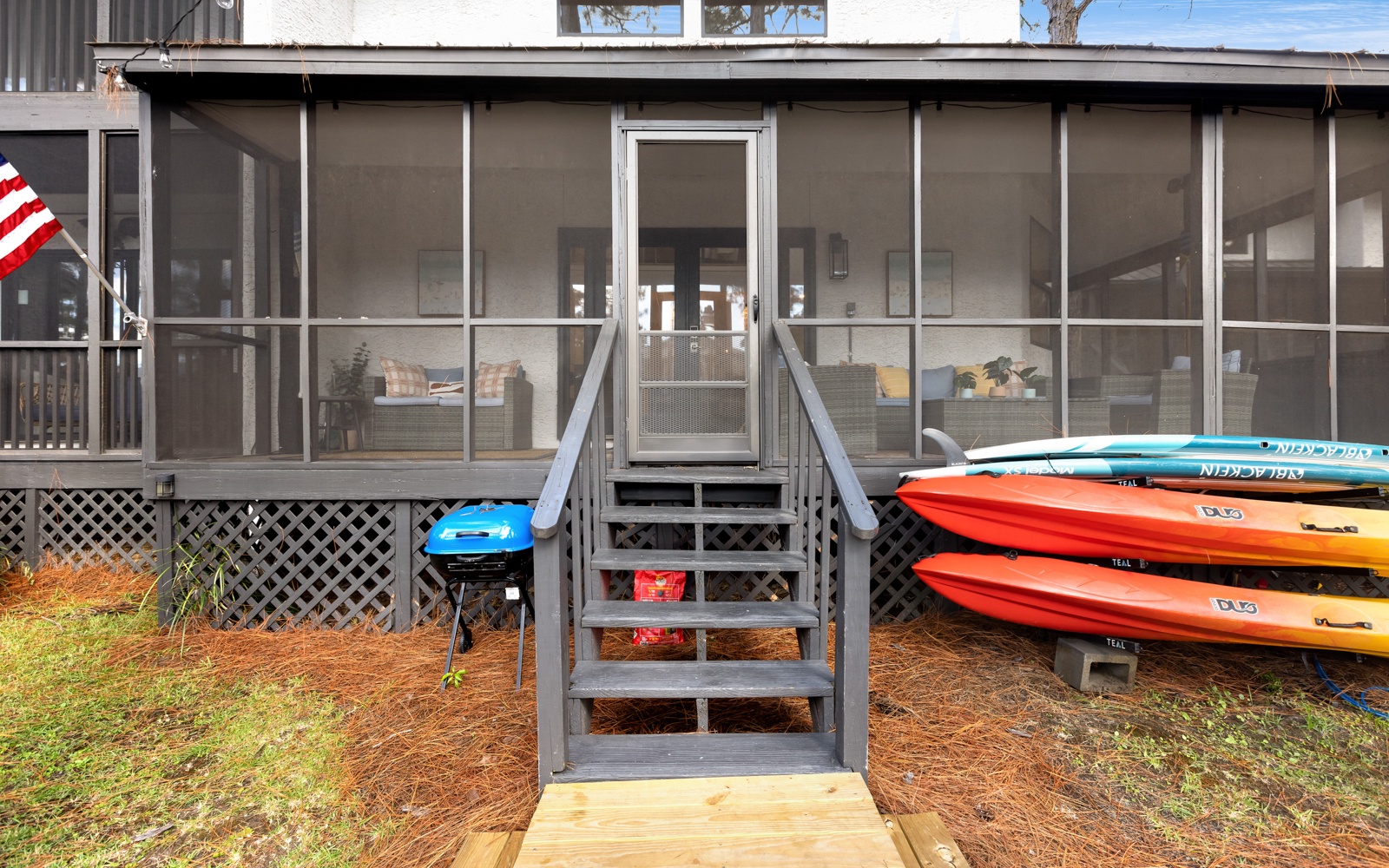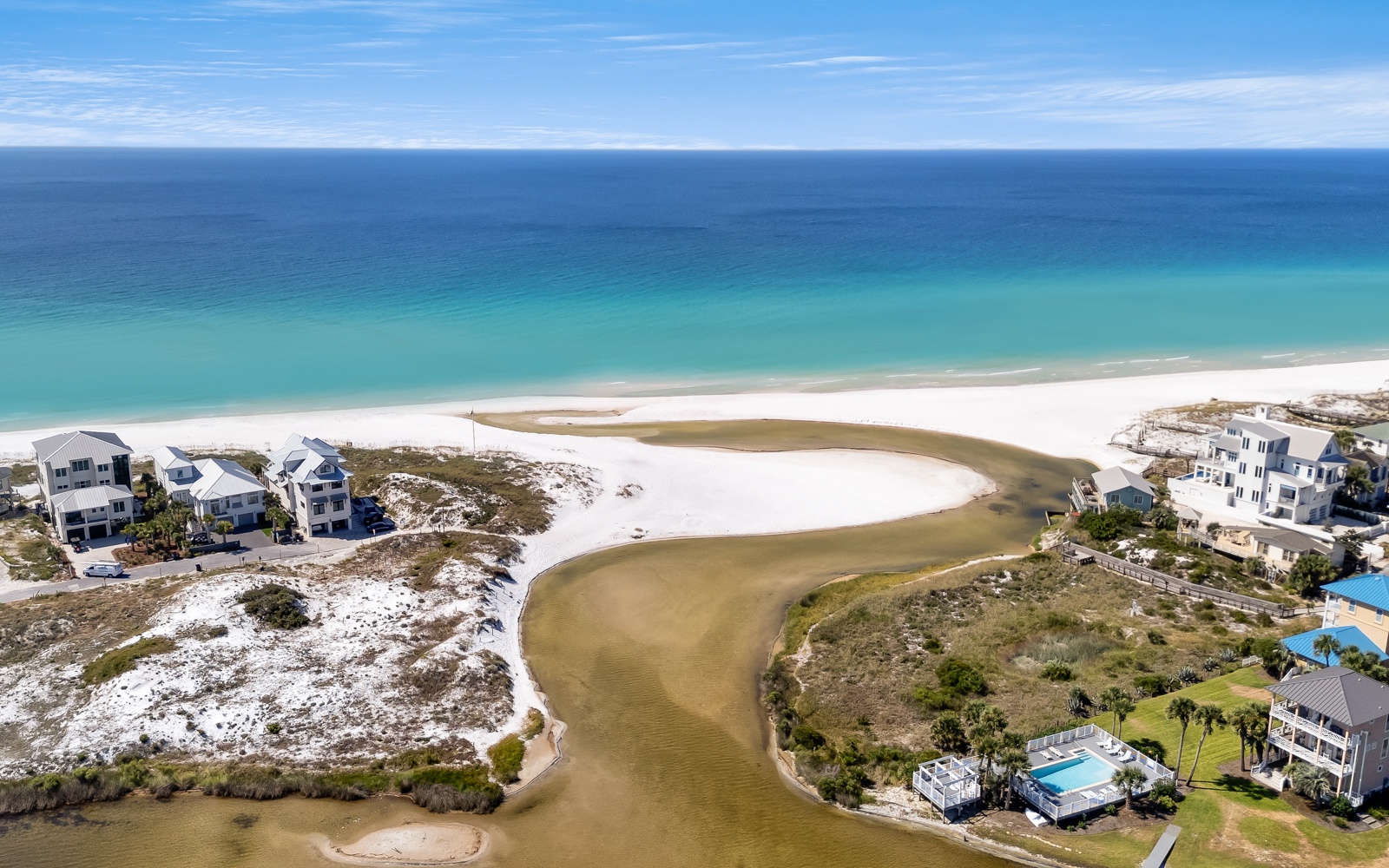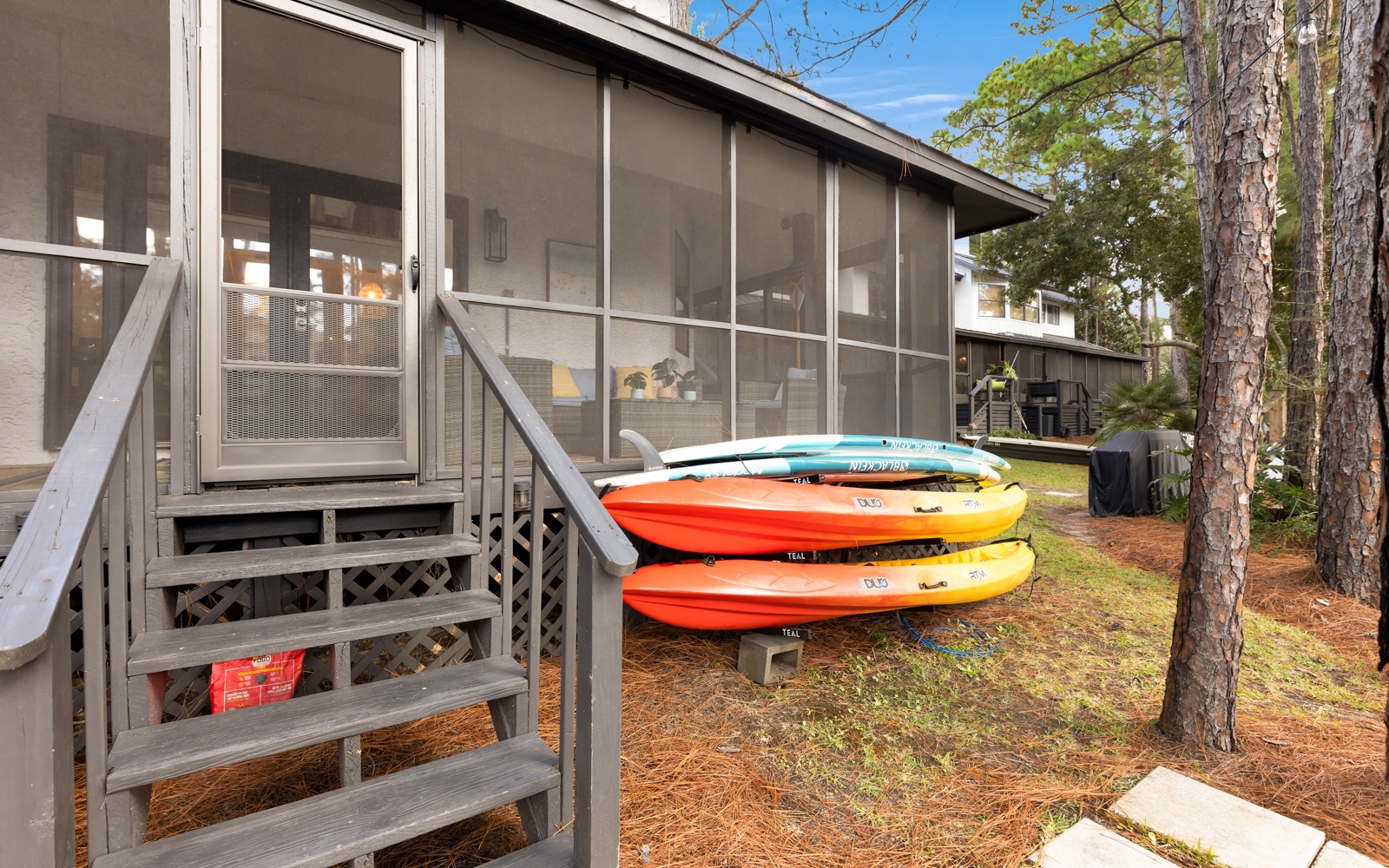 It’s an easy 10-minute walk (or 3-minute bike ride) to two pristine beach accesses—or take a 10-minute paddle straight to the Gulf! You’ll also be just minutes from 30A’s beloved communities—Seaside, Seacrest, Rosemary, Alys Beach, and WaterColor—each filled with charming shops, coastal dining, and local flavor. Stroll to Old Florida Fish House for dinner or grab your morning latte at The Beachy Bean Coffee Shop, both just a short walk away.