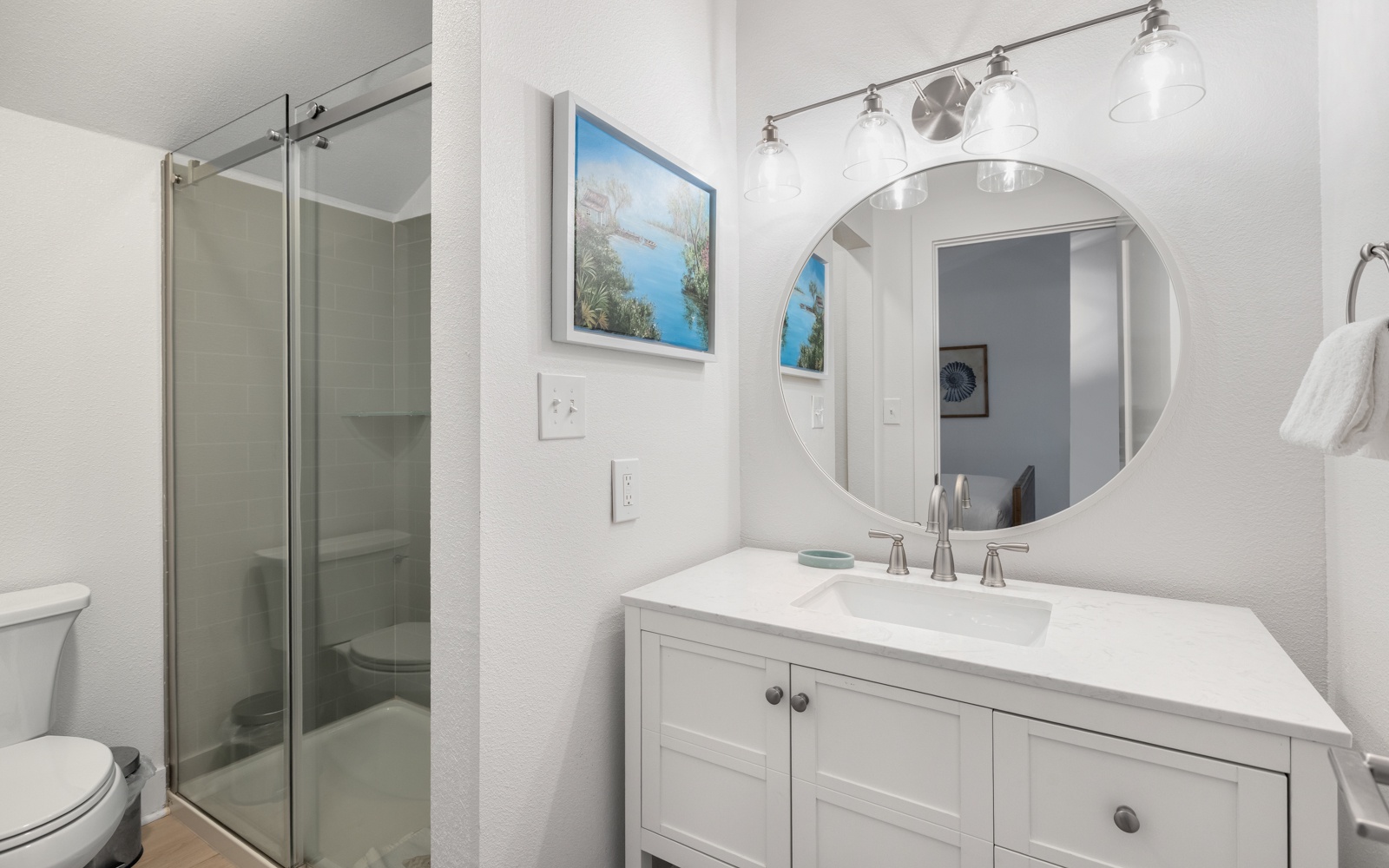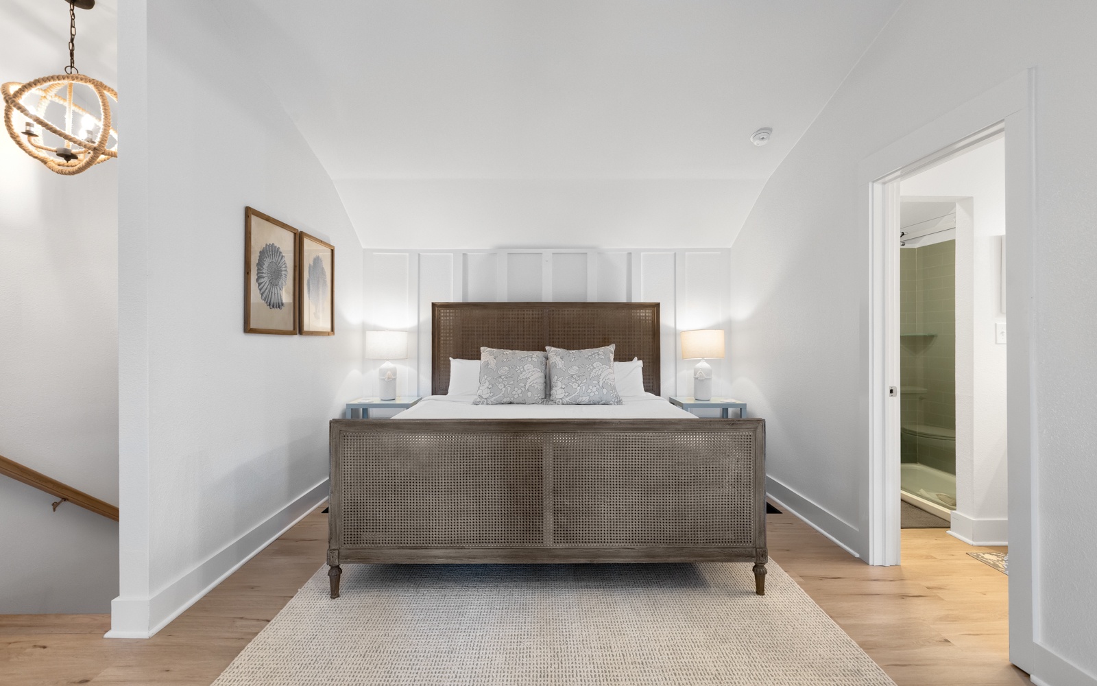 - Guest Bedroom: King bed, en-suite bath, TV