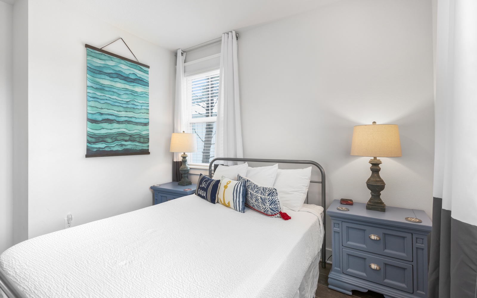 The en suite bathroom features a double vanity and walk-in shower. Relax and enjoy the coastal breeze on the front or back deck, both of which offer ample seating, or take a break with a new book on the balcony of the primary bedroom, which has seating for two.
