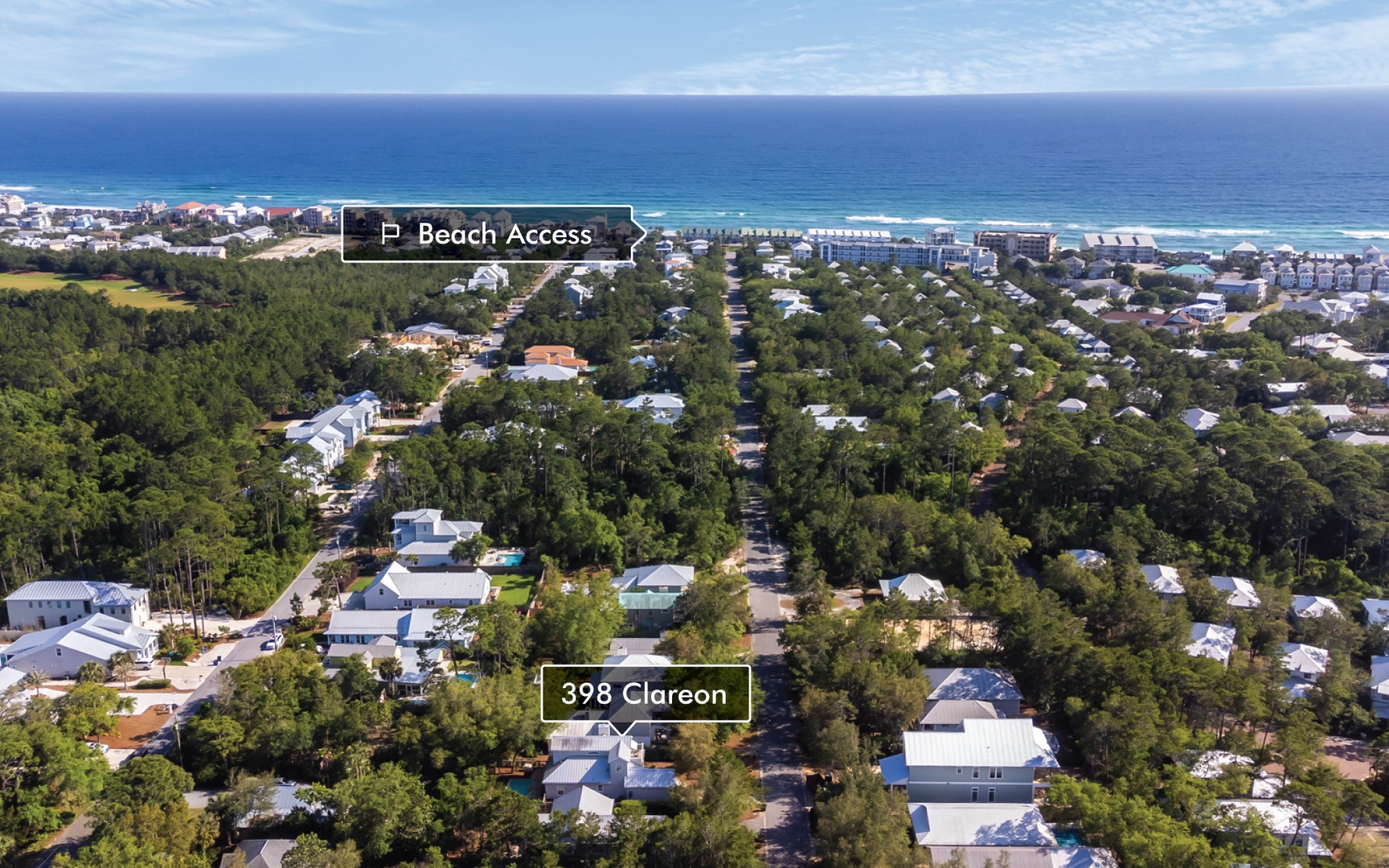 398 Clareon is in the residential community of Seacrest with miles of jogging and bike trails along Highway 30A. This area is quiet and relaxing but close to restaurants, shopping, and Alys, Rosemary and Seaside beaches.
