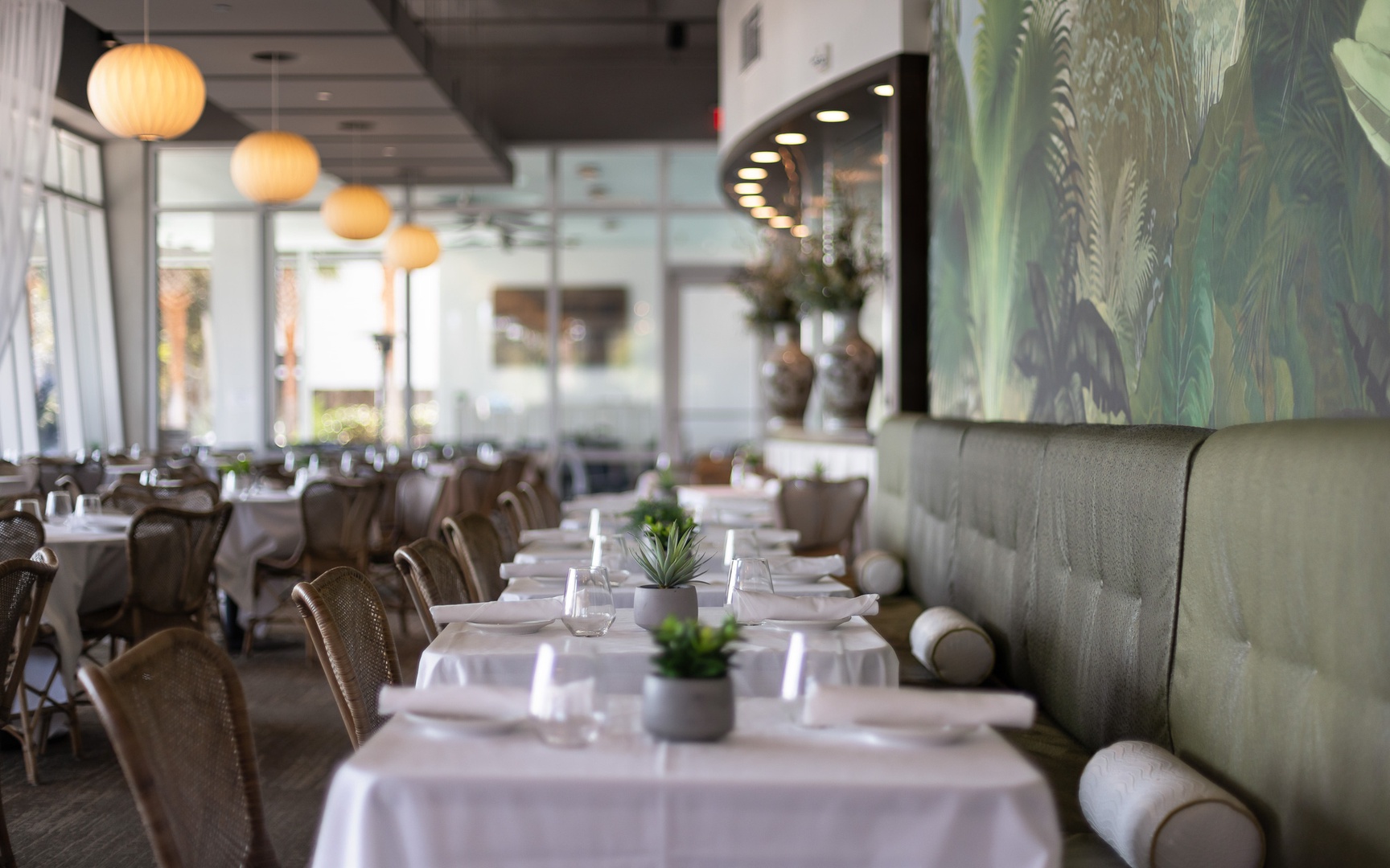 The spacious dining area comfortably seats 8.
