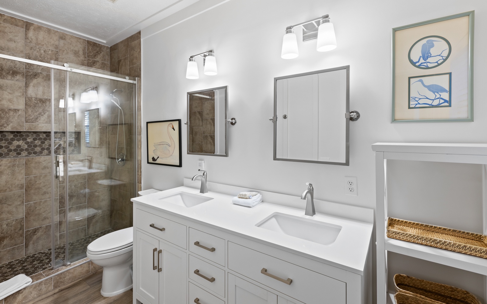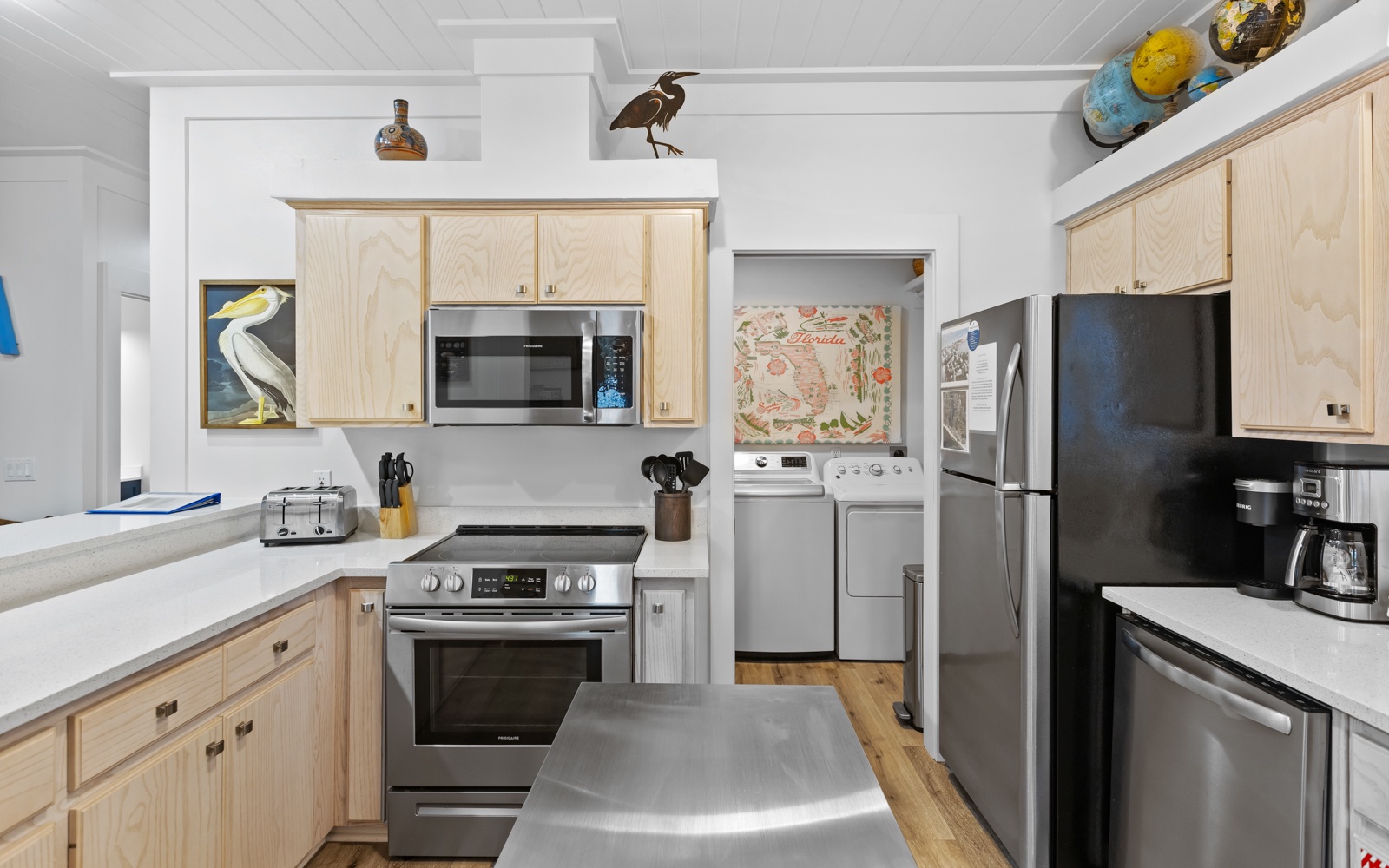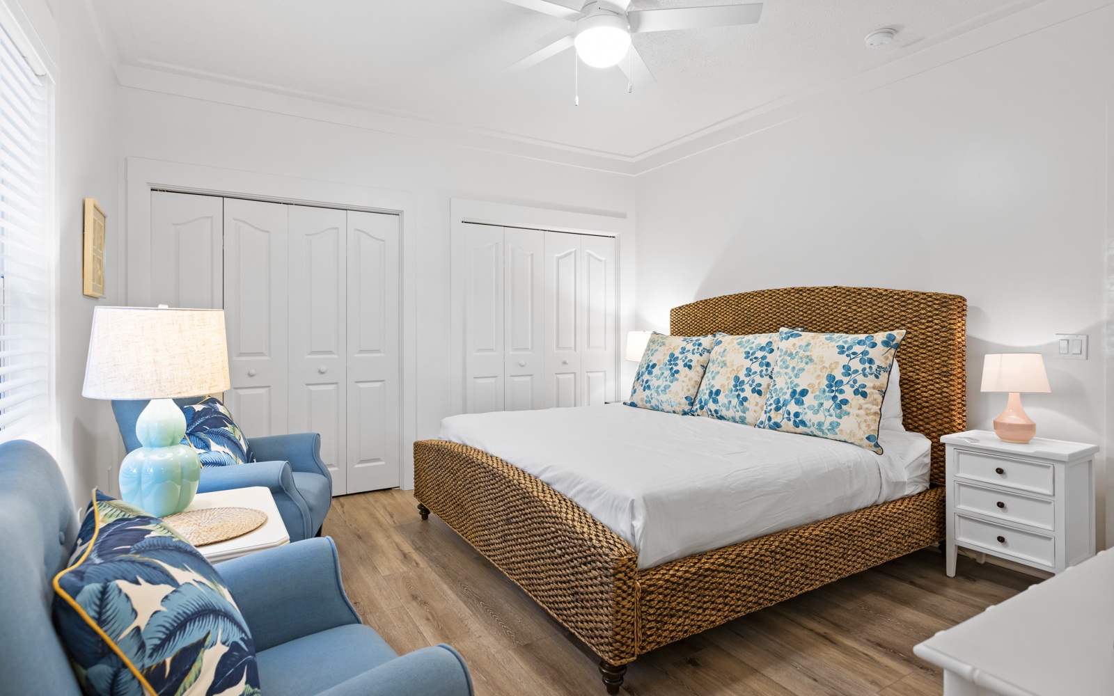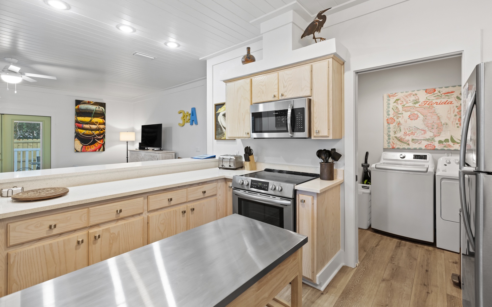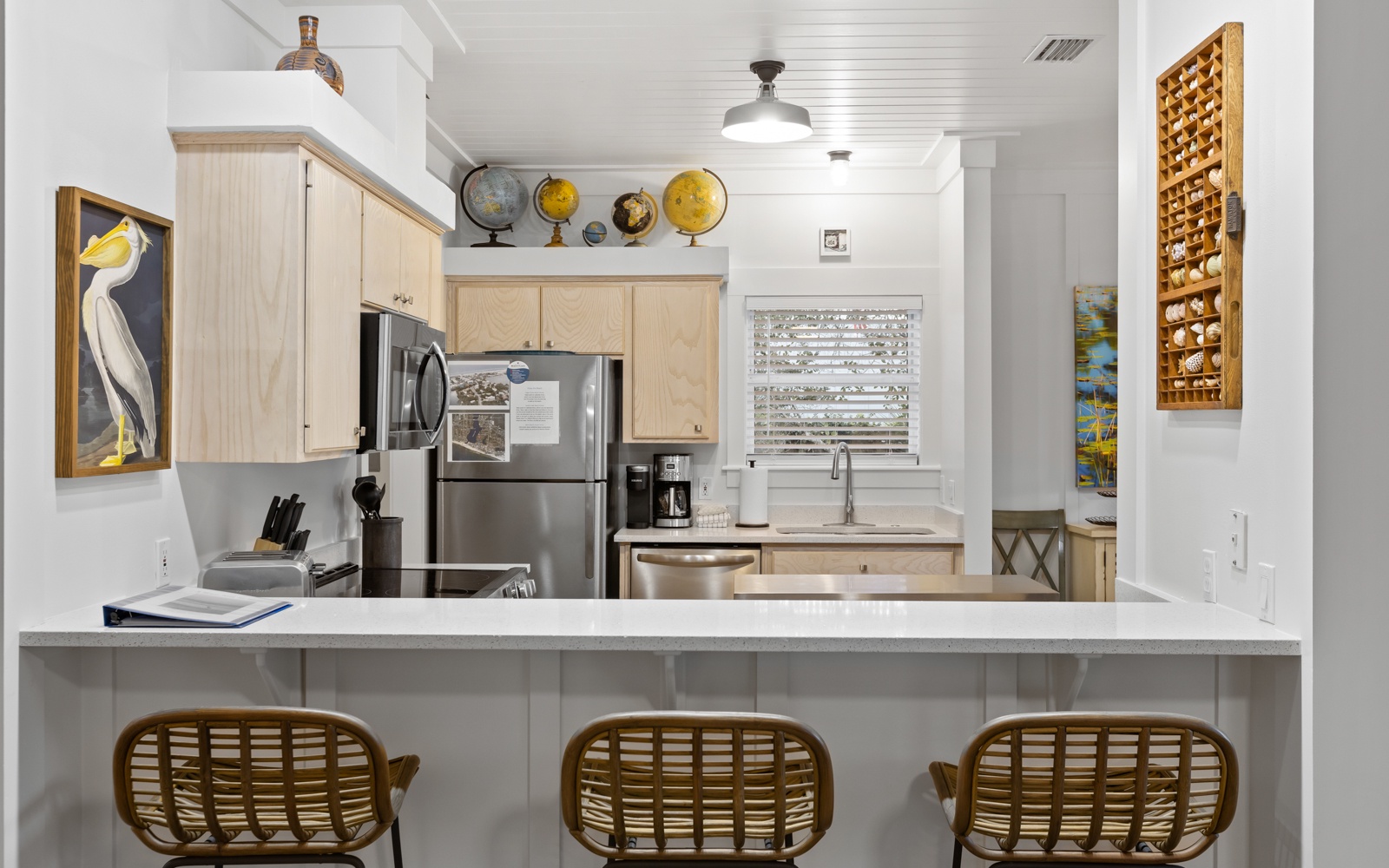 The bright and open living spaces feature stylish, comfortable furnishings with a clean, contemporary vibe. The fully stocked kitchen makes it easy to whip up a quick breakfast or a seafood feast to enjoy inside or out on the patio.