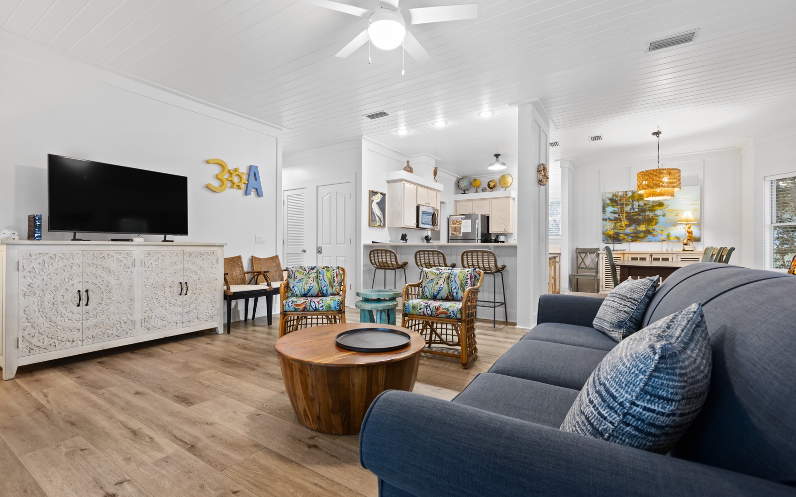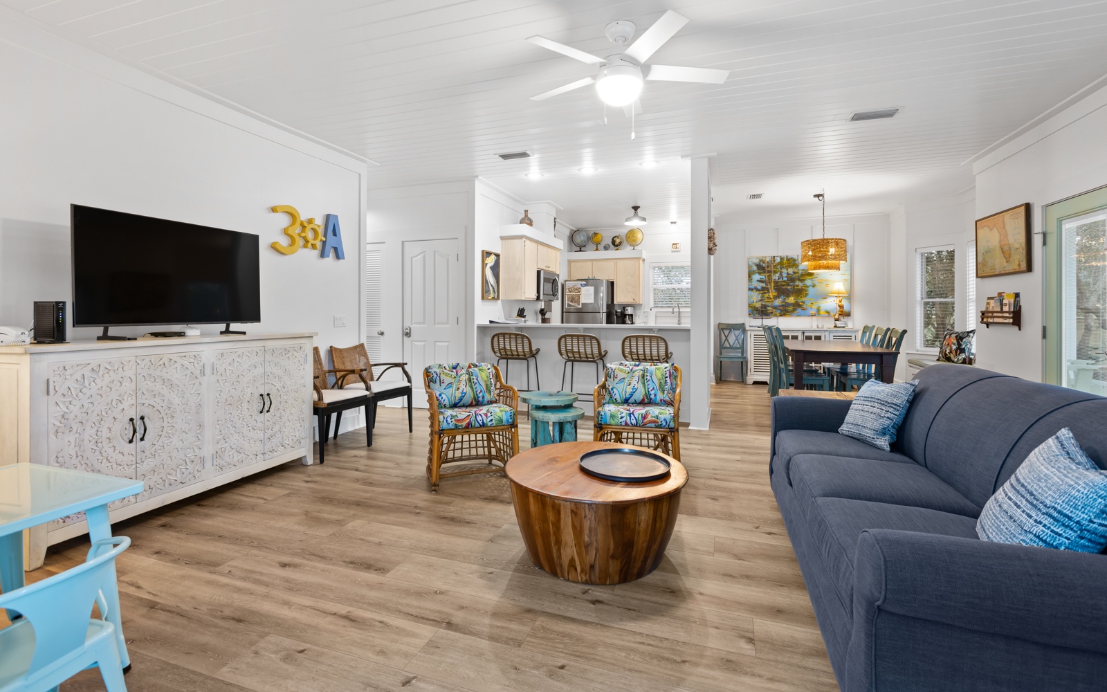 A House With No Name is a freshly renovated, three-bedroom, two-bath beach cottage in the heart of Seagrove Beach. Designed with modern coastal style and plenty of charm, it’s the kind of place that makes unwinding feel effortless.