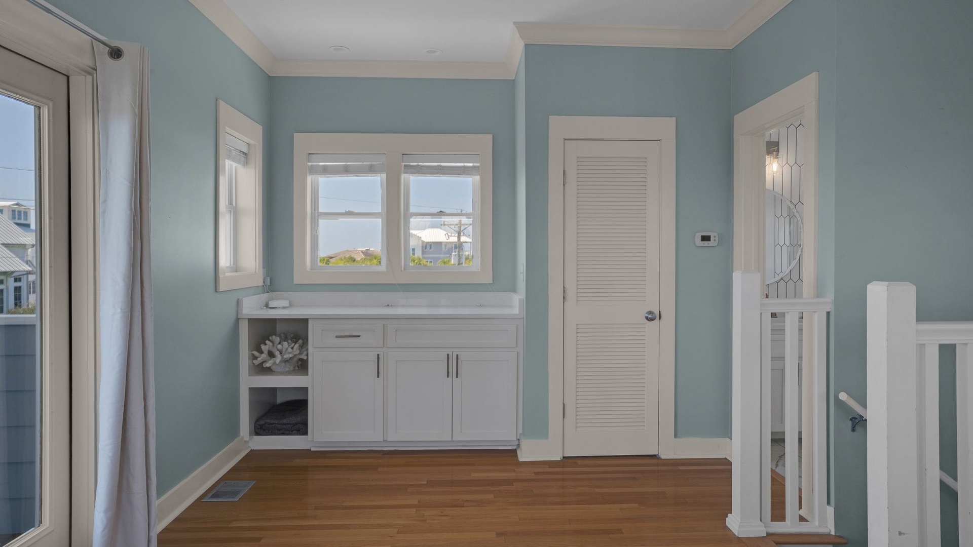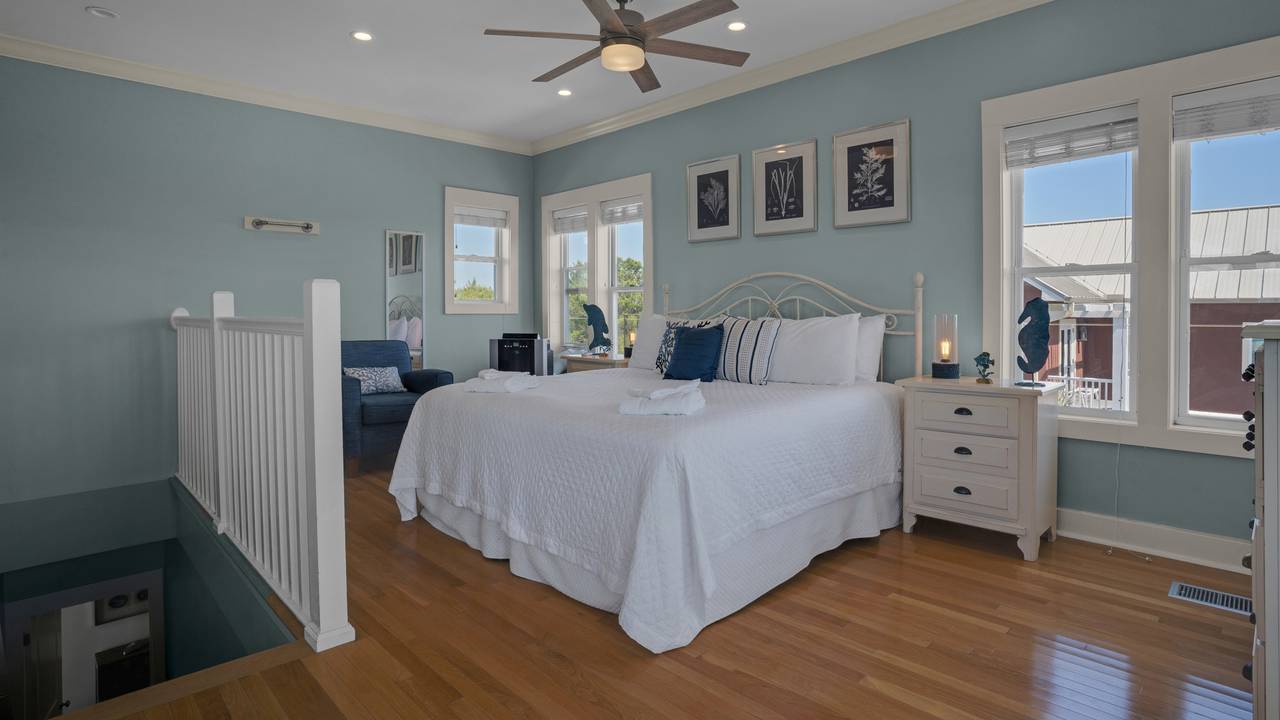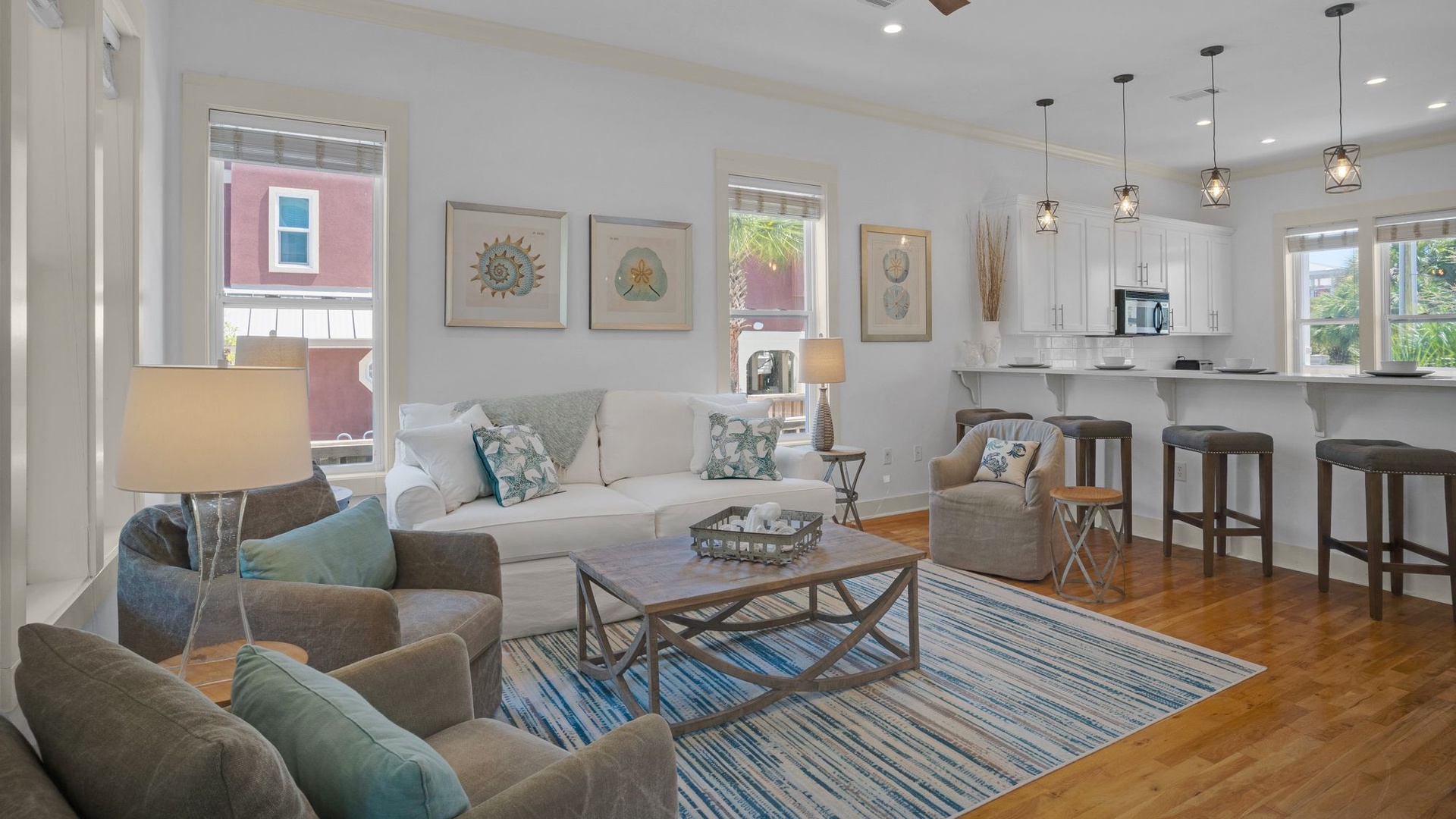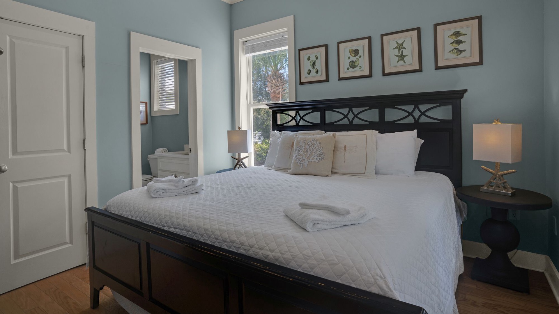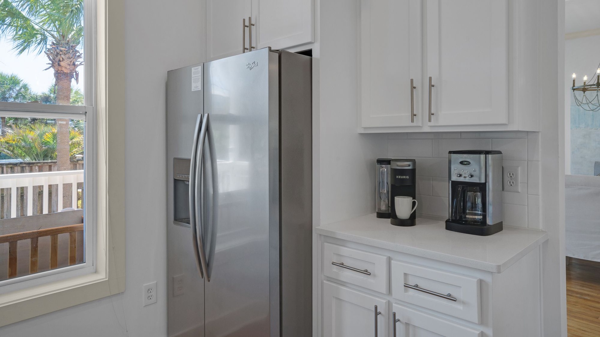Out back (didn’t we already mention the pool?), the private fenced yard turns into its own little resort: That pool! The comfortable loungers and a gas grill for afternoon cookouts is the perfect spot to unwind after a day at the beach.