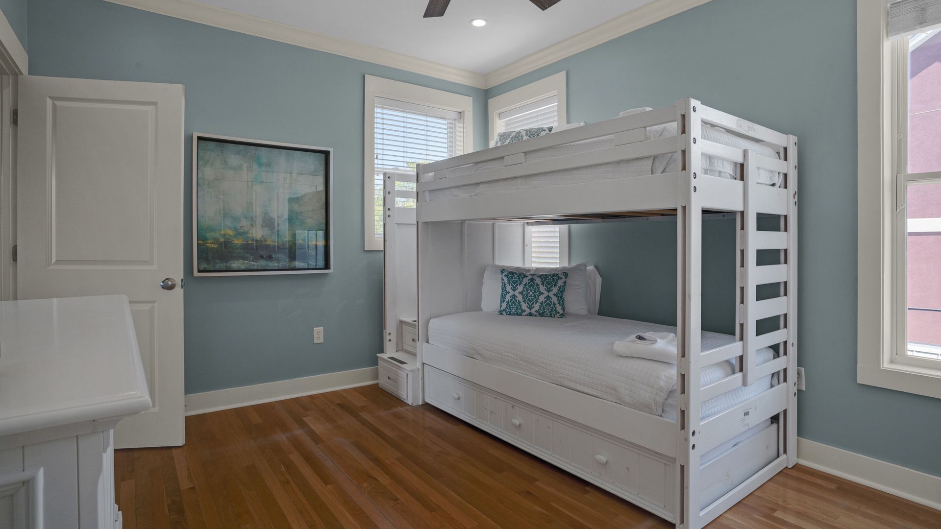 - Bunk Room 2: Twin-over-twin bunks with twin trundle, shared bath, TV