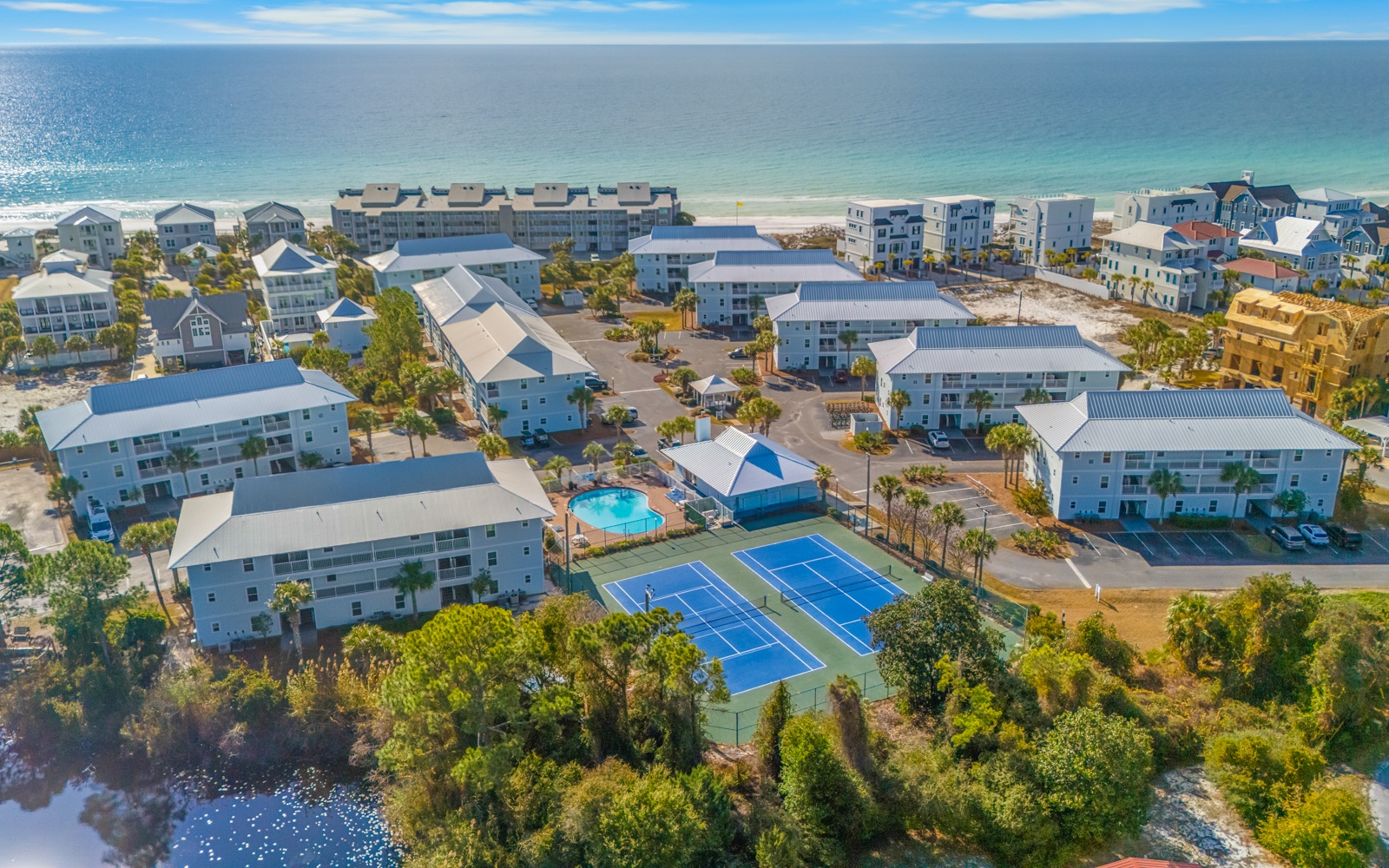Aqua Bella comes with plenty of perks, including two pools (one heated in March), tennis courts, a community grill and WIFI. Enjoy the best of 30A with convenient beach access and all the comforts of home at Aqua Bella!