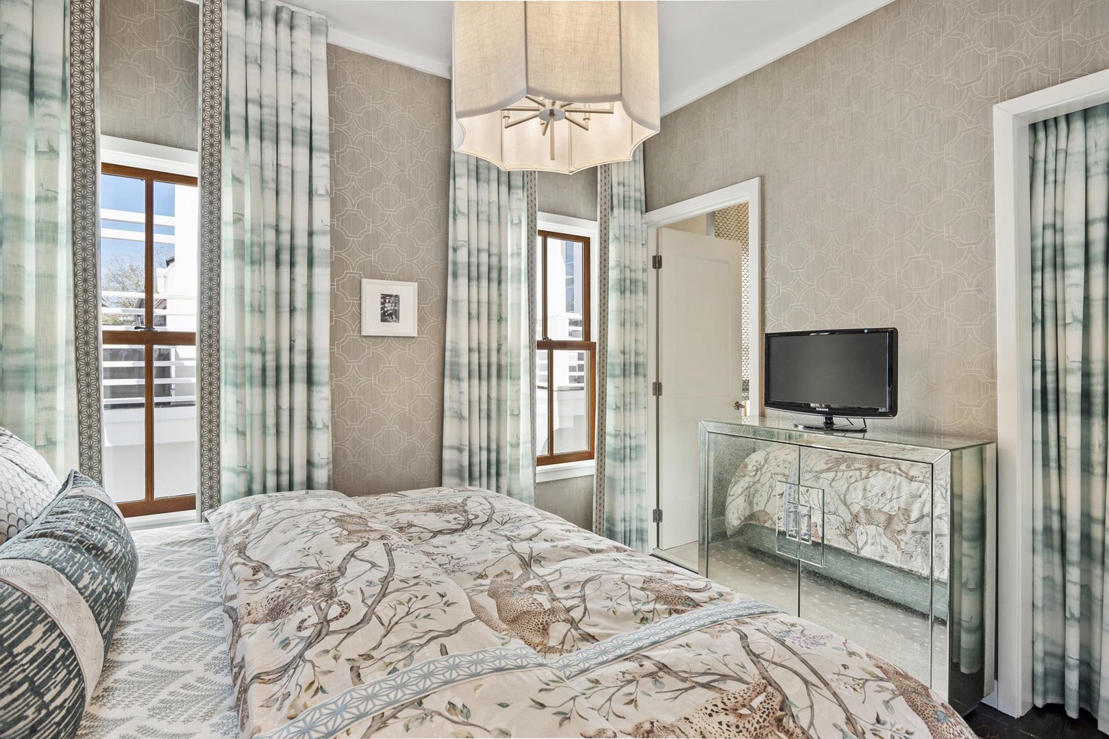The primary bedroom offers a king bed, HDTV, and a private bath with a tub/shower combination. Step outside onto the home’s private balcony to enjoy views of Rosemary Beach's unique architecture or unwind after a fun-filled beach day.