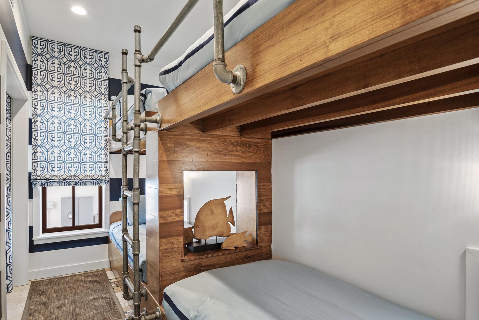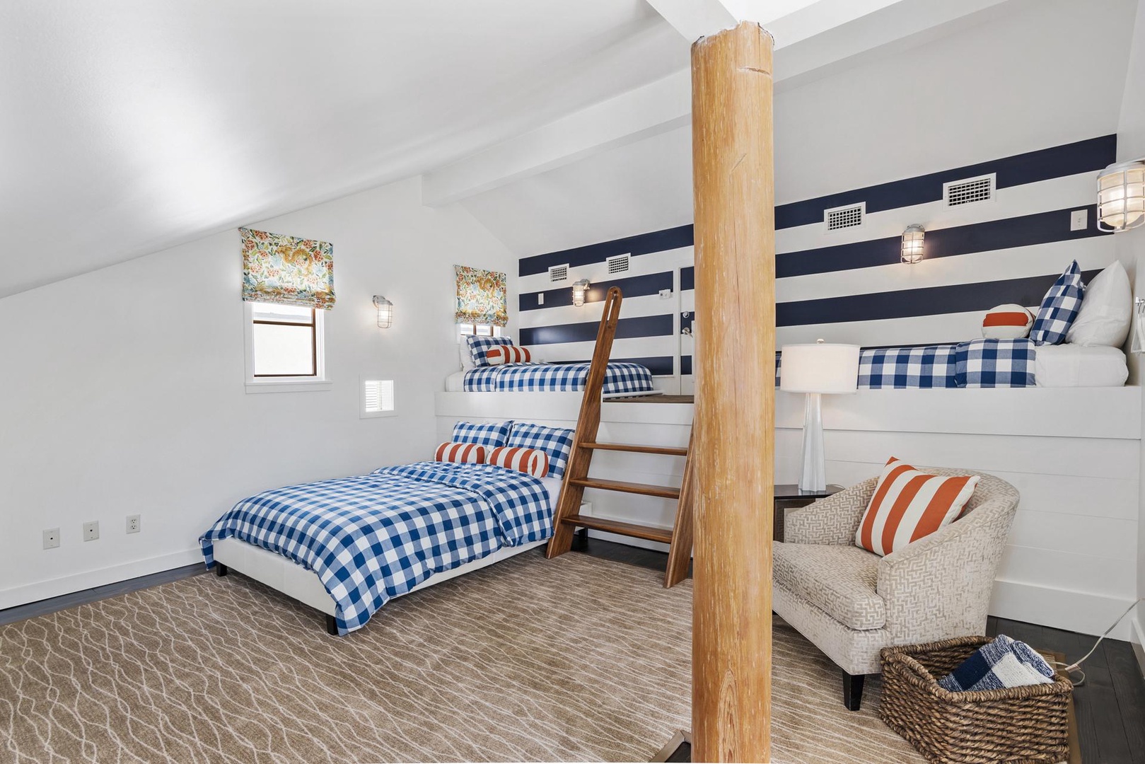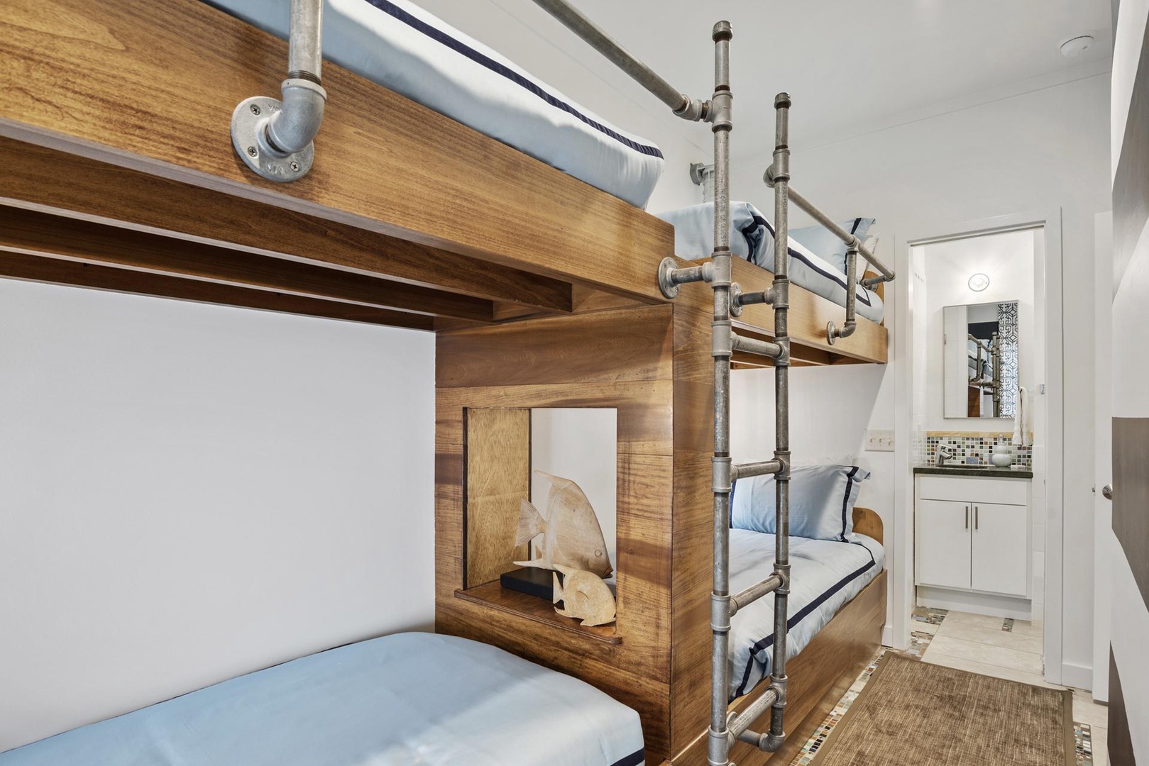 - Bunk Room: Two twin-over-twin bunks, private bath w/shower (no TV)