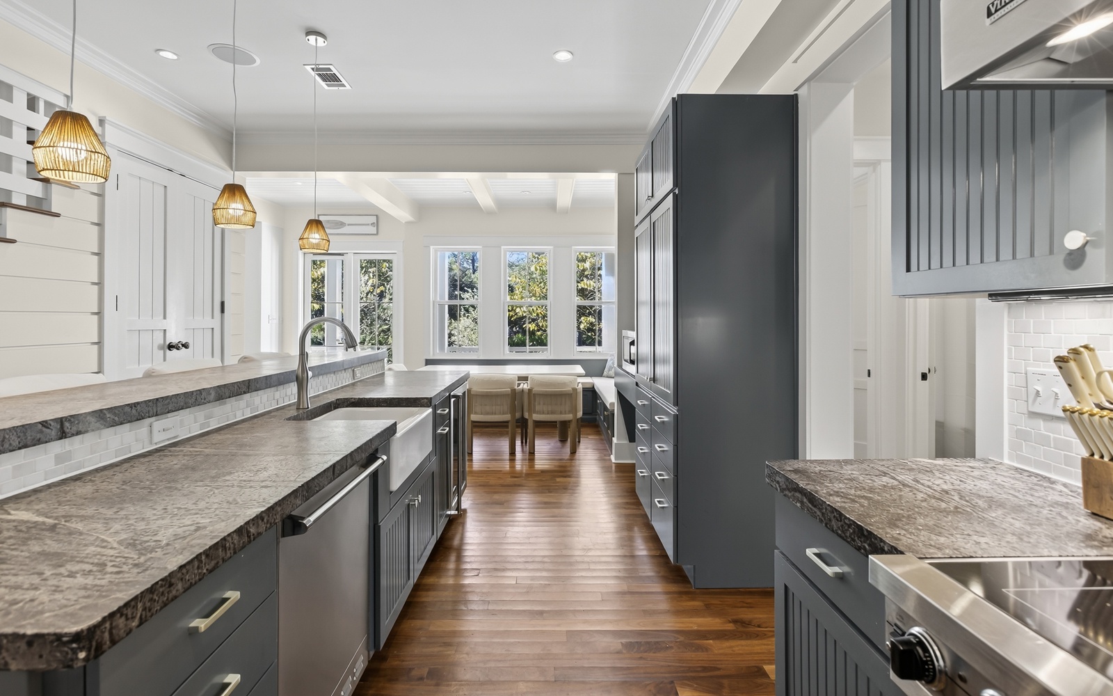 🌿 Stylish interiors with vaulted ceilings & custom built-ins
