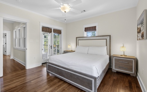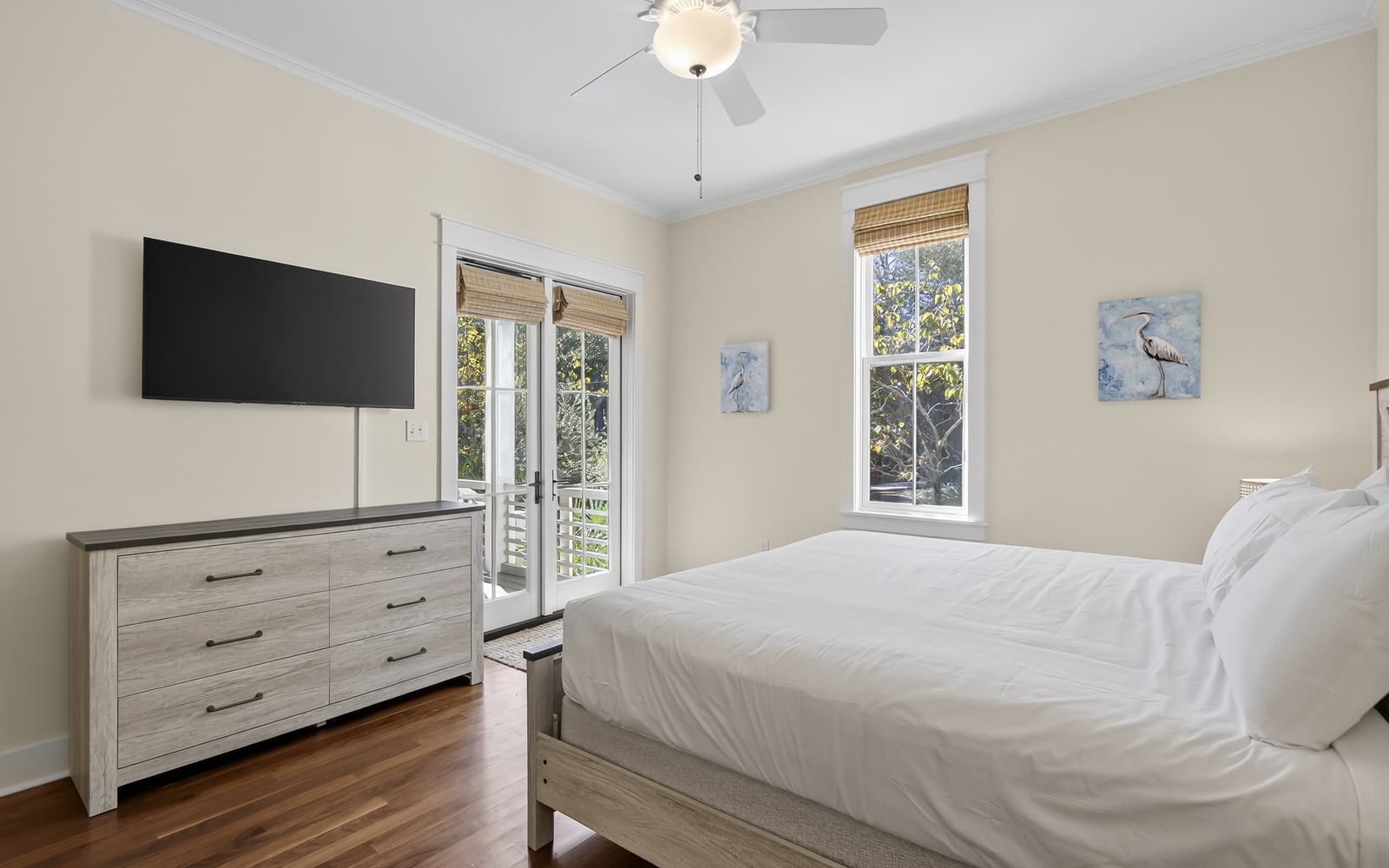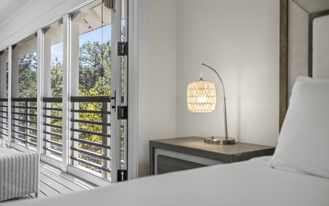 -King in 2nd floor guest room; ensuite bathroom with shower/tub combo; TV; balcony