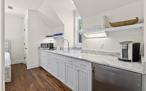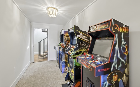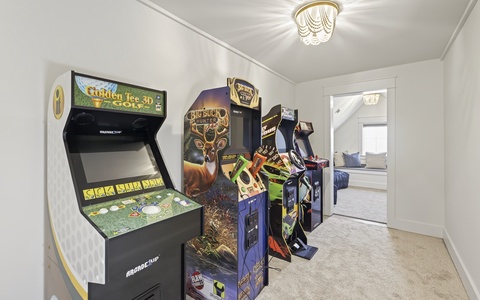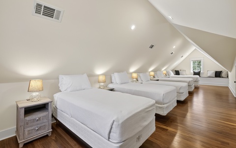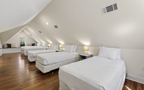 - Twin beds (5) in 3rd floor suite area; mini kitchen; gaming area; conjoined mini sitting area