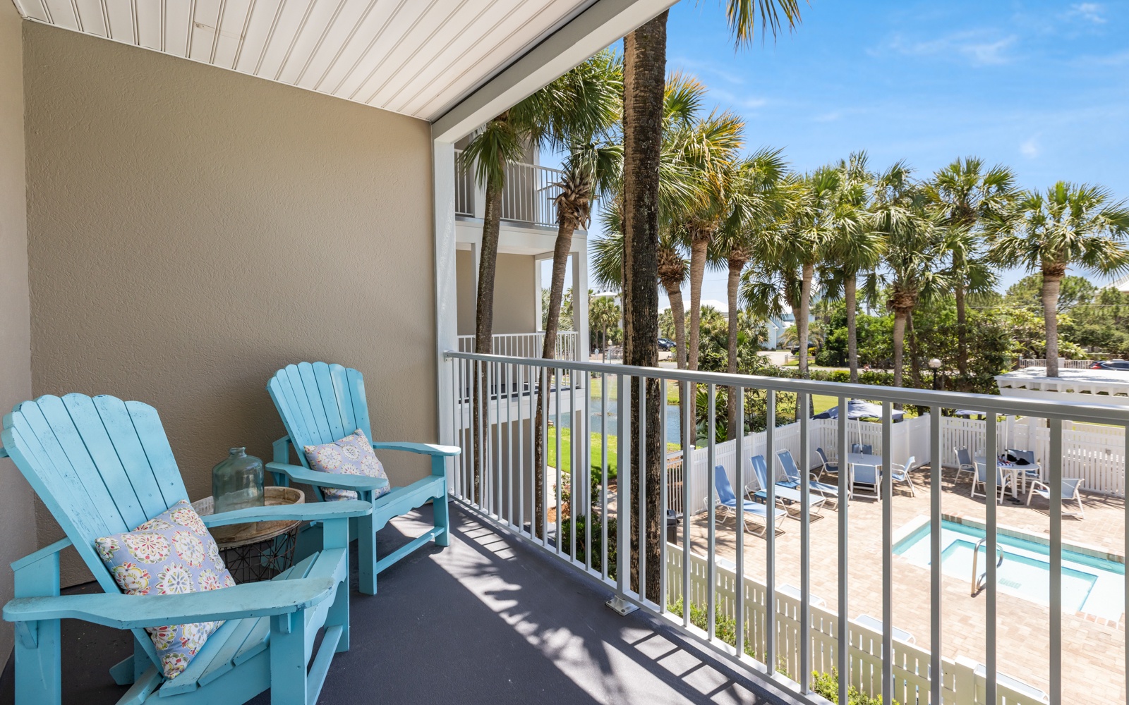Start your mornings with coffee on the balcony as the world wakes up, and end your evenings with a glass of wine, watching the sky change colors over the Gulf, the pond, and the community pool.