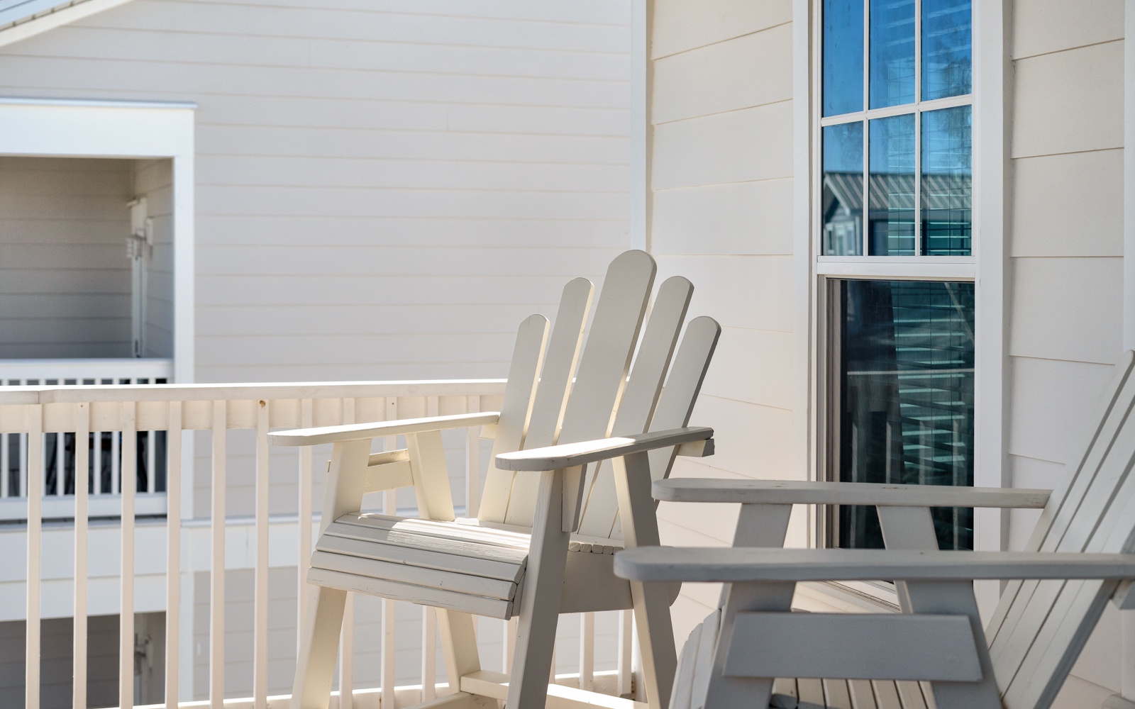 The third-floor primary suite gets its own balcony, the kind of hideaway that pairs well with coffee, sunsets, or escaping group decisions about dinner.