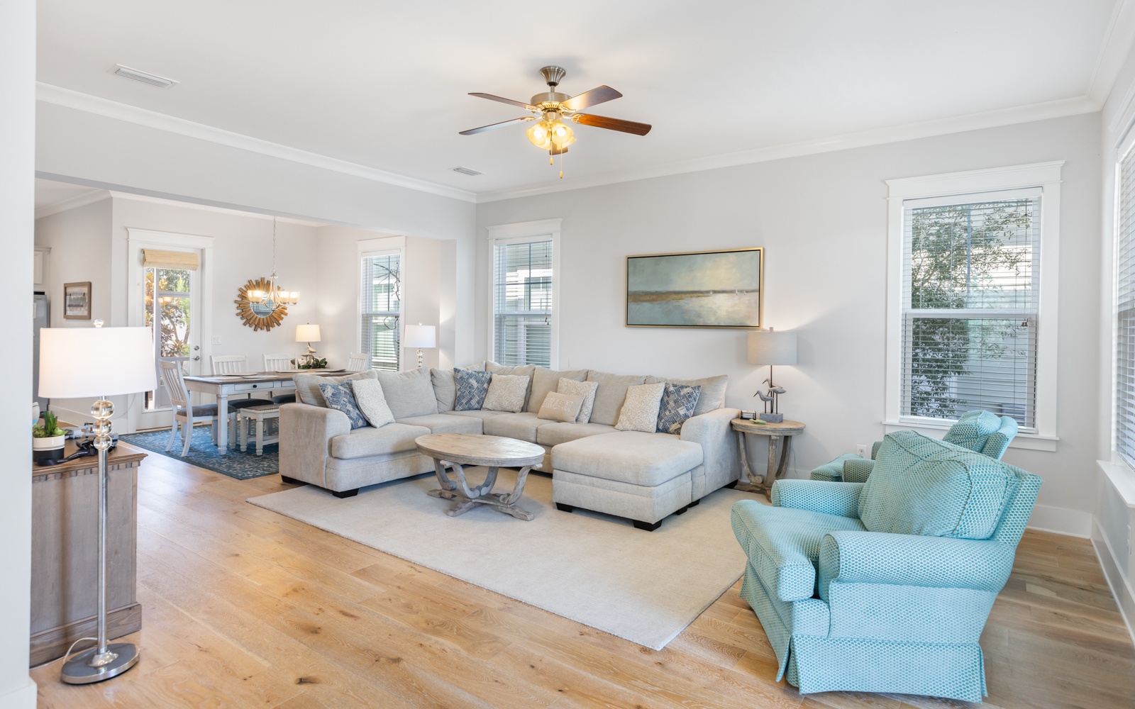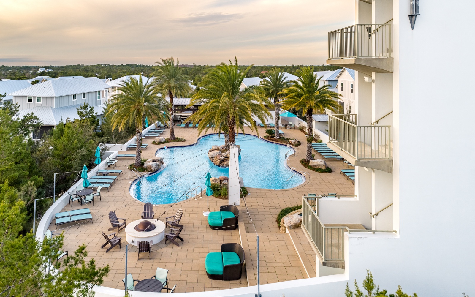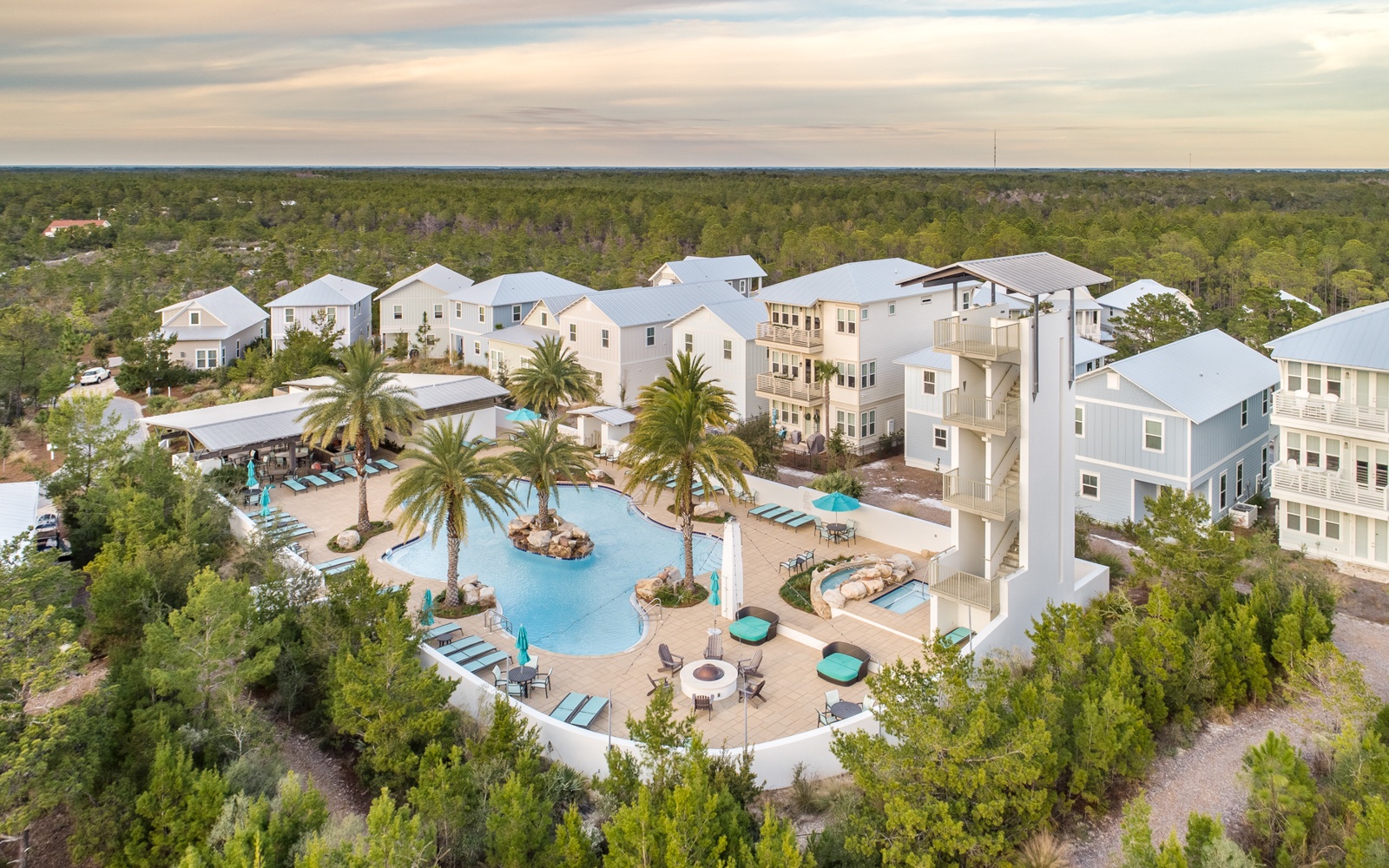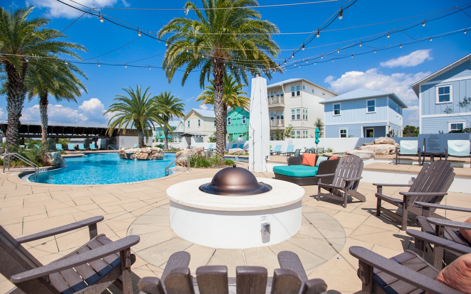 By The Sea is a new, 3-bedroom home in the Highland Park community, in laid-back Blue Mountain Beach. The neighborhood has a resort-style, tropically landscaped lagoon pool, which includes a hot tub, 360-observation tower, community grilling area, and firepit with comfy chairs and couches.