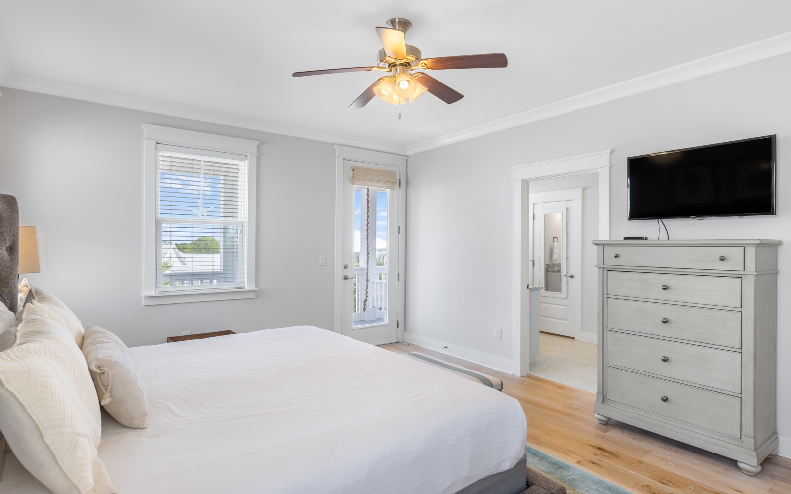 Off the primary bedroom, king, a private balcony lets you enjoy your morning coffee as you take in the sunrise and views of Point Washington State Forest.