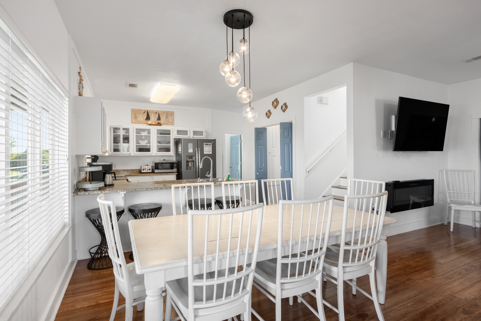 Inside, the second and third-floor decks have stunning views of the gulf. The 50” fireplace creates heat and ambience. The second-floor deck extends the length of the house from the primary suite, king, to the guest room, queen. Ever wake up to a Gulf breeze, and the smell of the salt air? Divine.