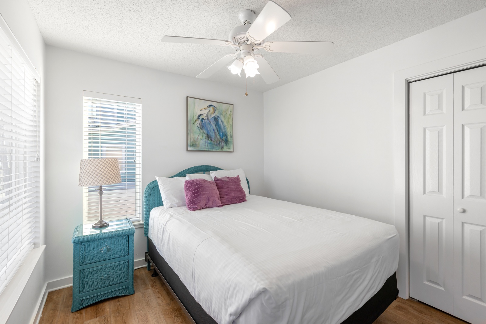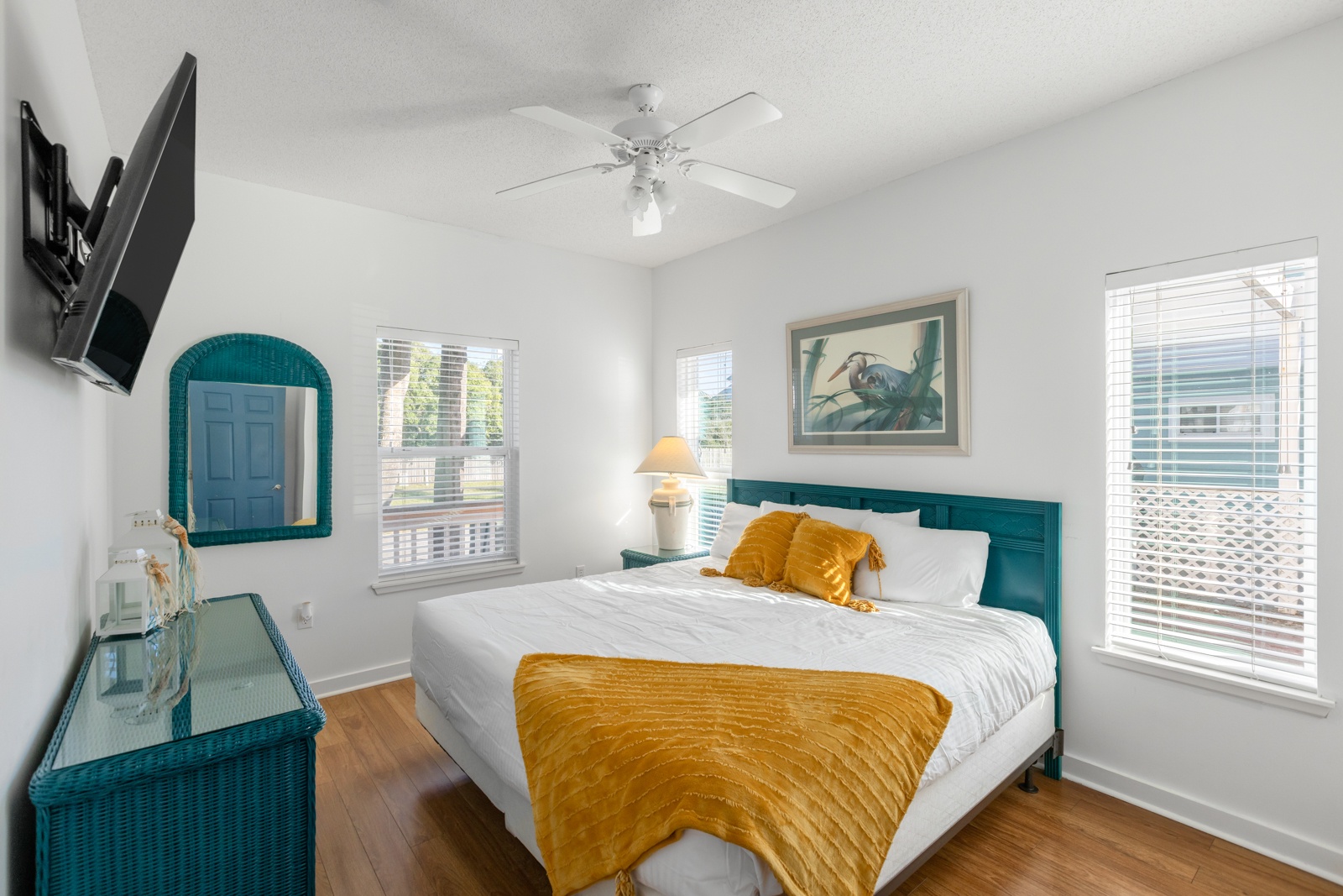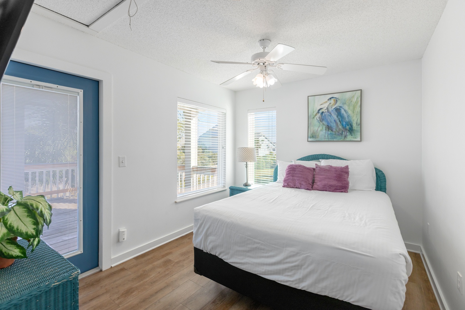 - Queen in 2nd story guest room; shared hallway bath; attached balcony