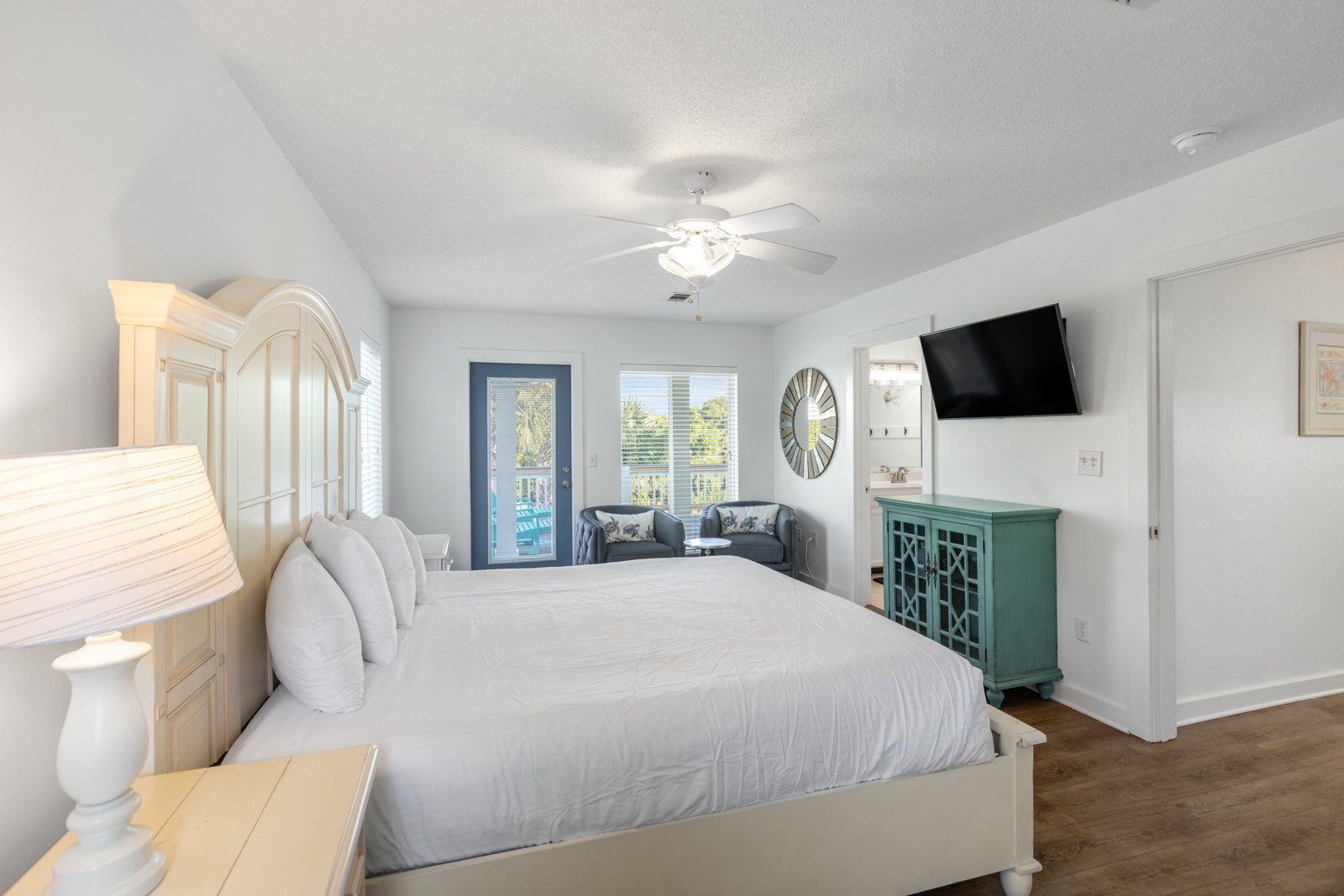 - King in 2nd story primary; attached balcony and private bath