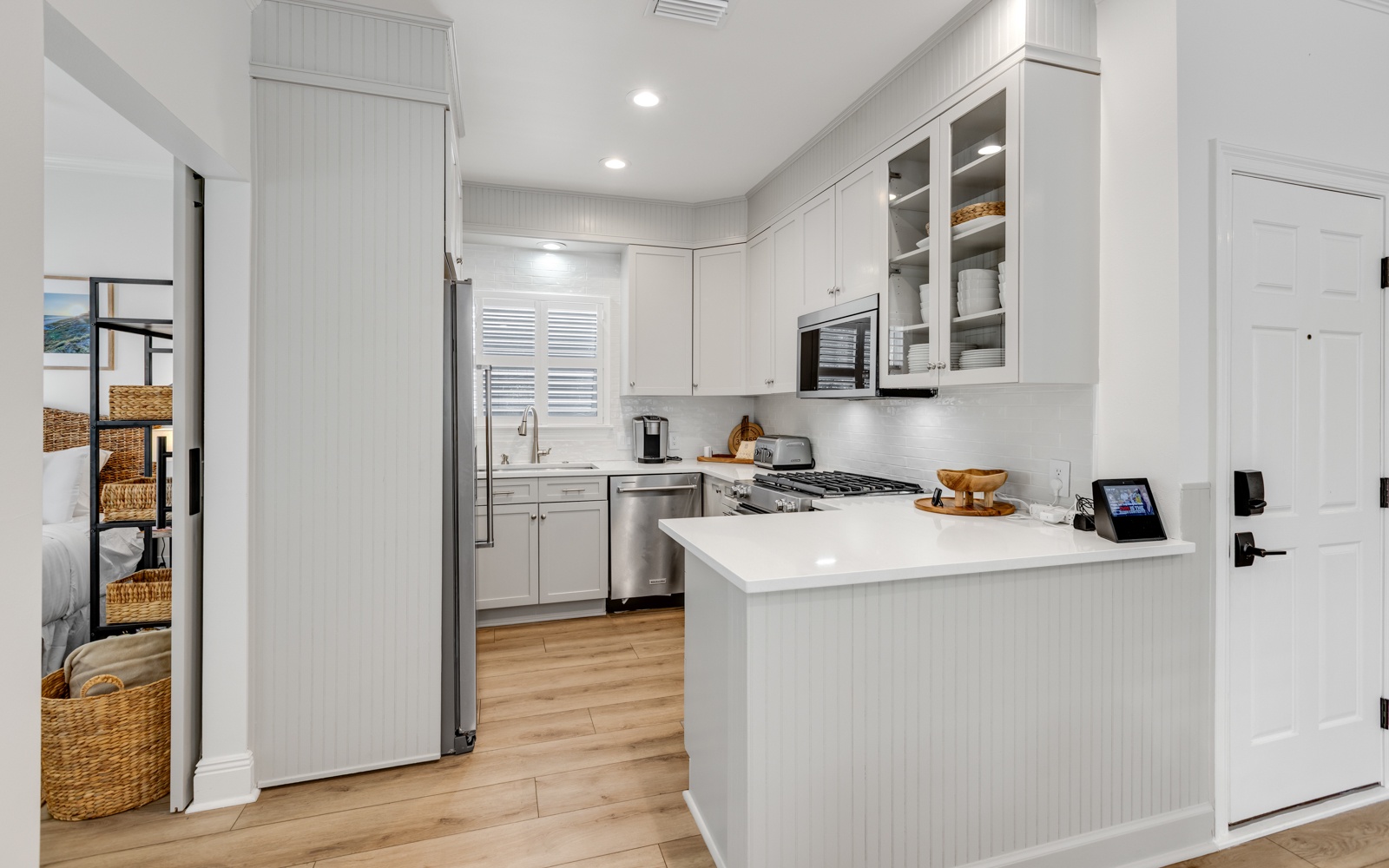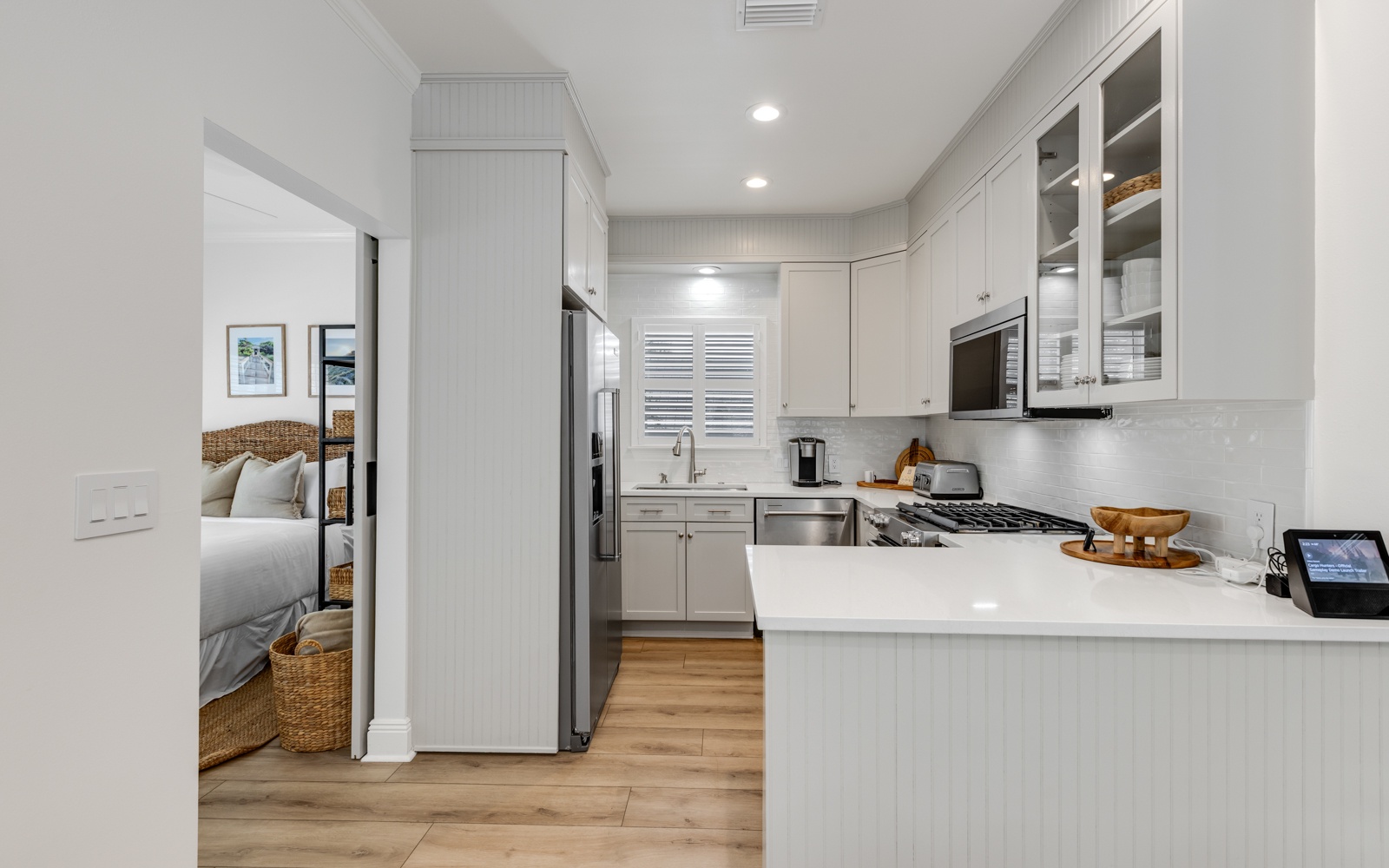 - Guest Room: Queen bed, shared bath, Smart TV