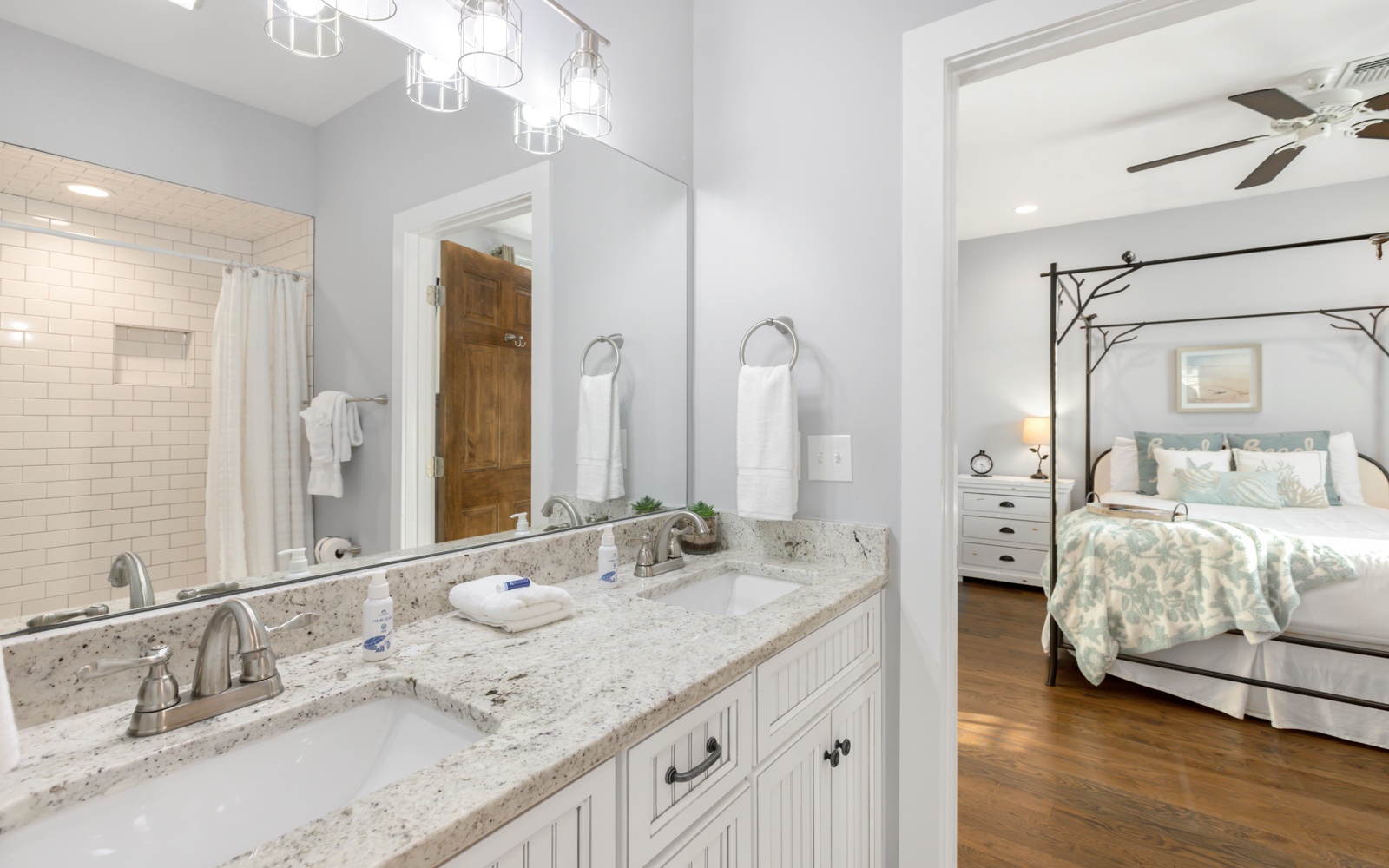 - Queen in 2nd floor guest room; shared Jack and Jill bath; TV