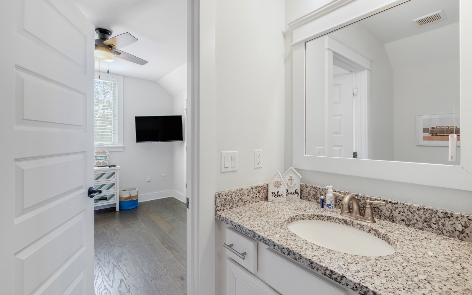 - Twin/twin bunk bed with twin trundle 2nd floor room; shared bath; TV