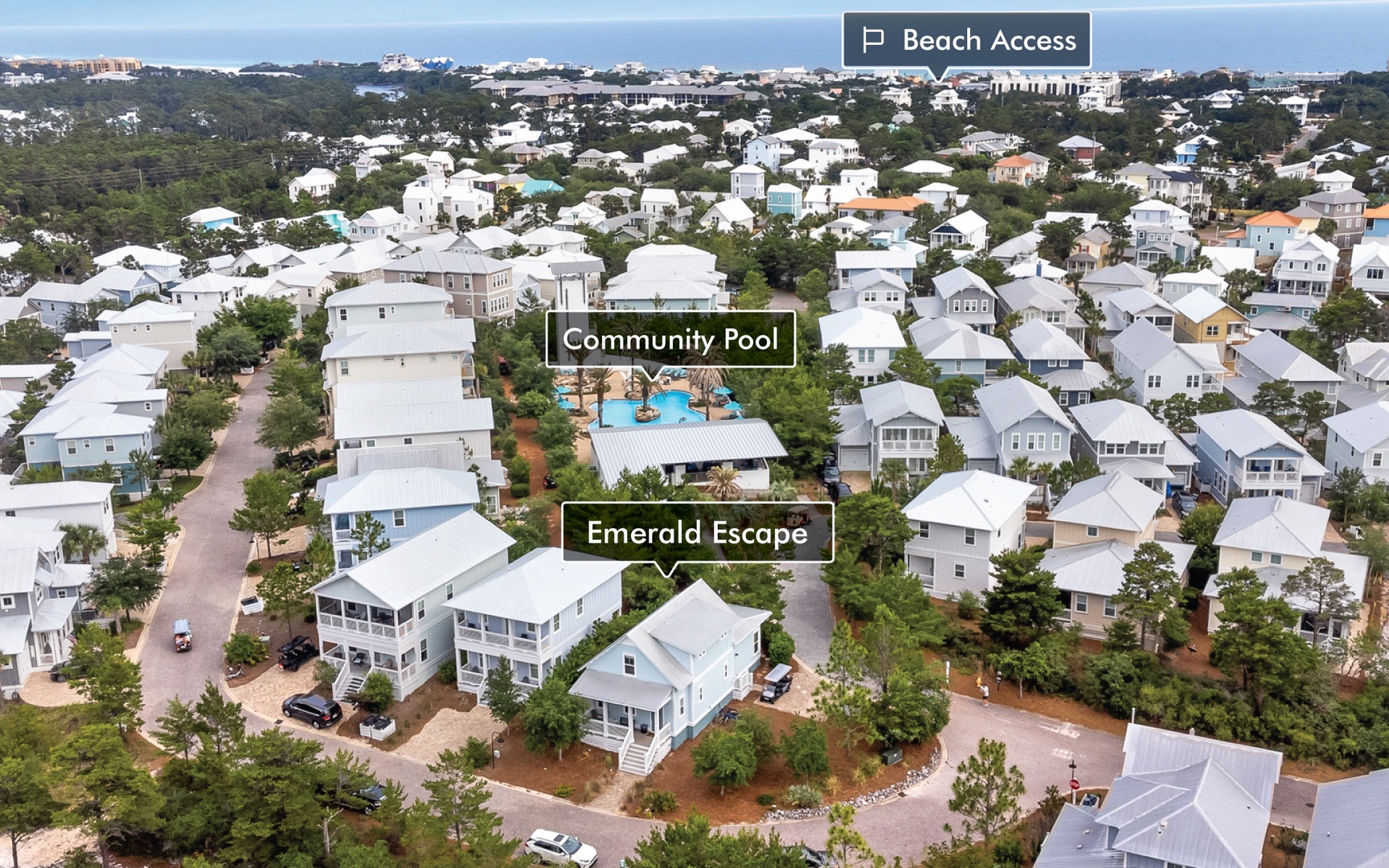 Emerald Escape is your peaceful retreat in the Highland Parks community of Blue Mountain Beach, close to Seaside and Gulf Place. The home is on a corner lot that offers additional privacy and tranquility, with amazing amenities just steps away.