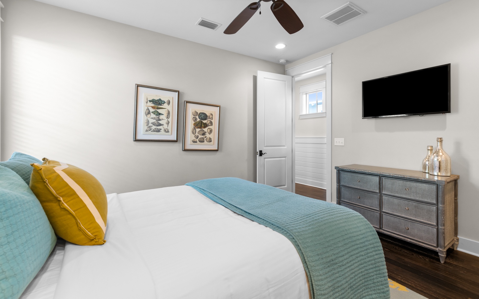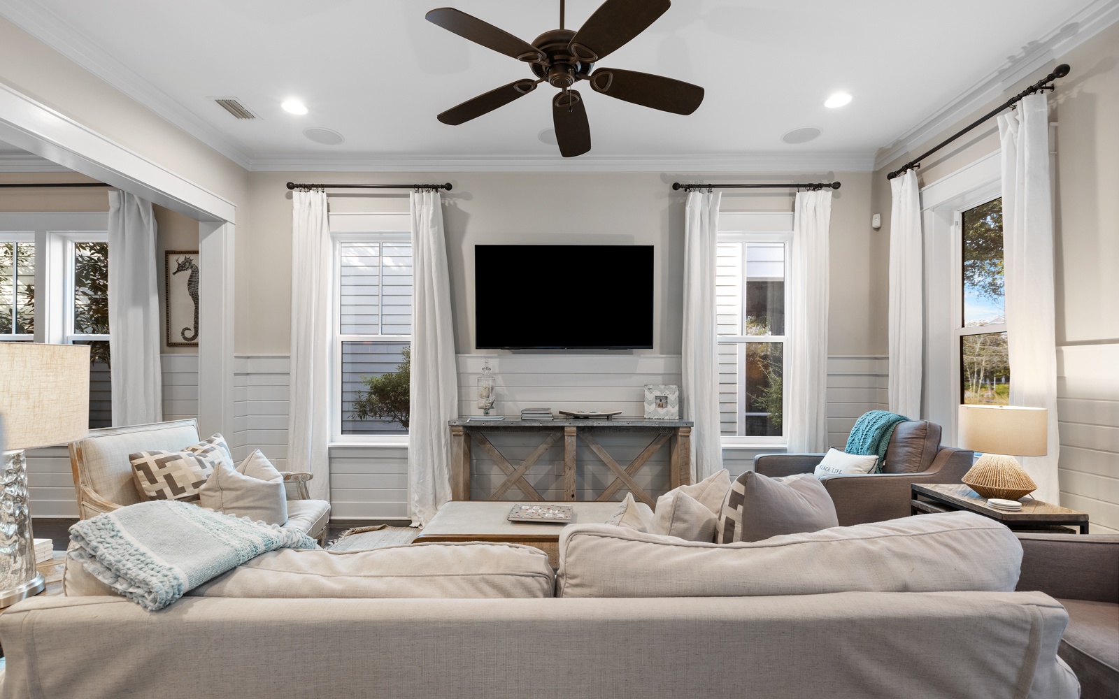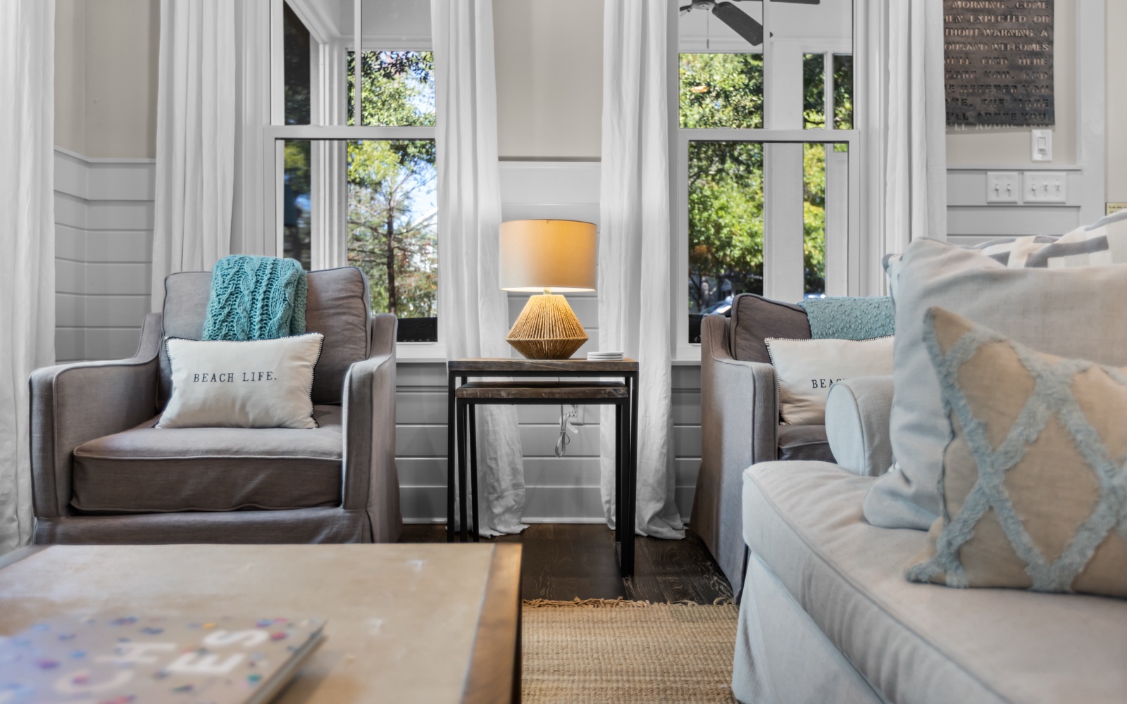 A stone’s toss from Dragonfly Pool and minutes from Camp WaterColor, this designer five-bedroom retreat brings comfort, style, and all the thoughtful touches that make a vacation feel effortless. Roll around the community in the complimentary 4-seater golf cart, hop on one of the five bikes for a spin to the beach, pool hopping, coffee pickups, or spontaneous detours.