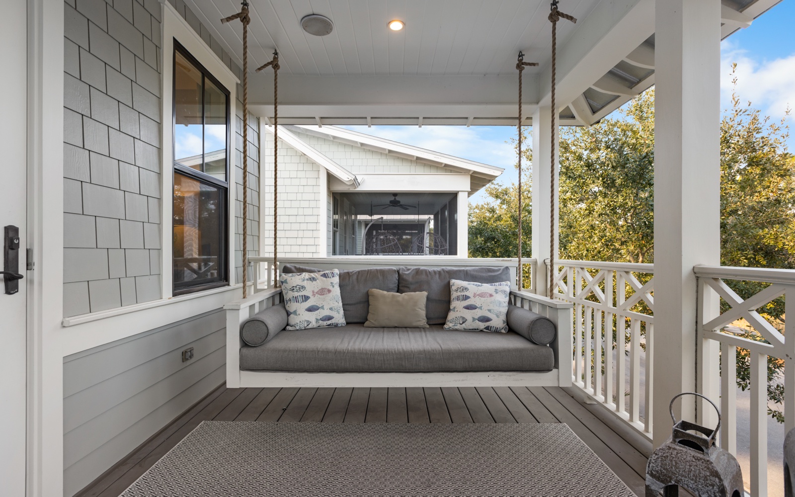 Outside, the spacious screened porch invites everyone to settle in with cushy seating and quiet neighborhood views. The swinging porch bed is a crowd favorite for book-before-nap moments and late-night chats.