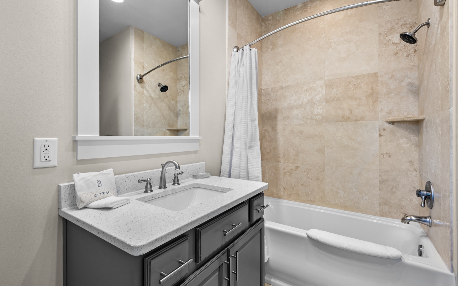 - Guest Bedroom: Twin over Full Bunk Bed, Shared bathroom with Shower/Tub Combo