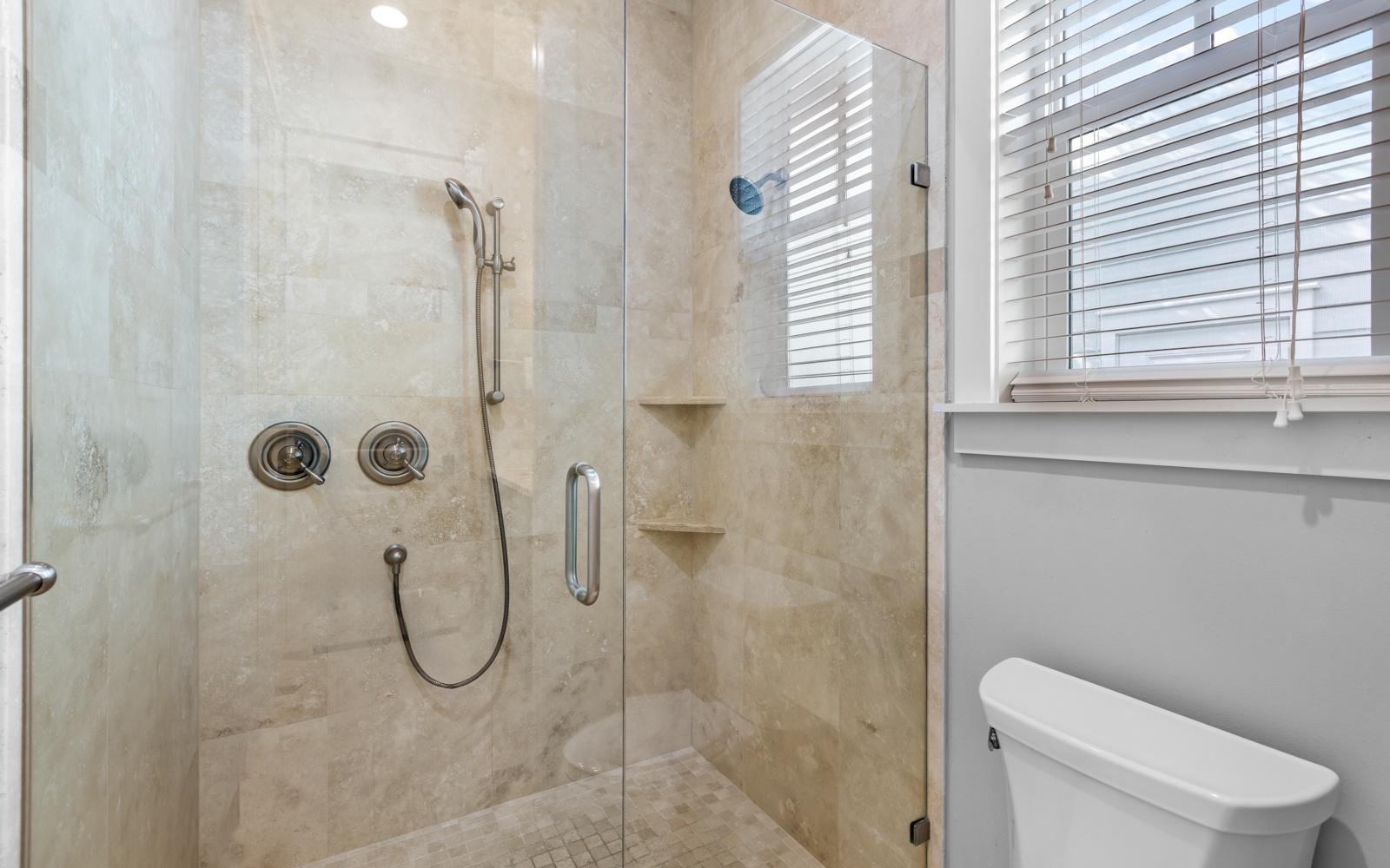 - Guest Bedroom: Queen bed, shared bathroom, shower, TV