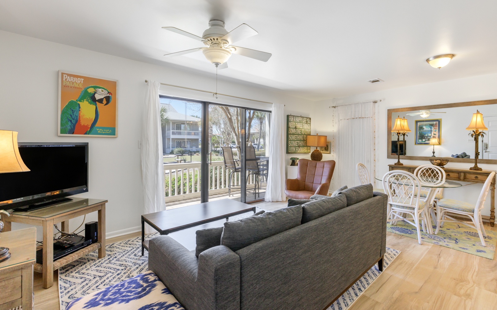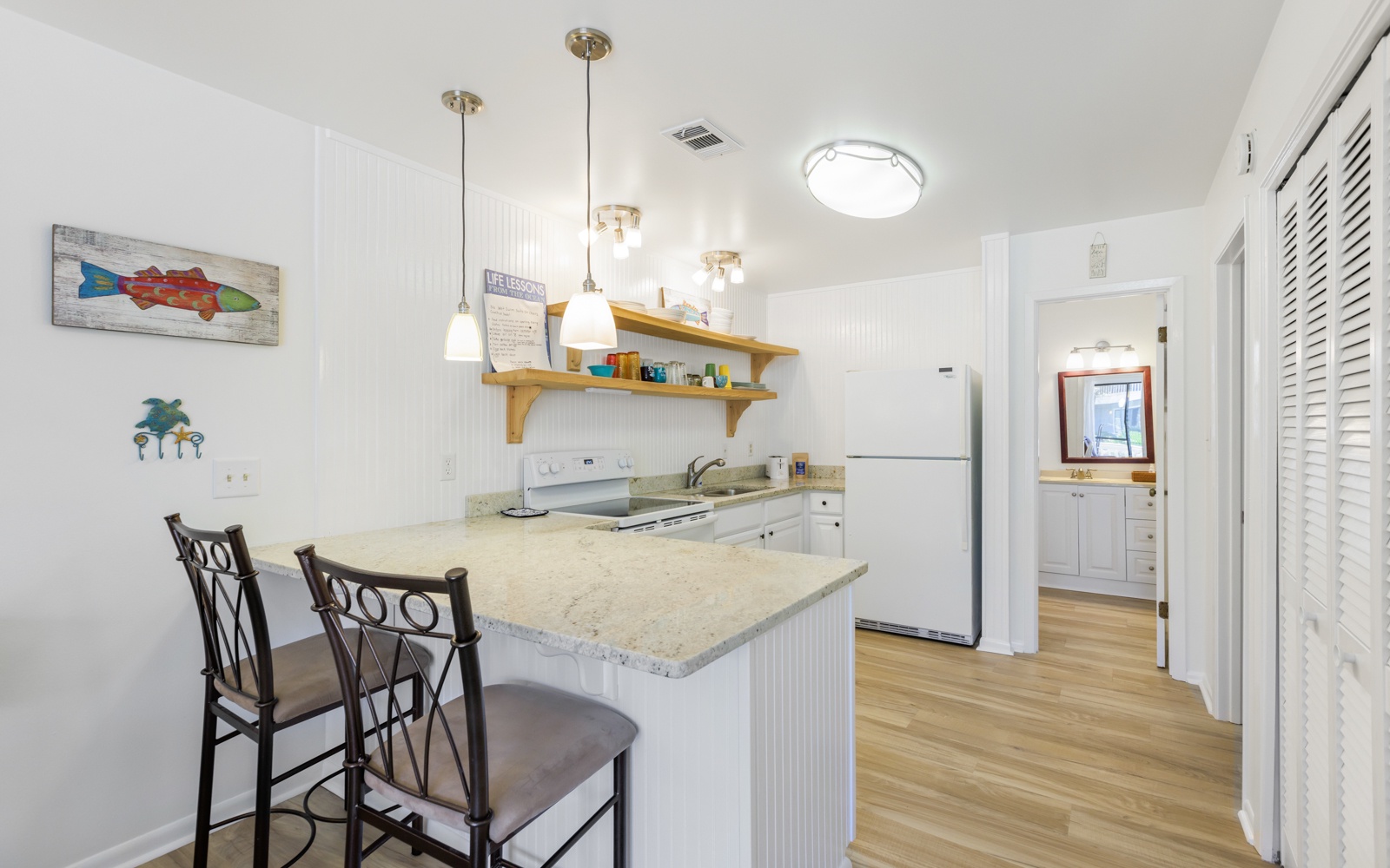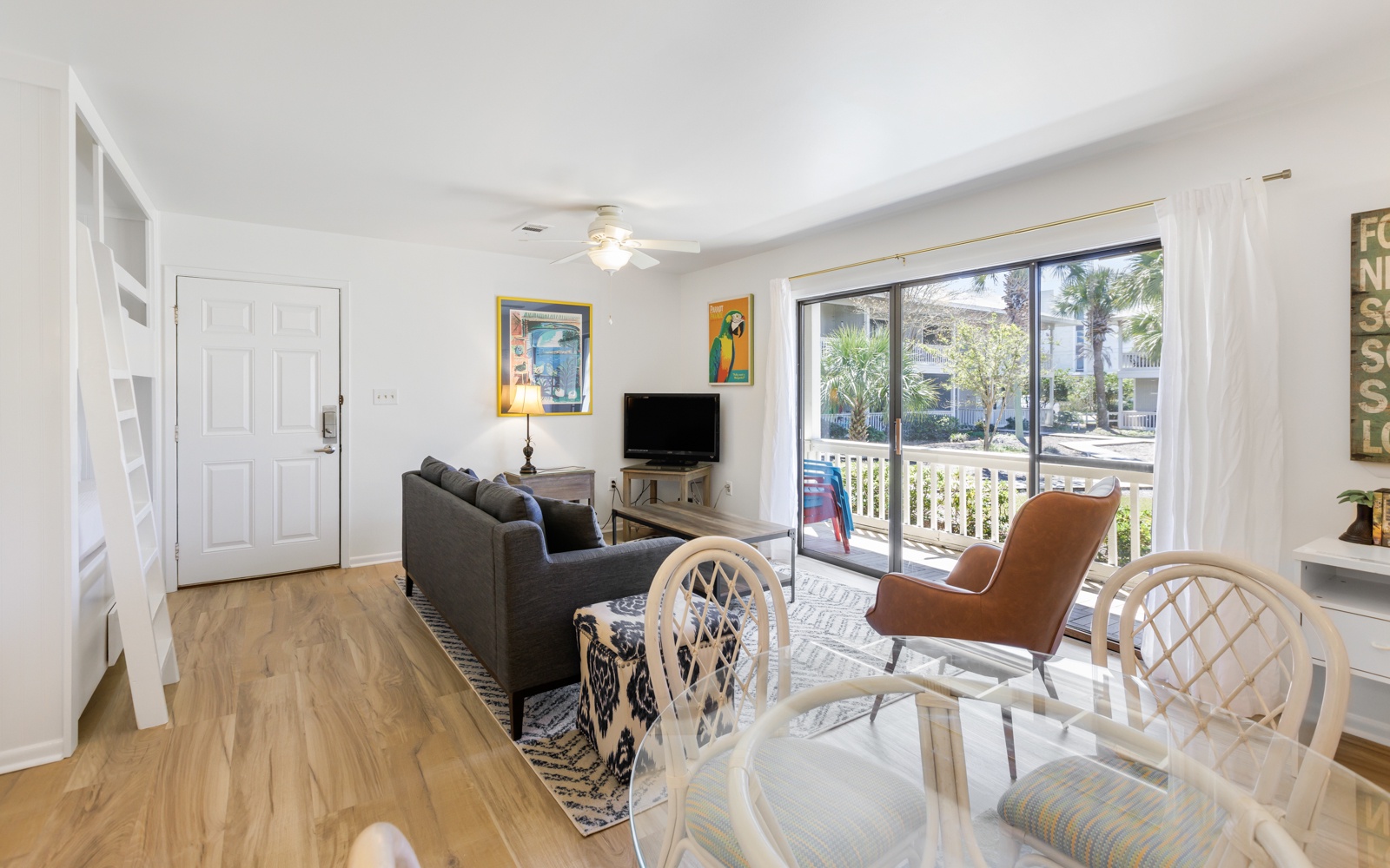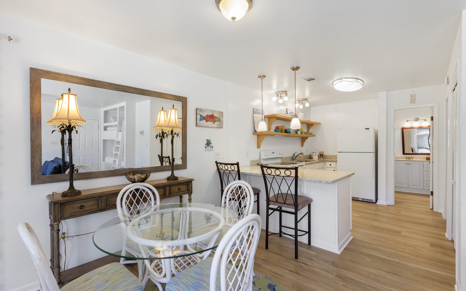 Newly renovated, this cute, first-floor condo has a beautiful living room space, with a bunk nook and two oversized twin beds, perfect for the kids.
