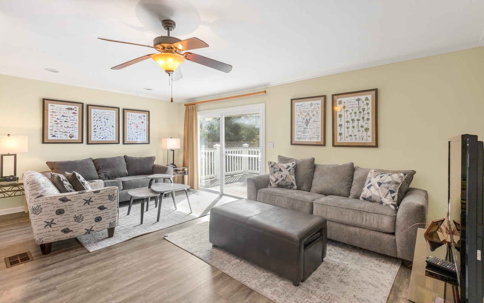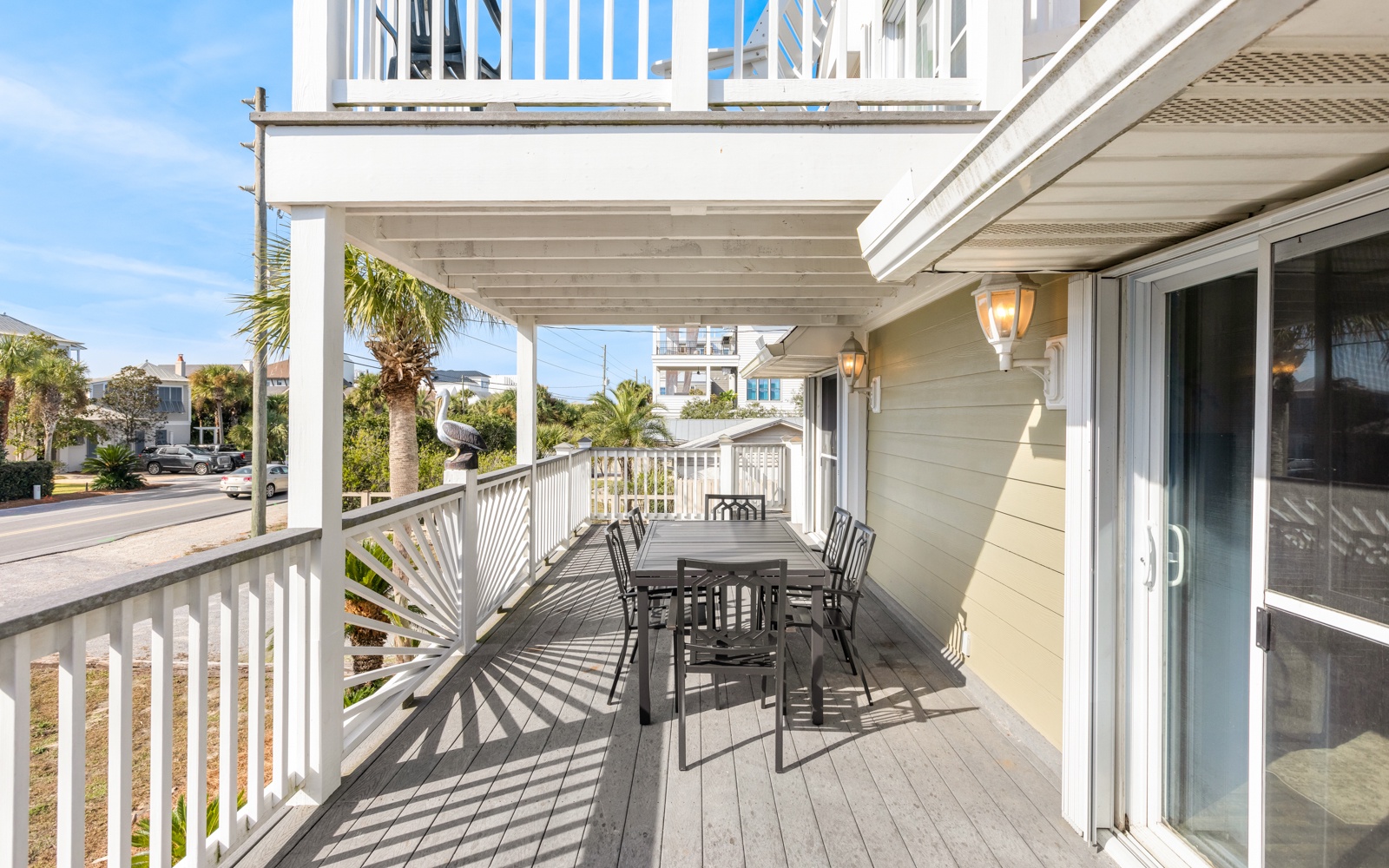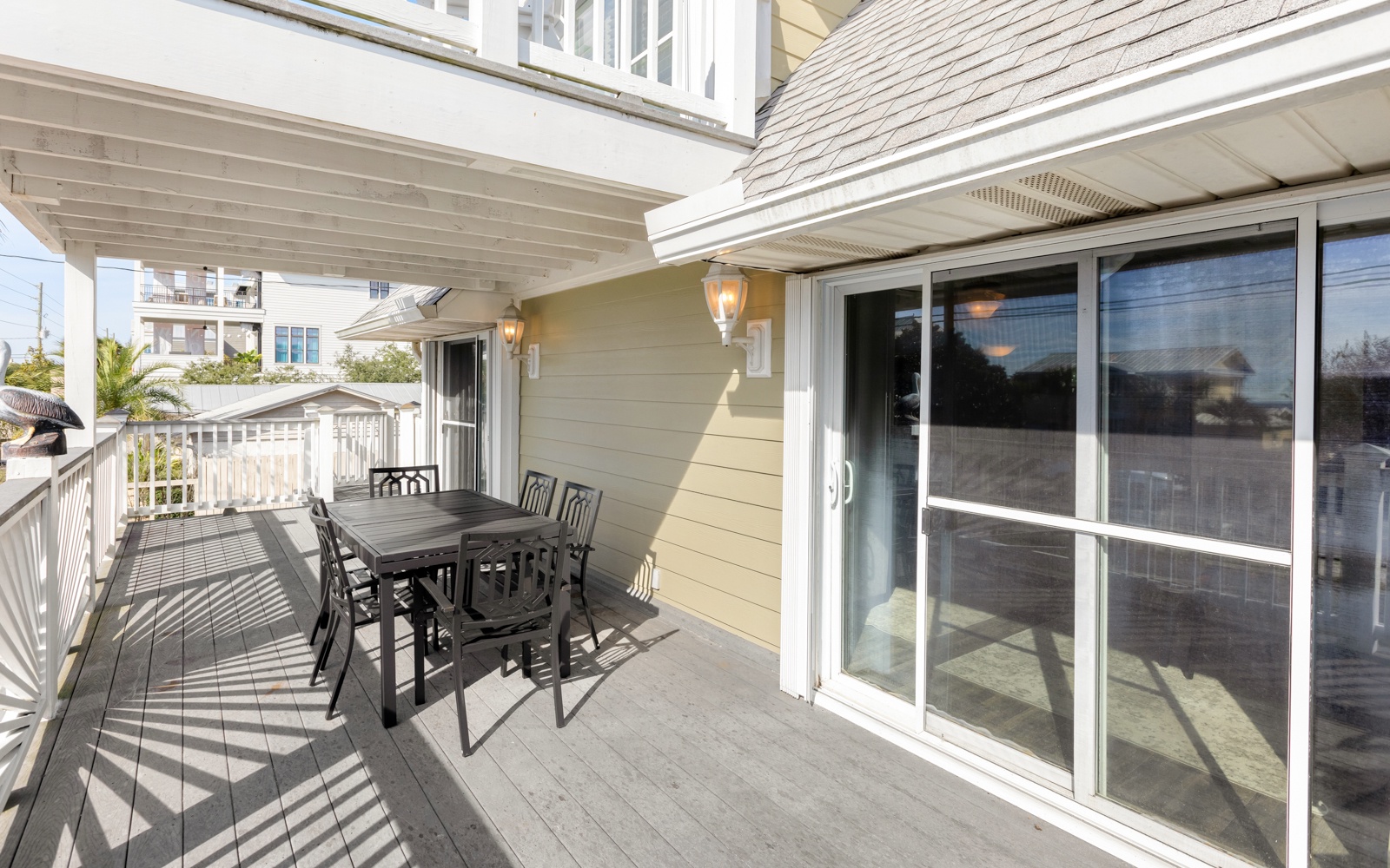 With space for eight, this bright and breezy home is designed for soaking up the view. The second-floor balcony is pure sunshine, with sliding doors leading into a welcoming living area and a primary suite. Two full beds complete this level, offering a comfy spot to recharge after a day in the waves.