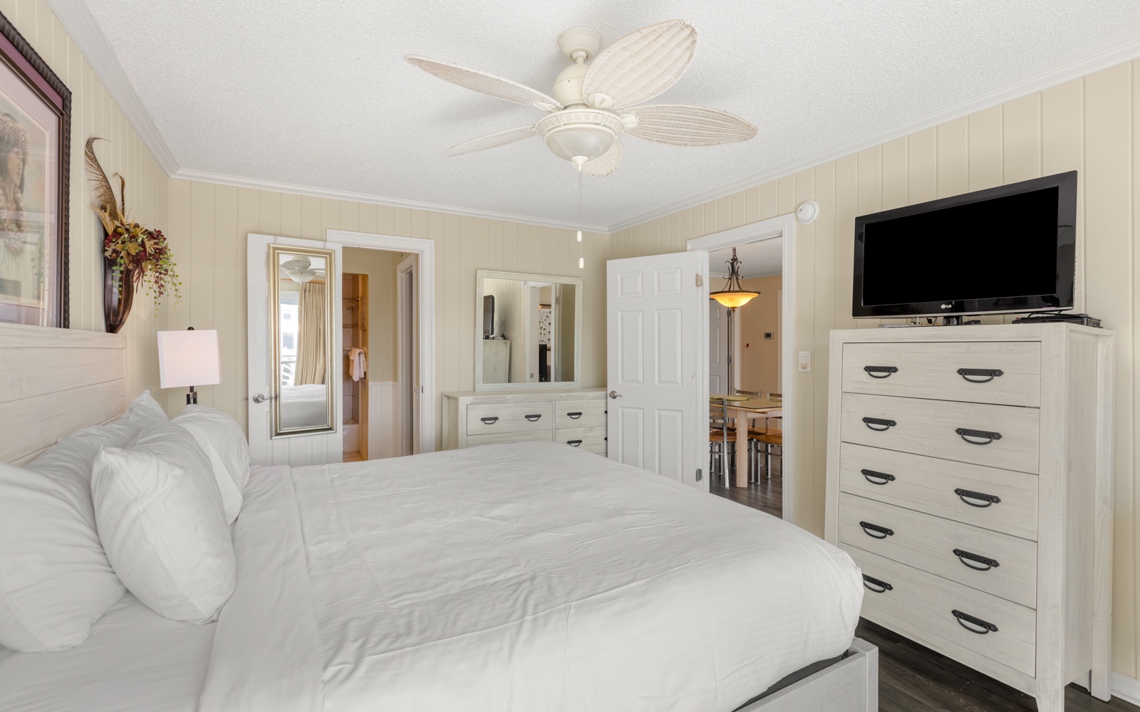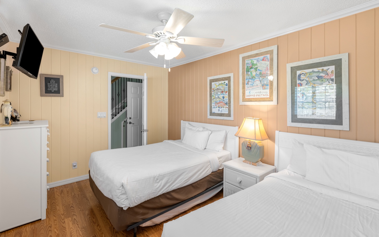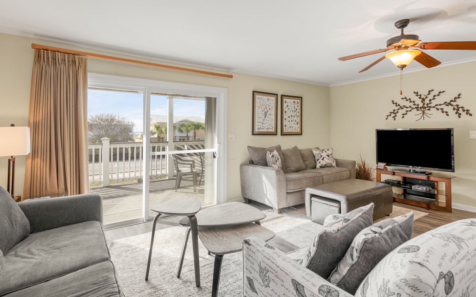 With space for eight, this bright and breezy home is designed for soaking up the view. The second-floor balcony is pure sunshine, with sliding doors leading into a welcoming living area and a primary suite. Two full beds complete this level, offering a comfy spot to recharge after a day in the waves.