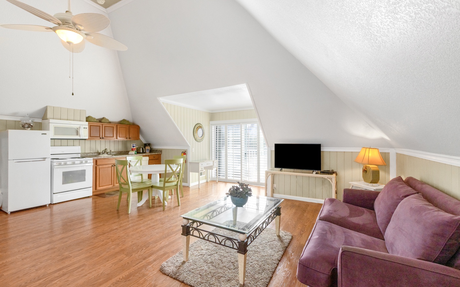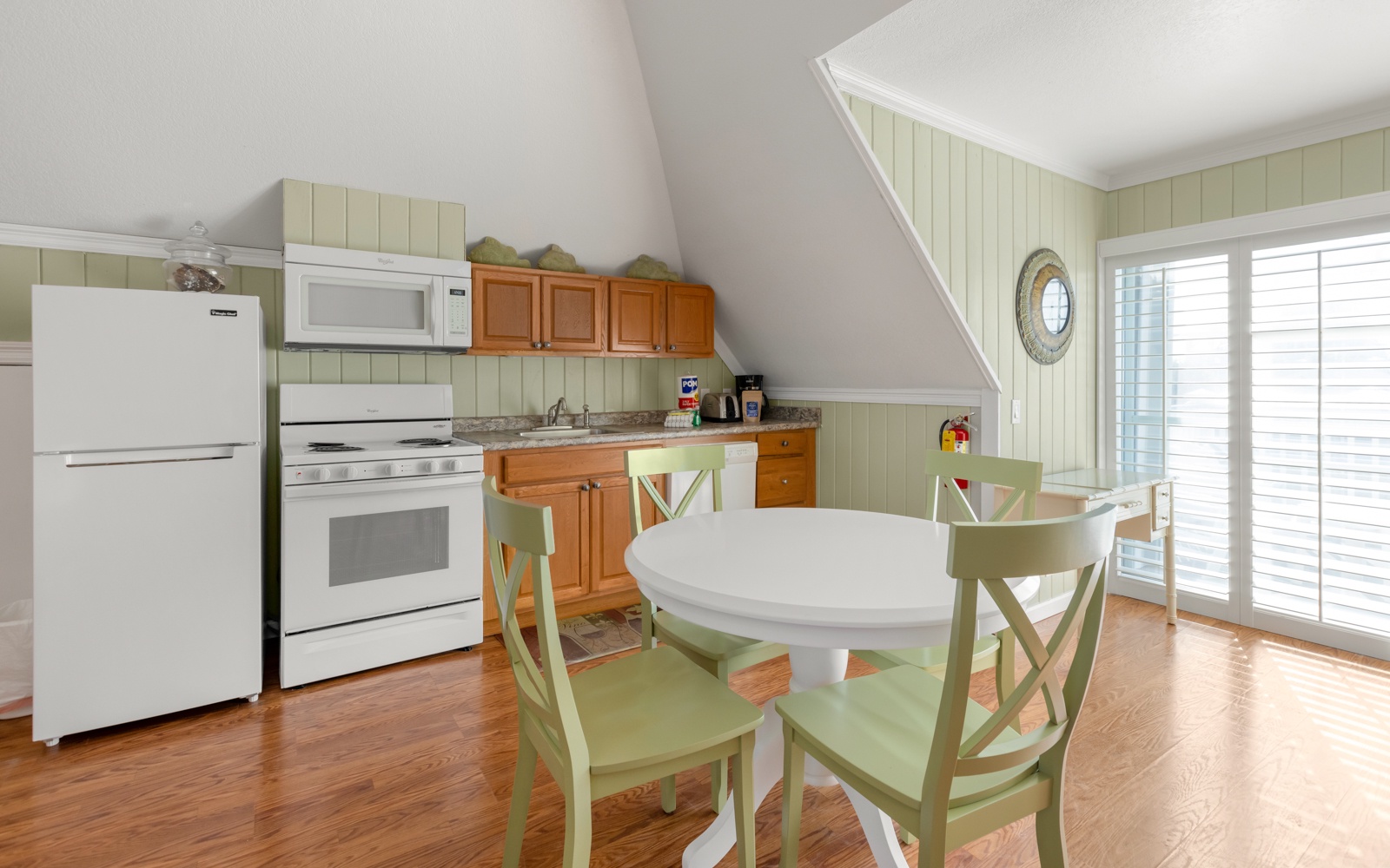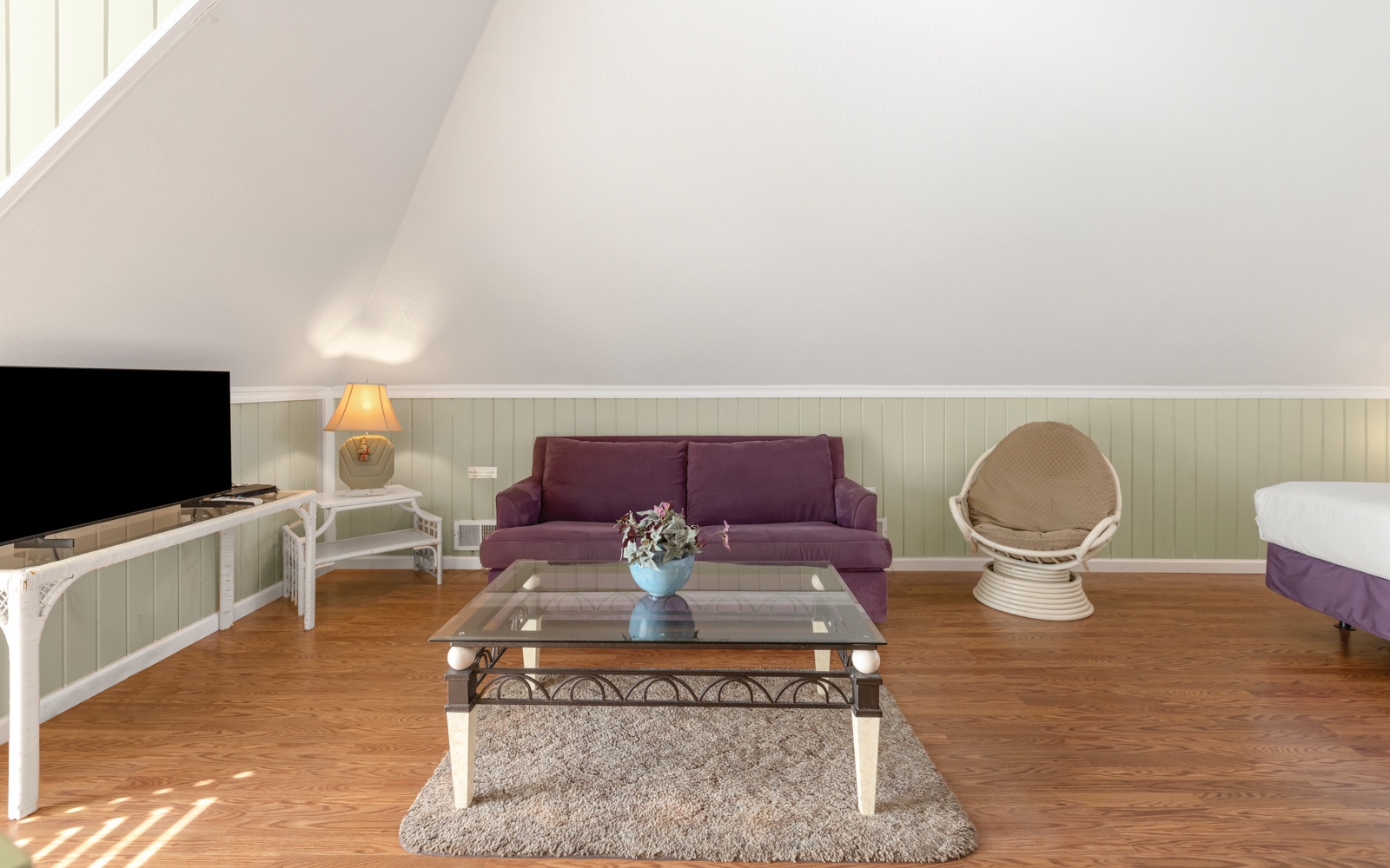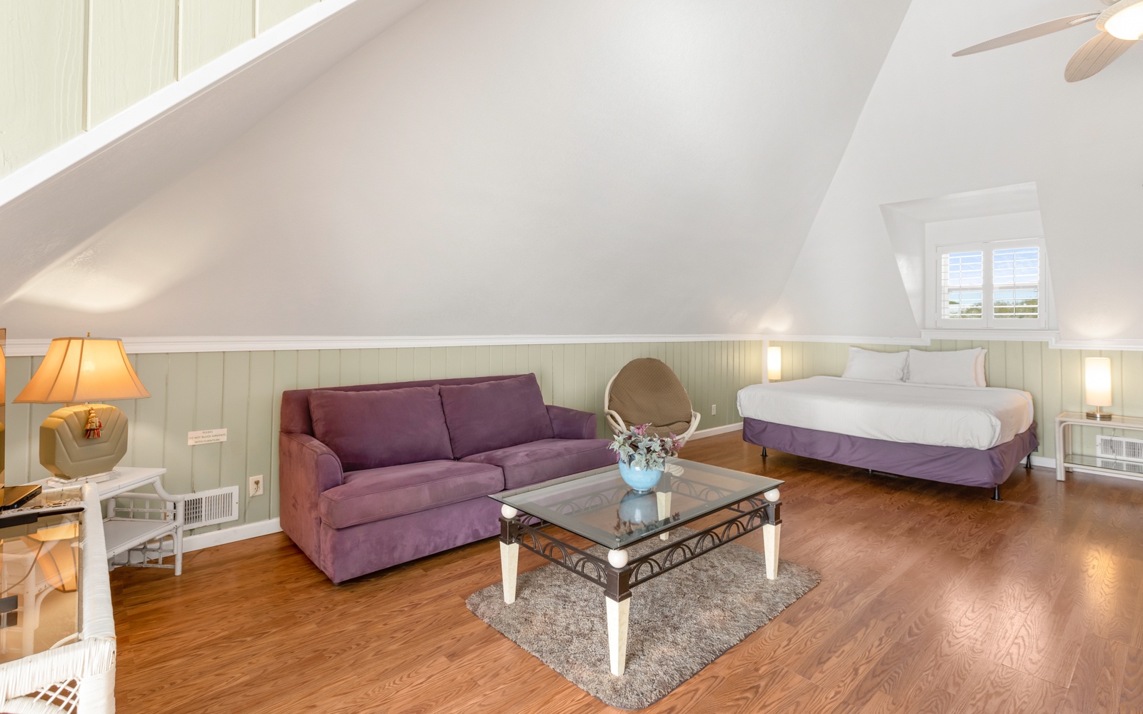 Then there’s the third-floor studio, a little slice of paradise with a king bed, cozy seating, and a kitchenette.