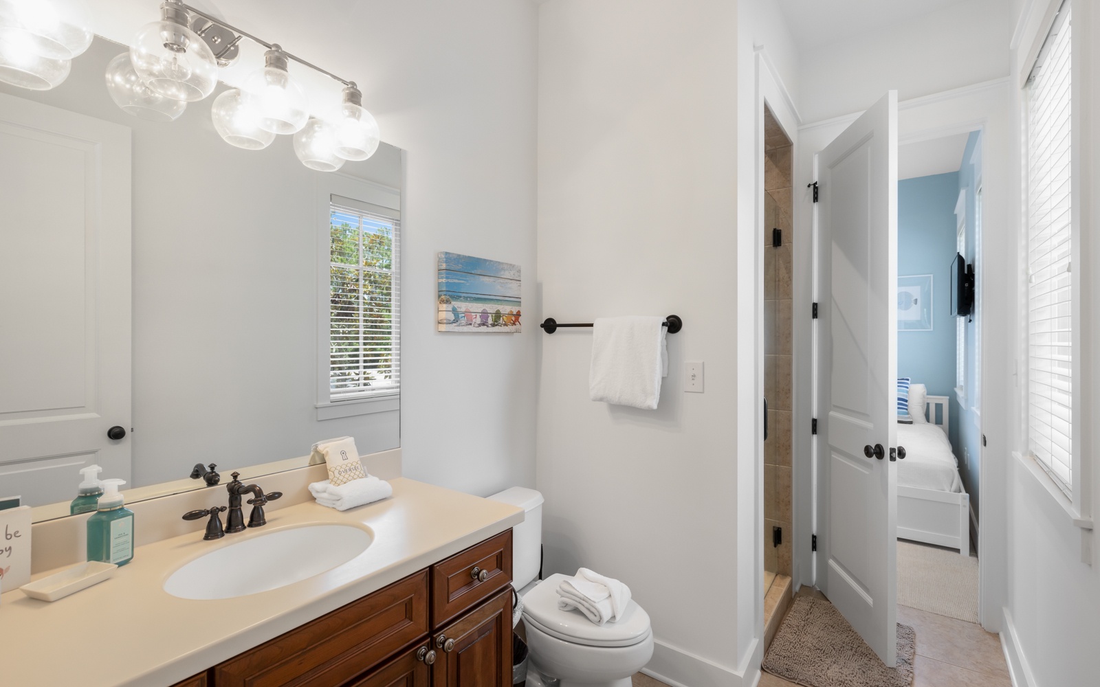 - Guest Room: Two twin guest beds, Jack and Jill bath