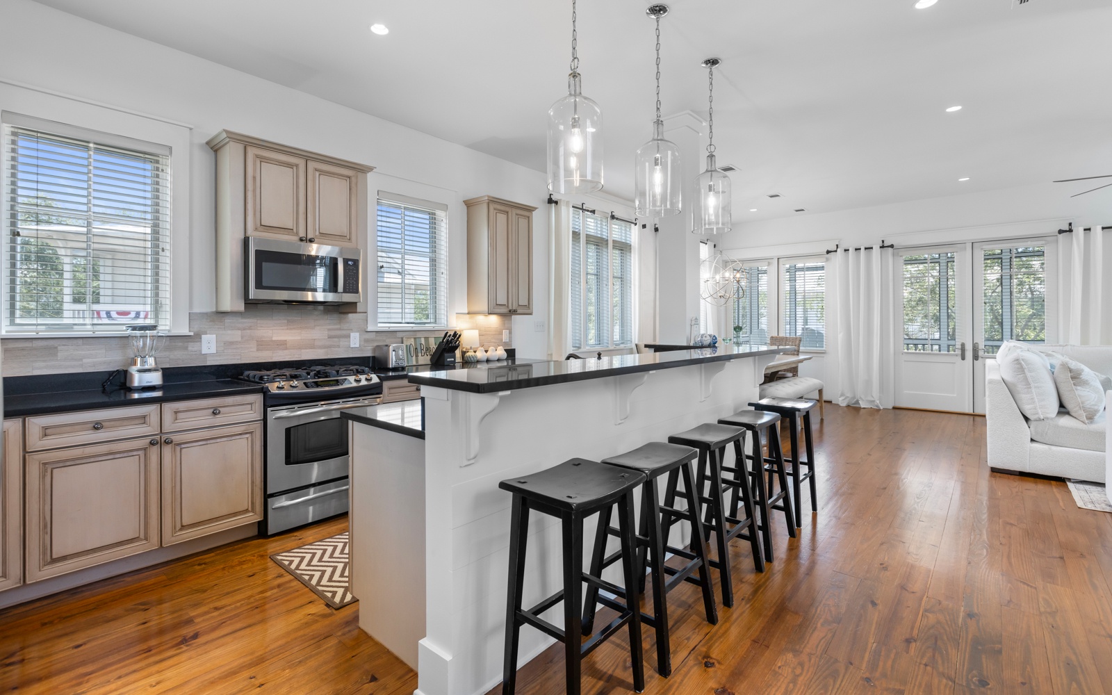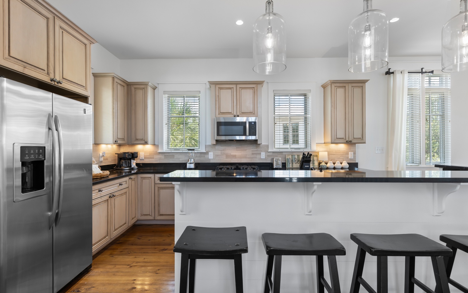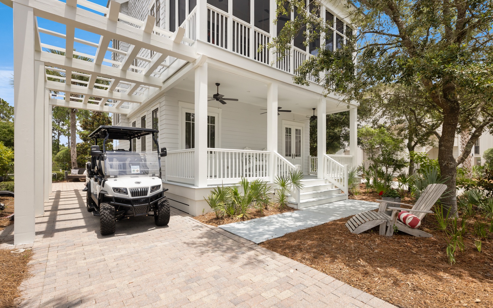 Sip your coffee on the wide porches while the world wakes up around you. When adventure calls, hop on the golf cart for a quick ride to the beach, shops, and local restaurants.