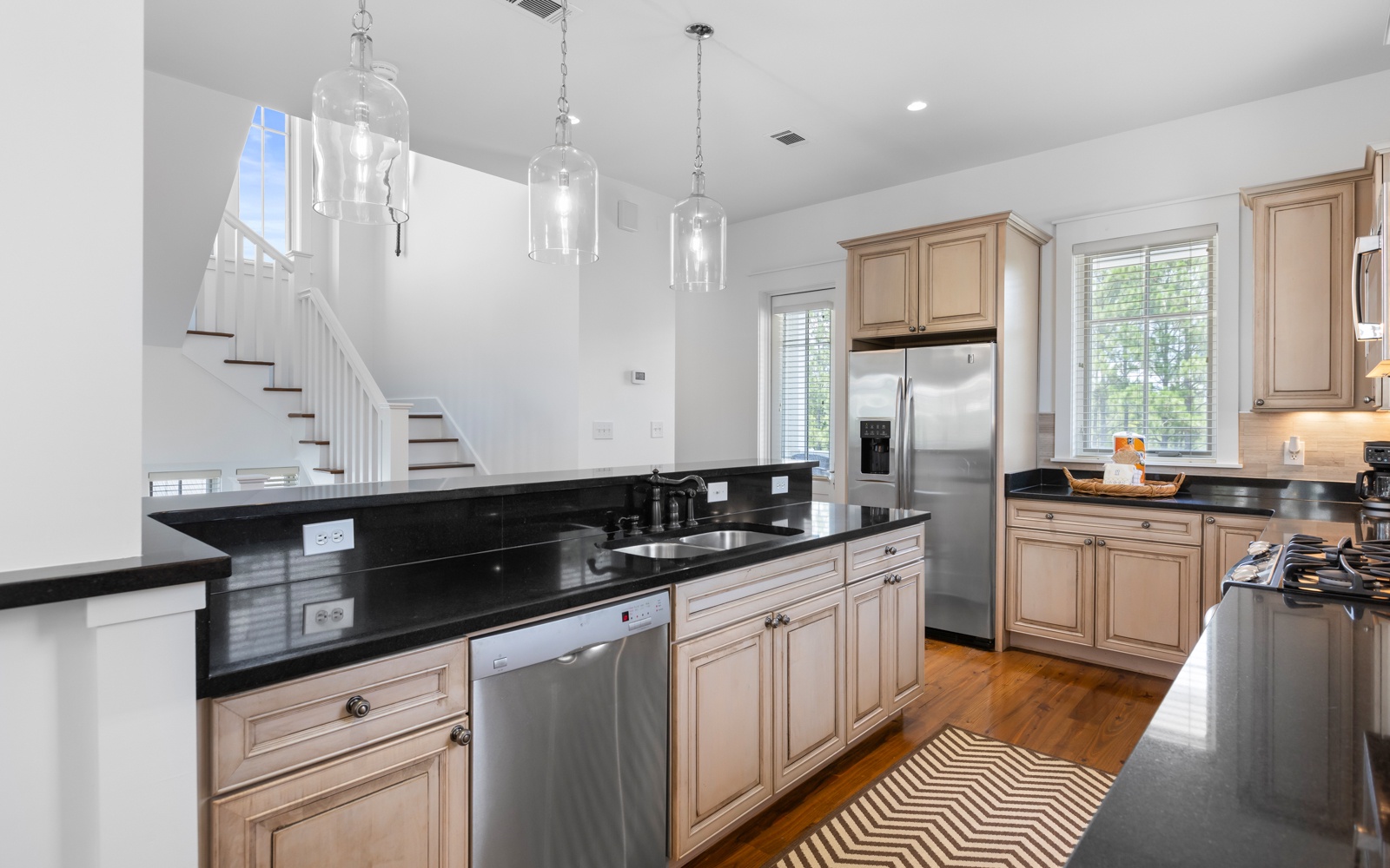 Up on the second floor, the open kitchen, dining, and living space is ready for waffle breakfasts, family game nights, and late-night movies, all flowing out to a spacious balcony for sunset chats.