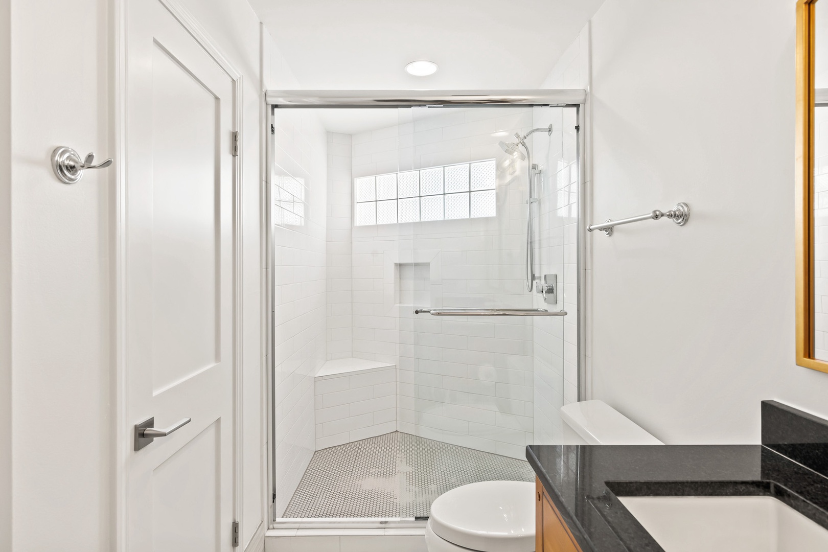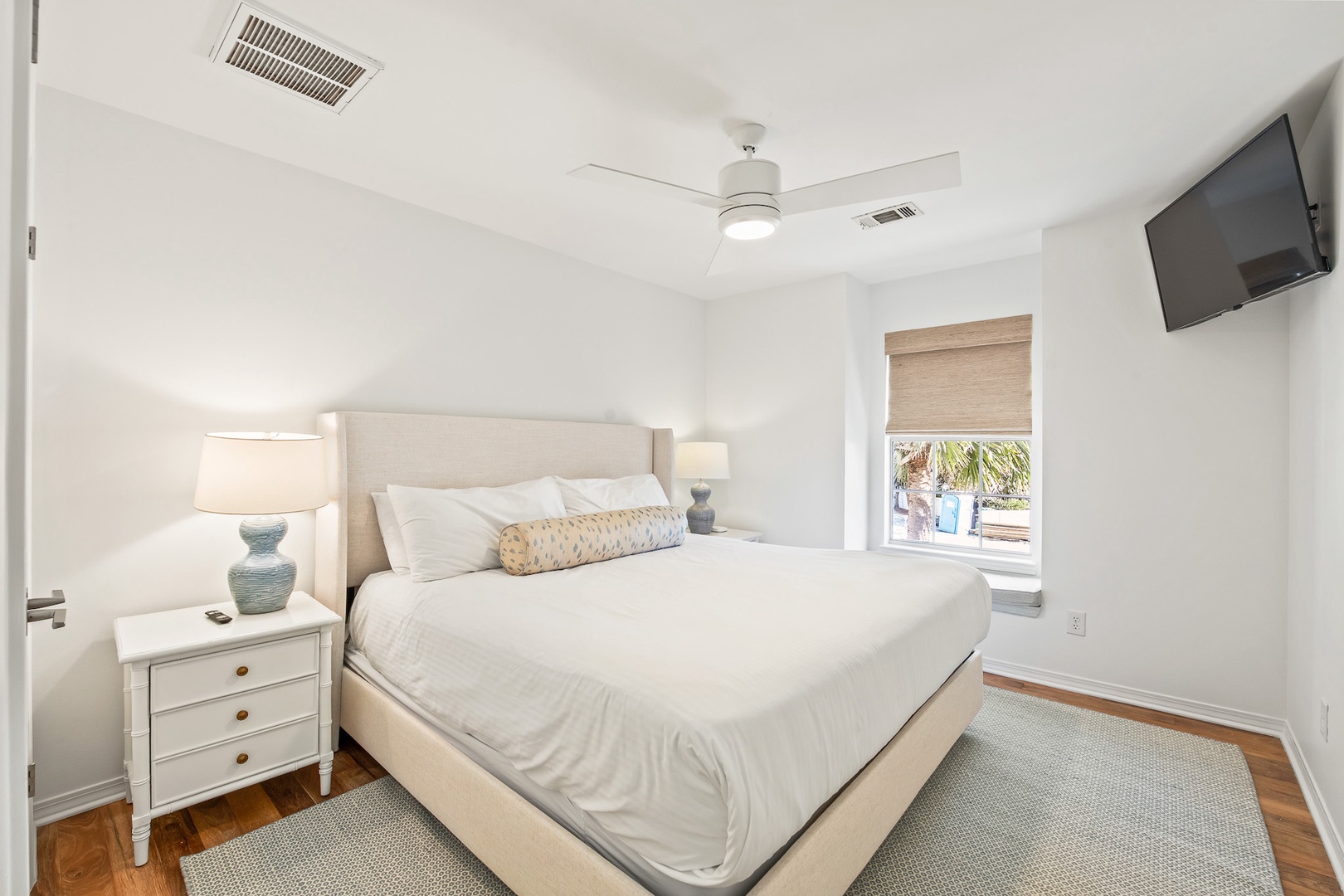 -Guest Bedroom: King bed, TV, shared full bath, shower