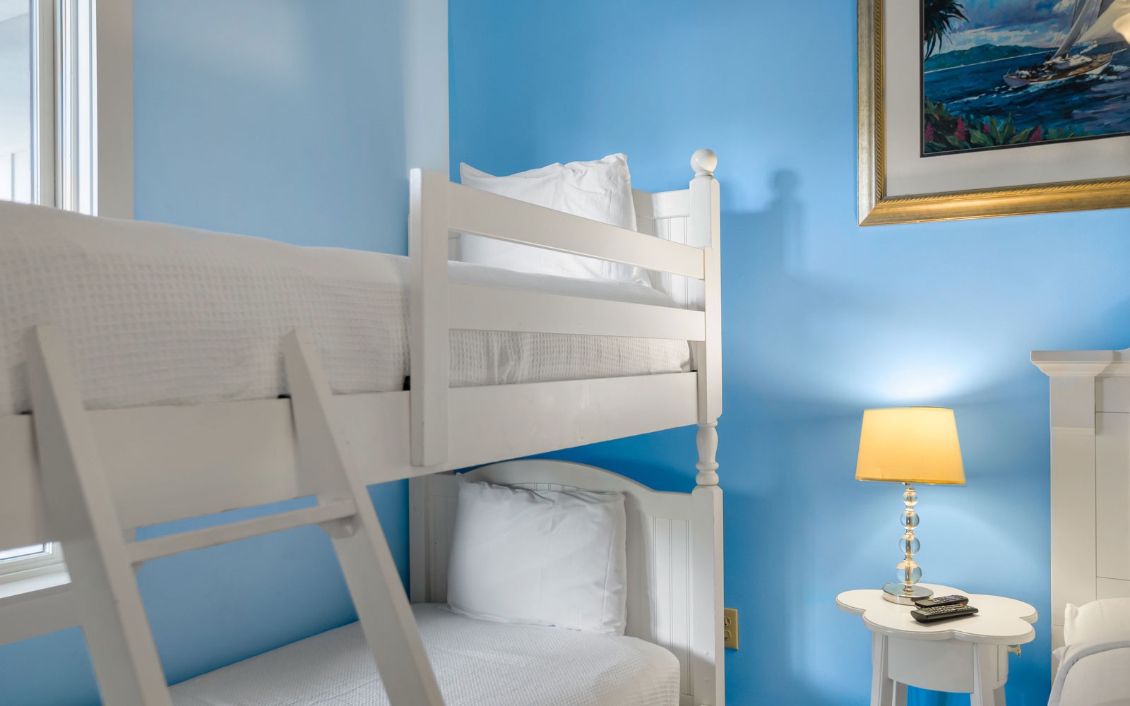 - Twin bunks and queen in guest room; private bath with tub/shower combo; TV (42”)