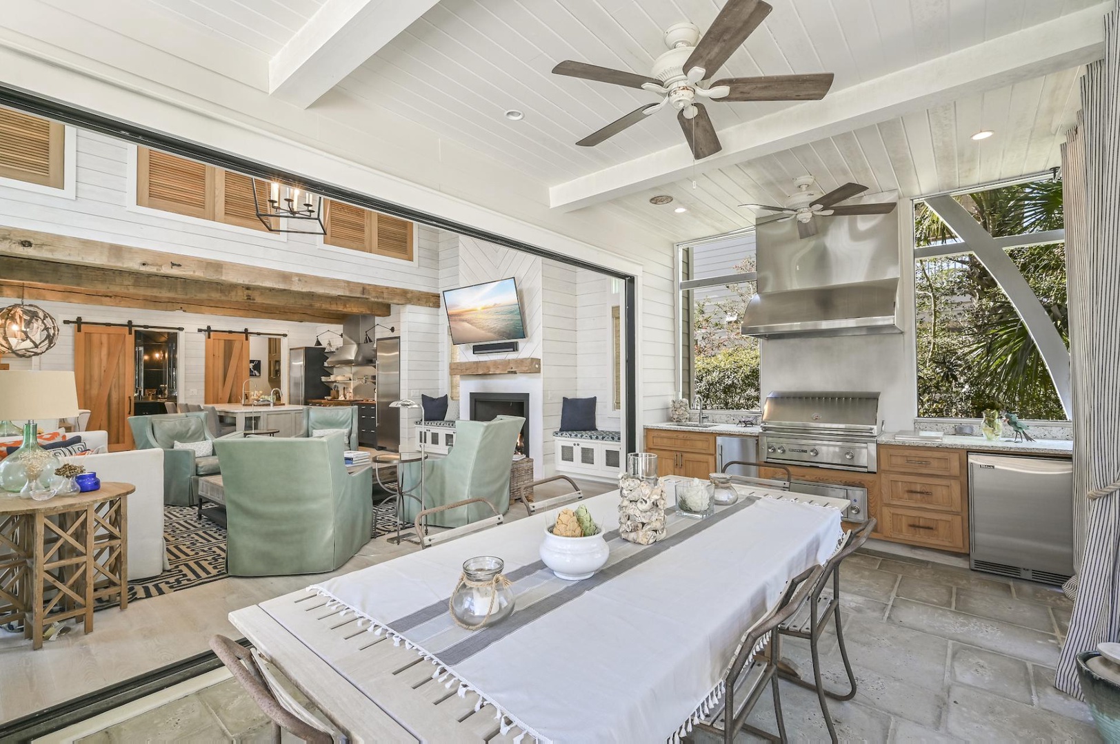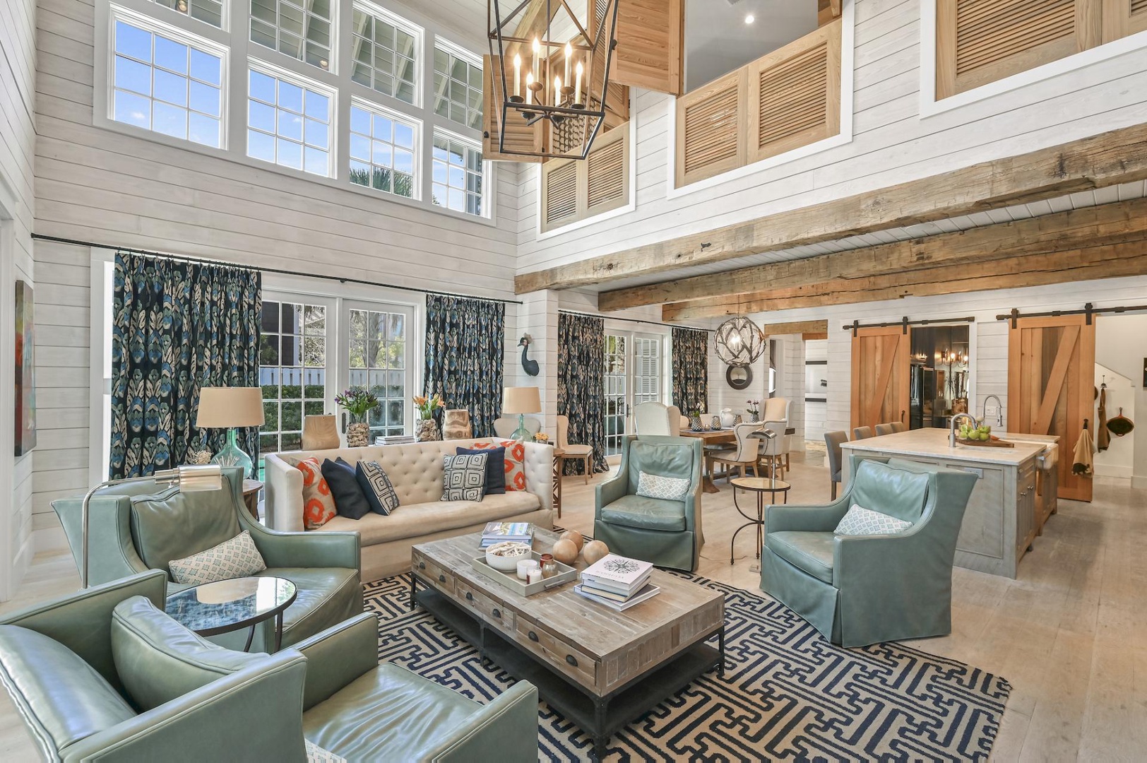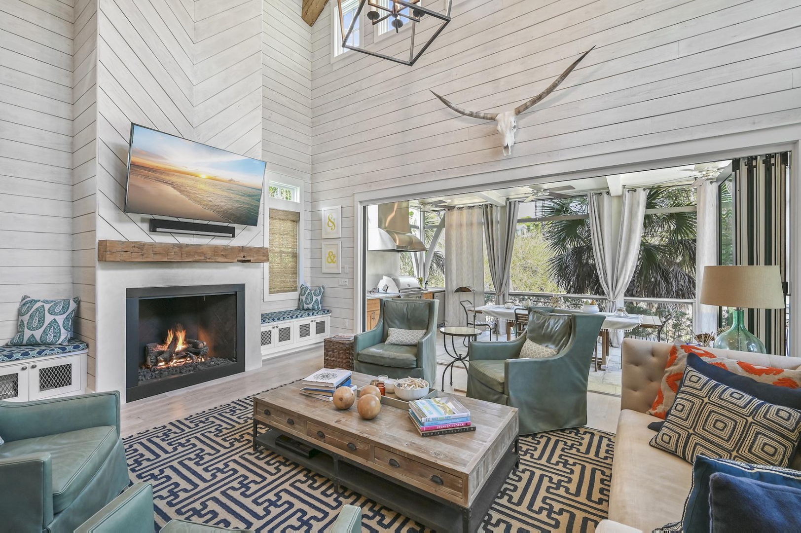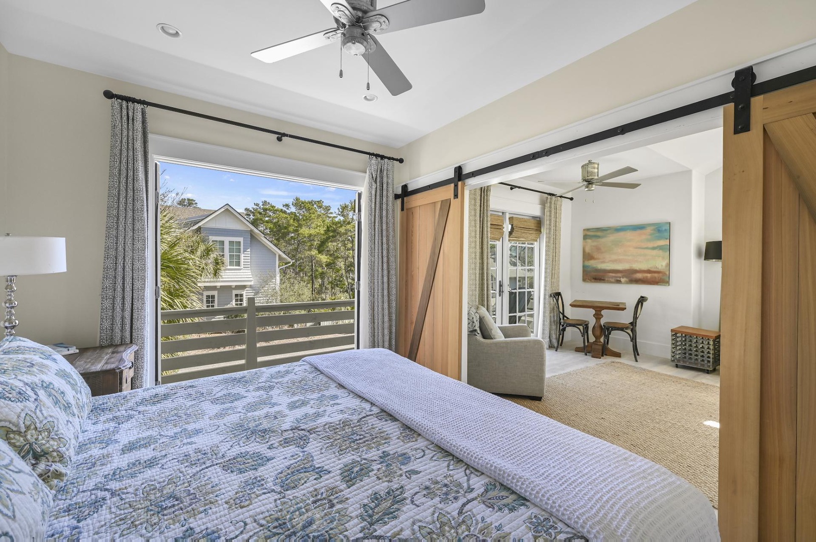 The detached carriage house is its own little getaway with a bedroom, bath, living space, and balcony included. Great for grandparents, in-laws, or that one friend who needs “quiet time” after beach day number three.