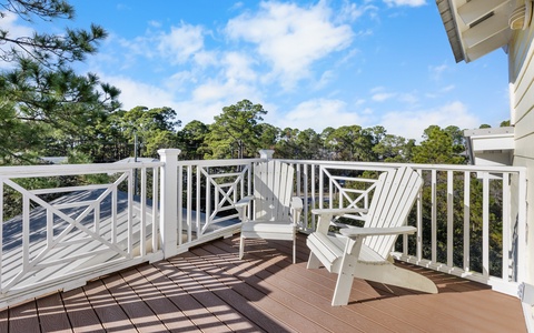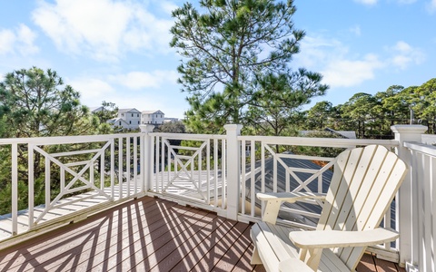The third level is a gem. The hidden hangout, with a cozy kitchenette and outdoor seating area, set the scene for sunset cocktails over the Seagrove treetops.
