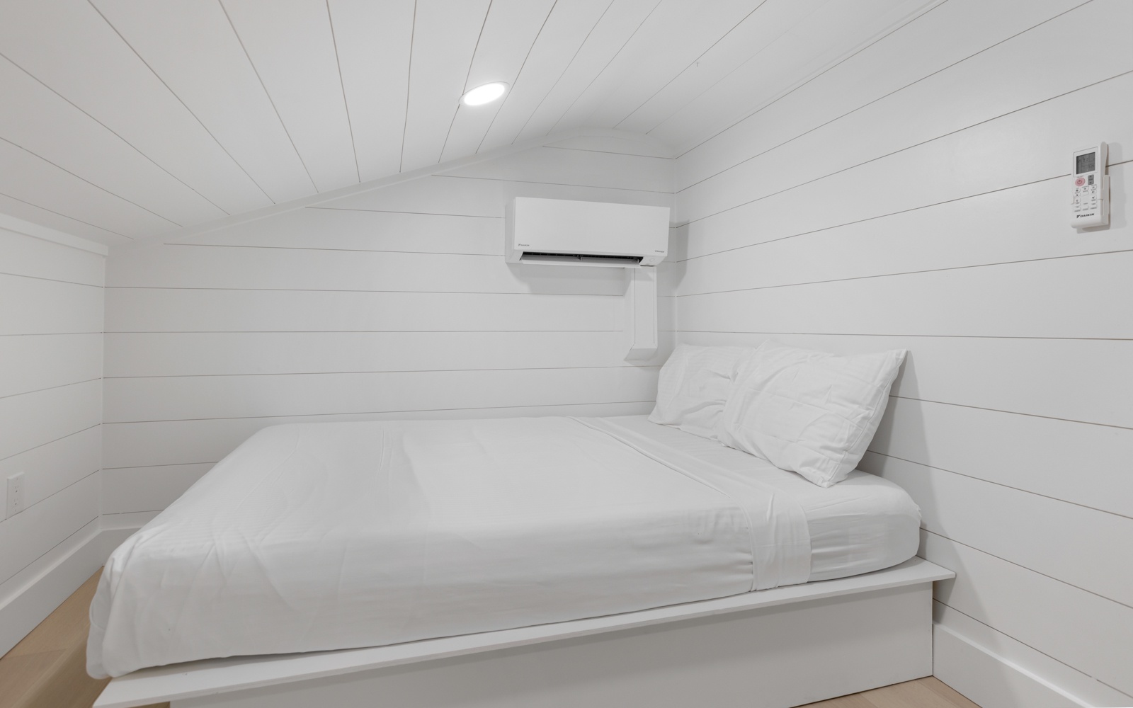 - Full bed and twin bed in third floor loft; private bath; TV (low vault ceiling and ladder required to enter loft)