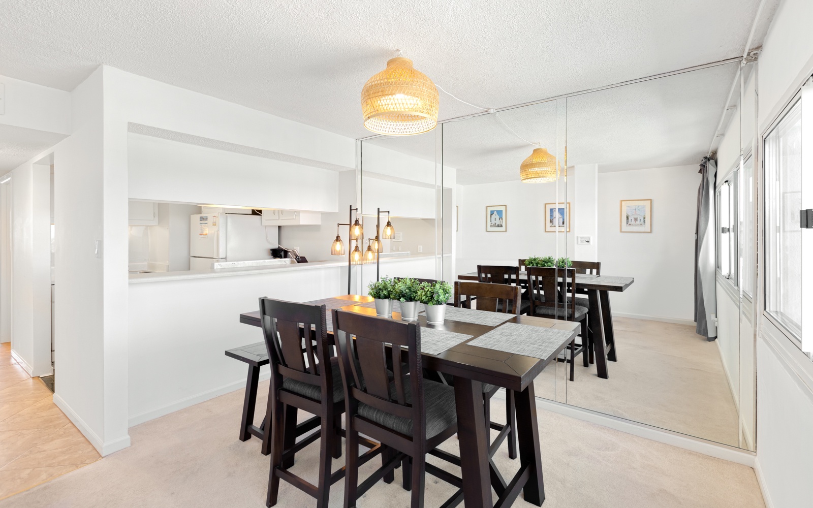 The condo layout is ideal for 1-2 people, but a 3rd person can be accommodated on the sleeper sofa.