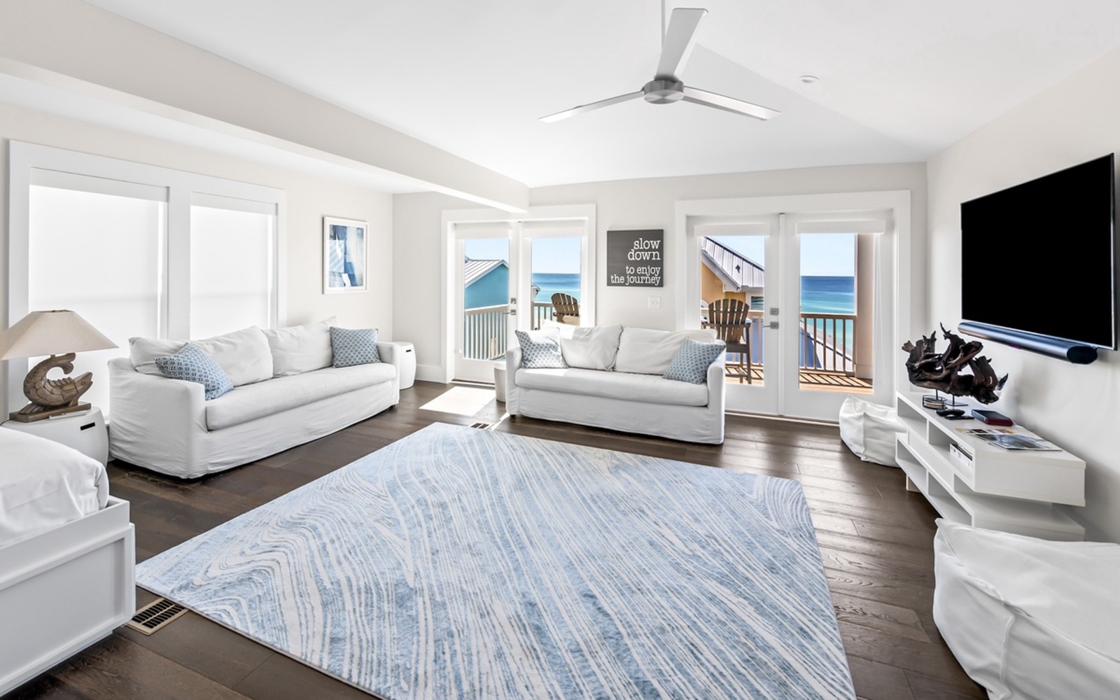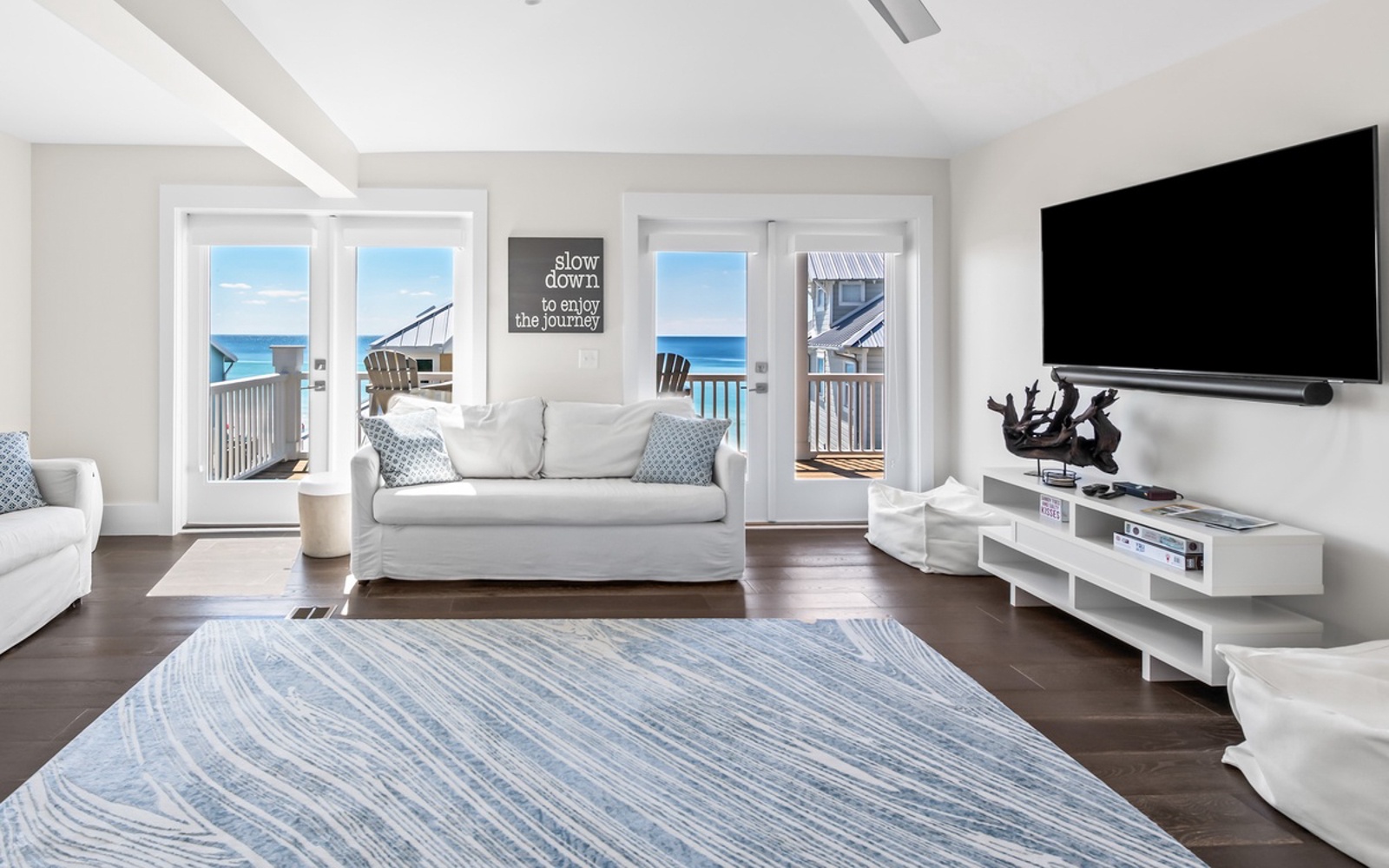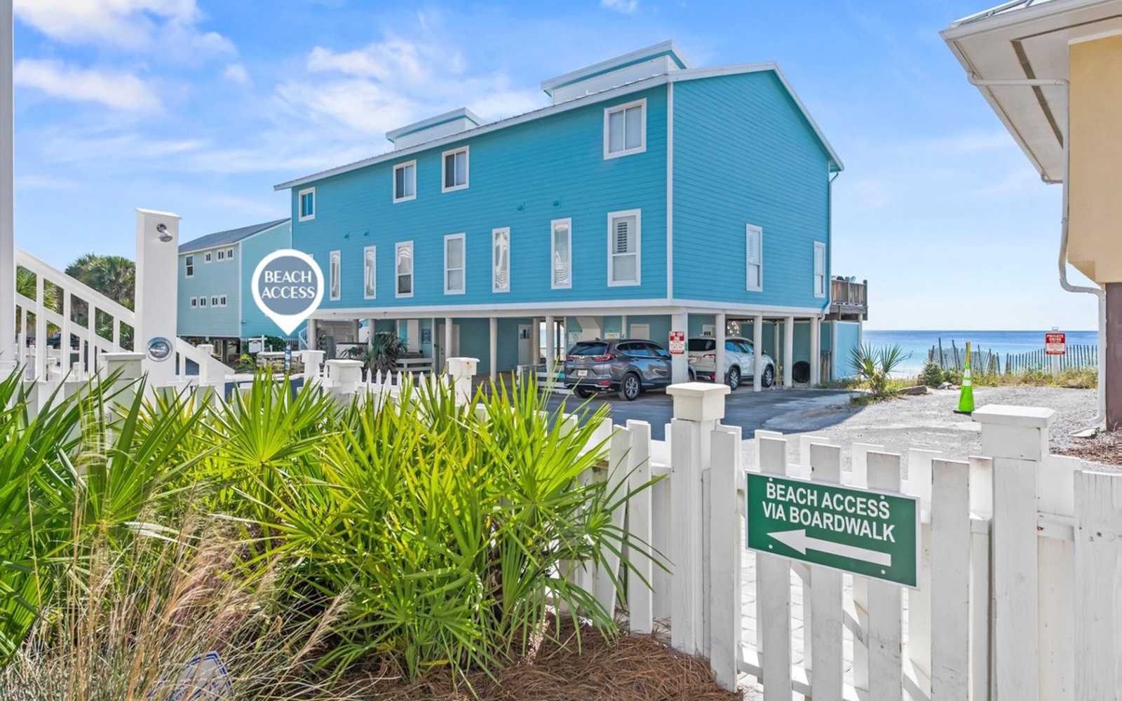 But no need to pack the car! Just walk out your front door, head across the road and two homes to the left, and step onto the sugar-white sand and wide-open beaches.