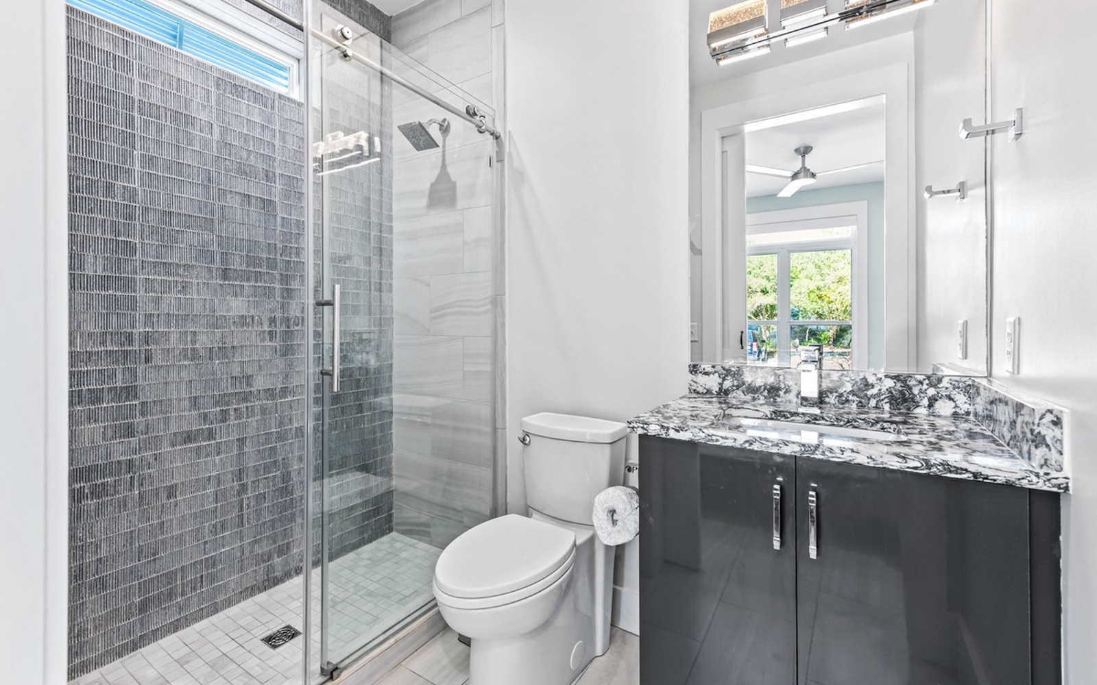 A luxurious primary suite is on the second level, featuring a private balcony to take in the breeze, alongside a private full bath with a double vanity, glass shower, and a relaxing soaker tub. Two additional bedrooms on this floor ensure plenty of space and comfort for everyone.