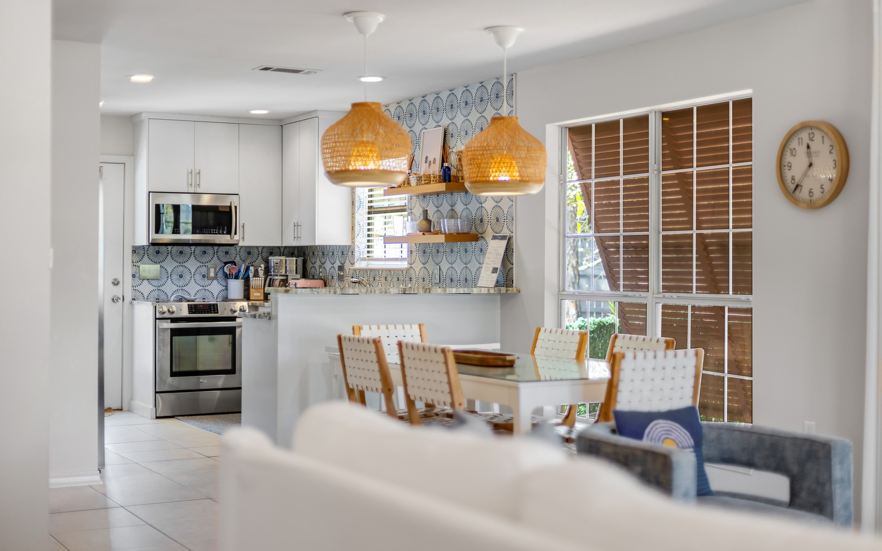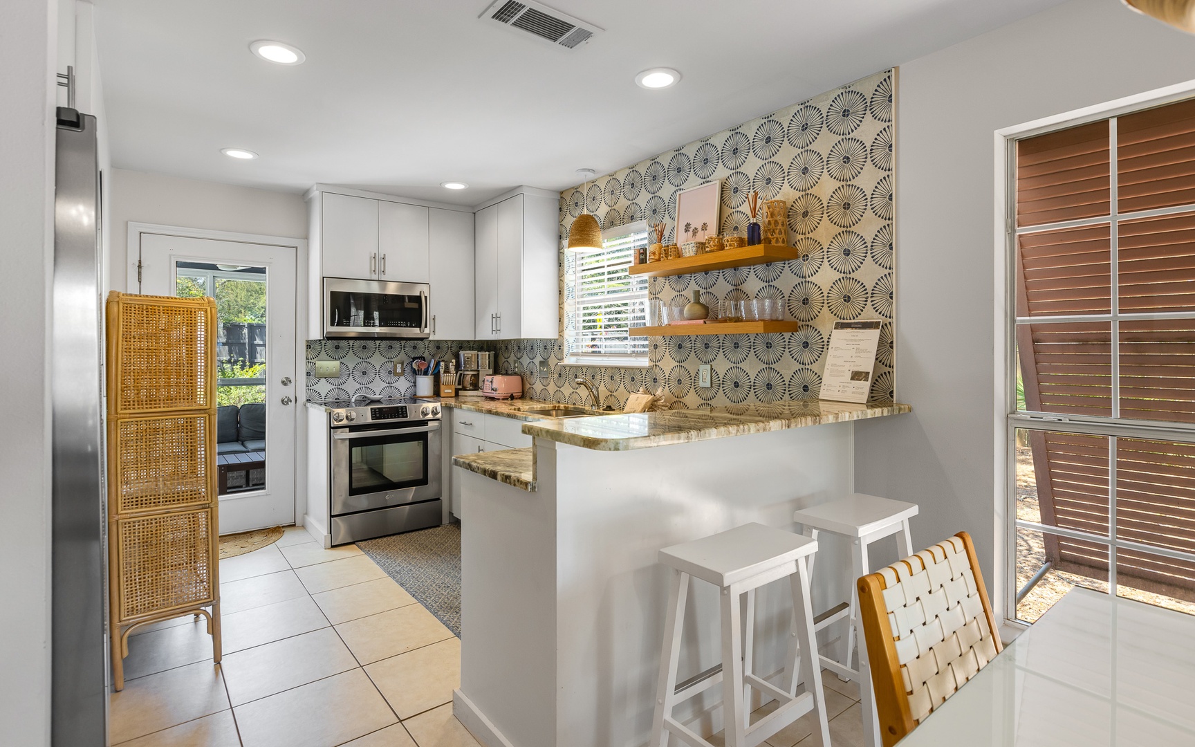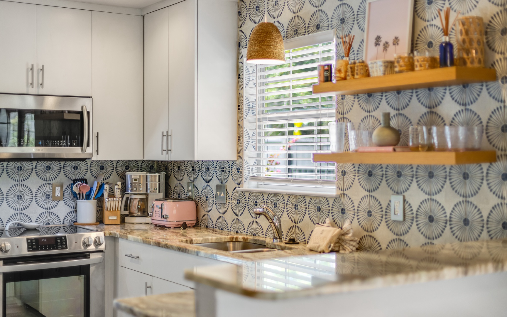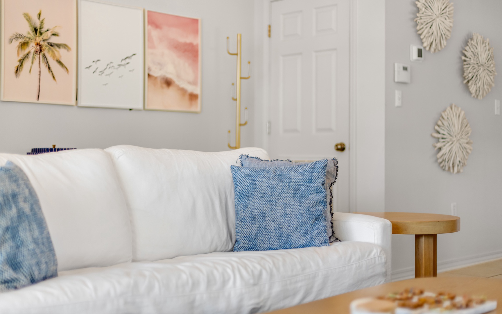 Inside, this coral and blue jewel, a very unique and charming home, features a cozy living area with a smart TV, a fully equipped kitchen, and comfortable sleeping arrangements for up to 10 guests.