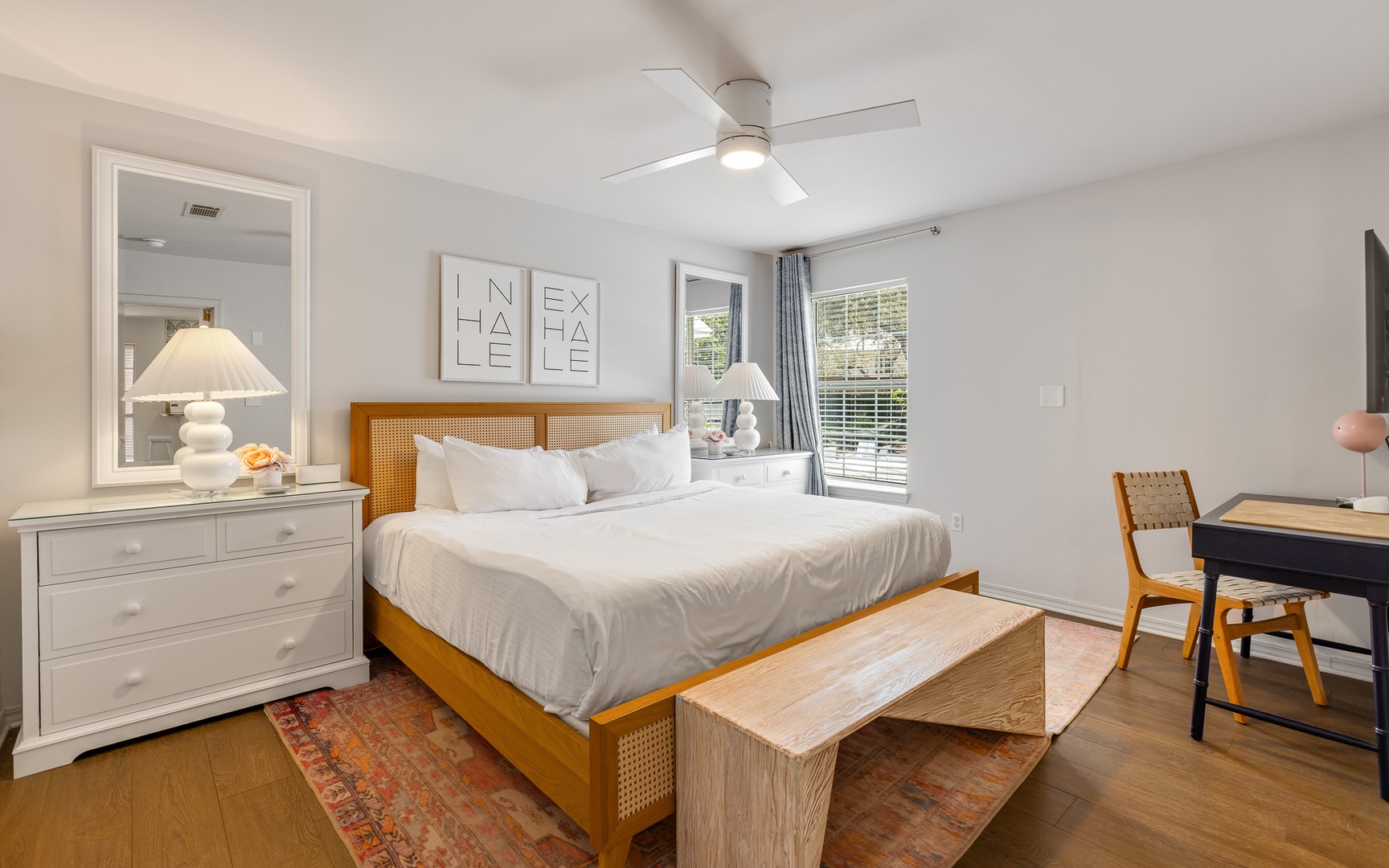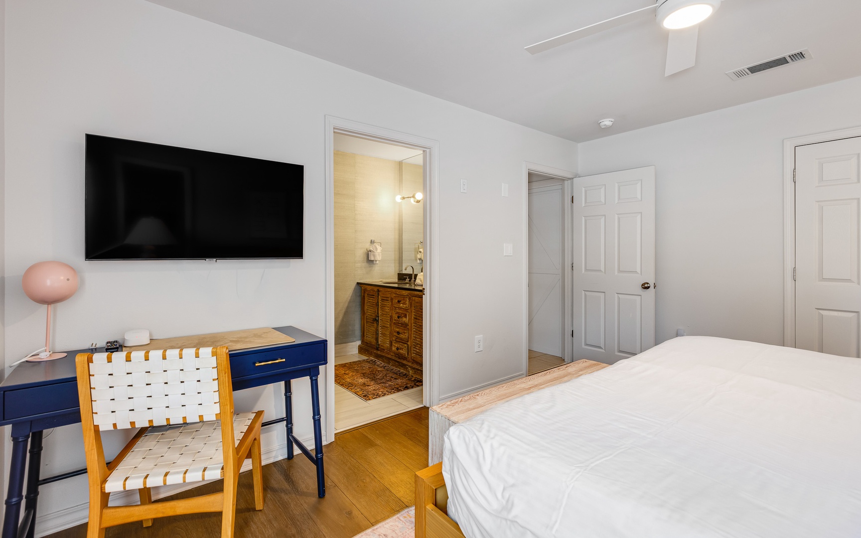 - King in 1st floor primary bedroom; private bath; TV