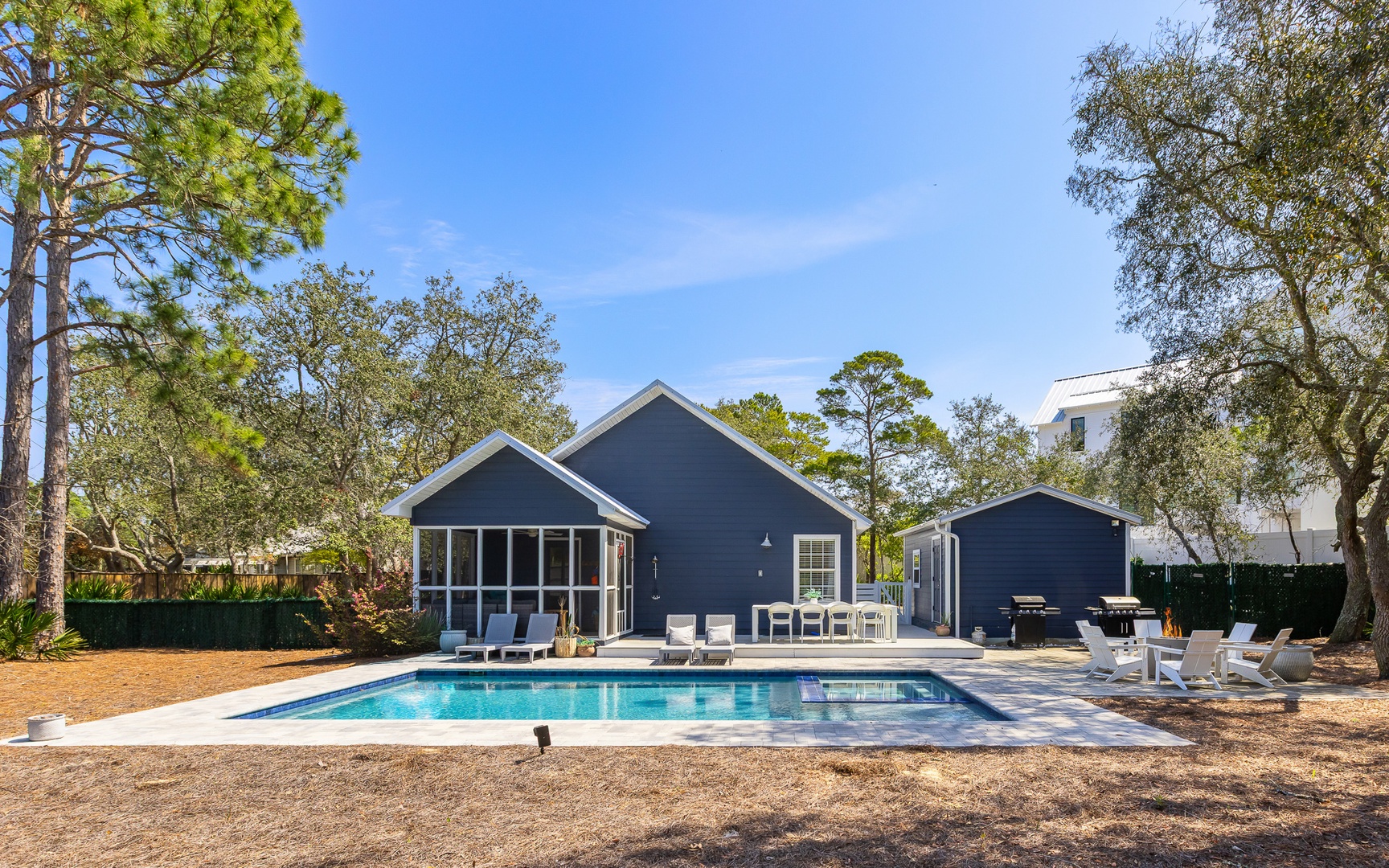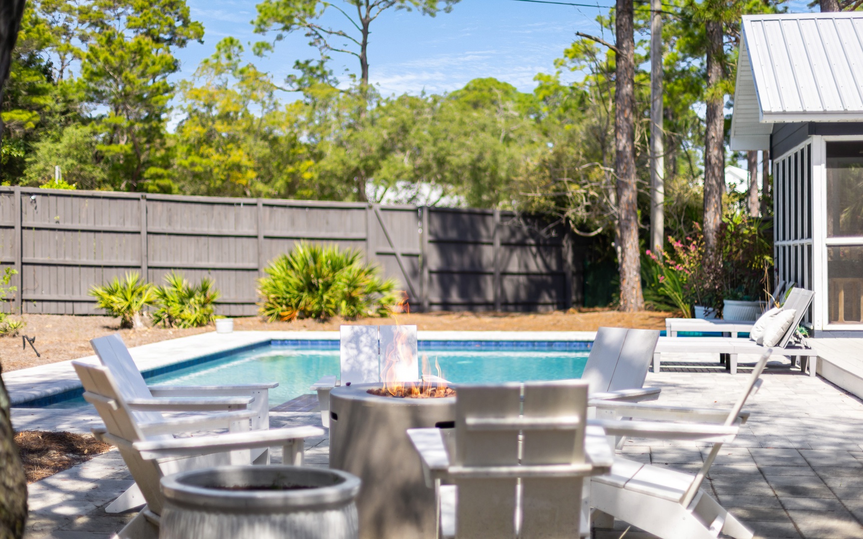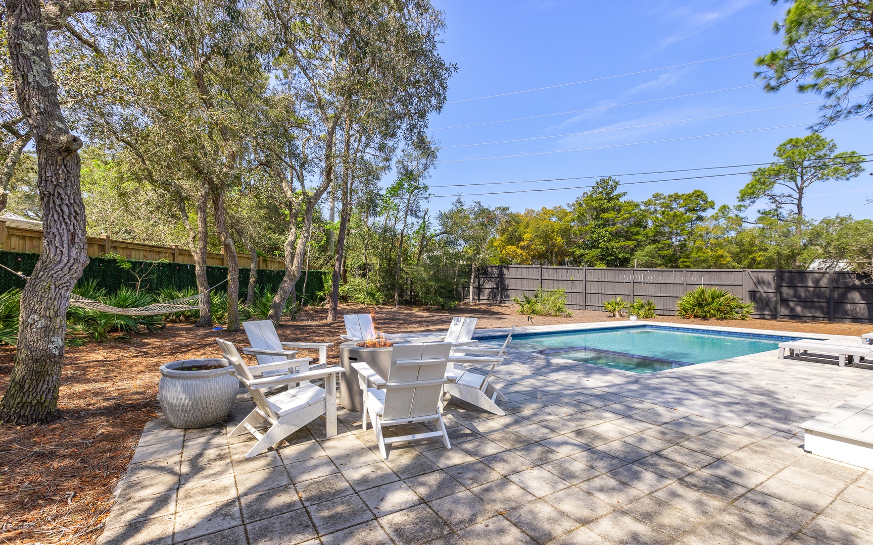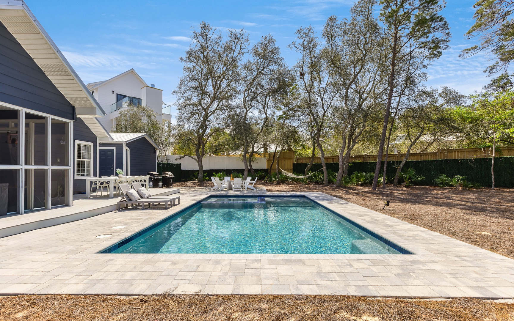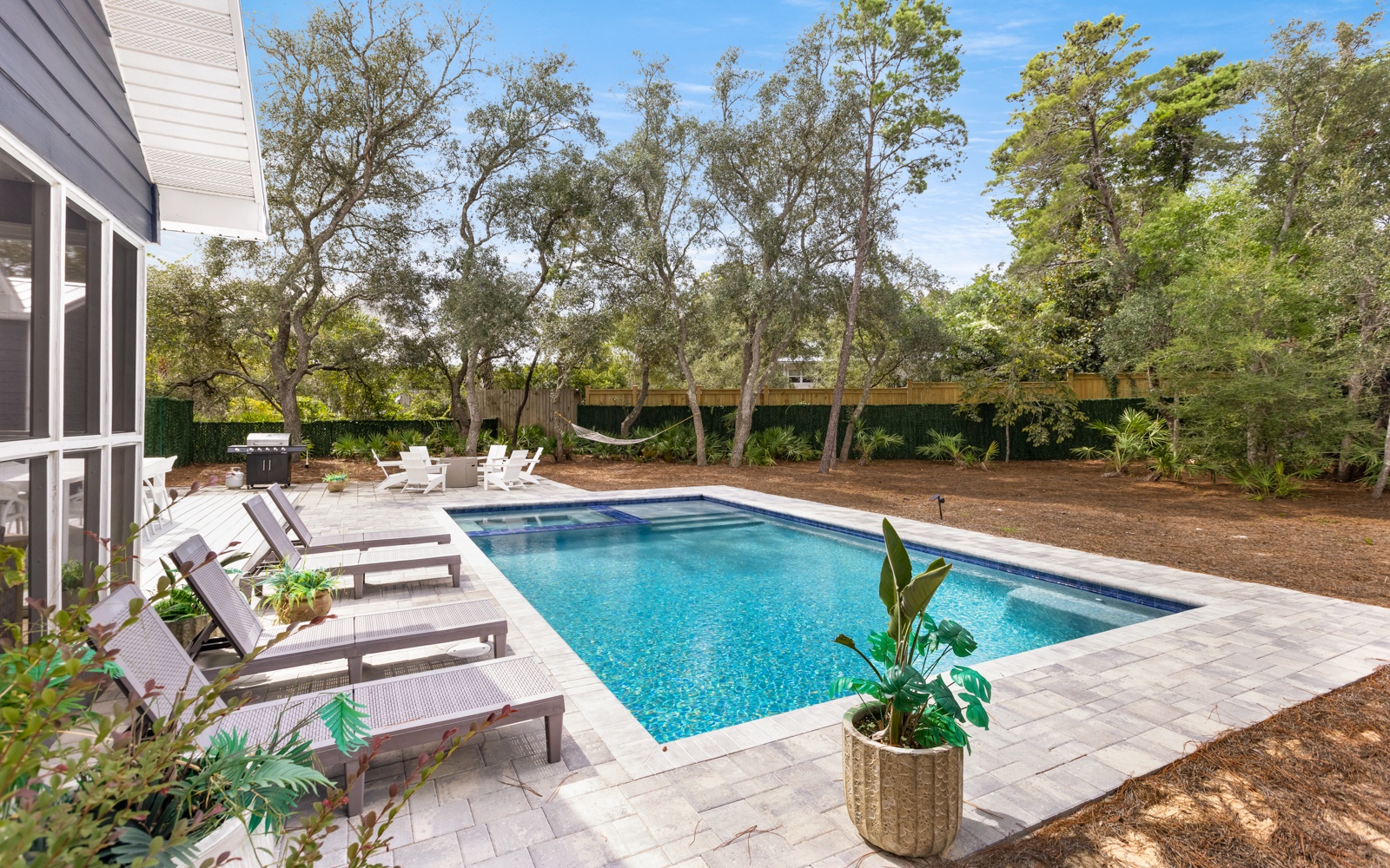 After your adventures, unwind in your private oasis, a truly incredible space! Complete with a large private pool, fire pit(!), gas grill, hot tub/spa, and a screened-in back porch. Very nice.
